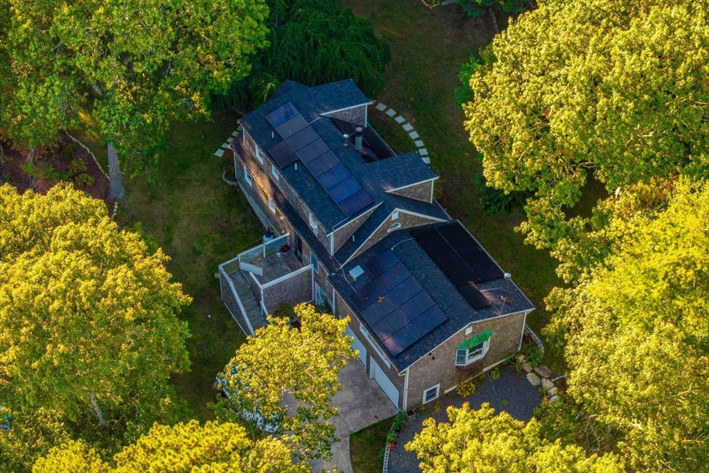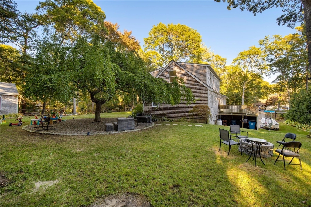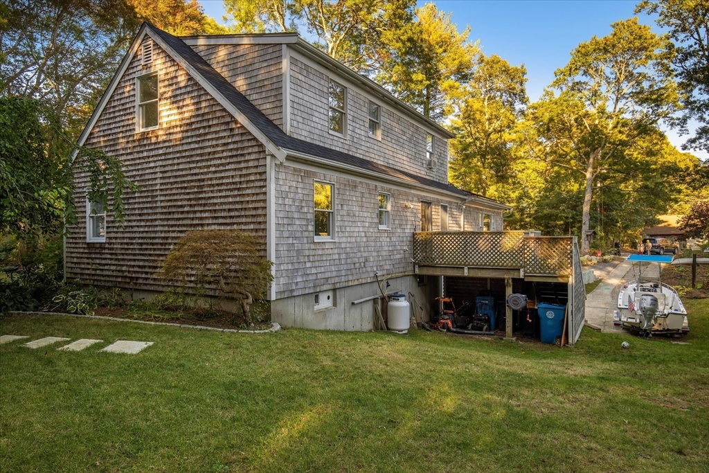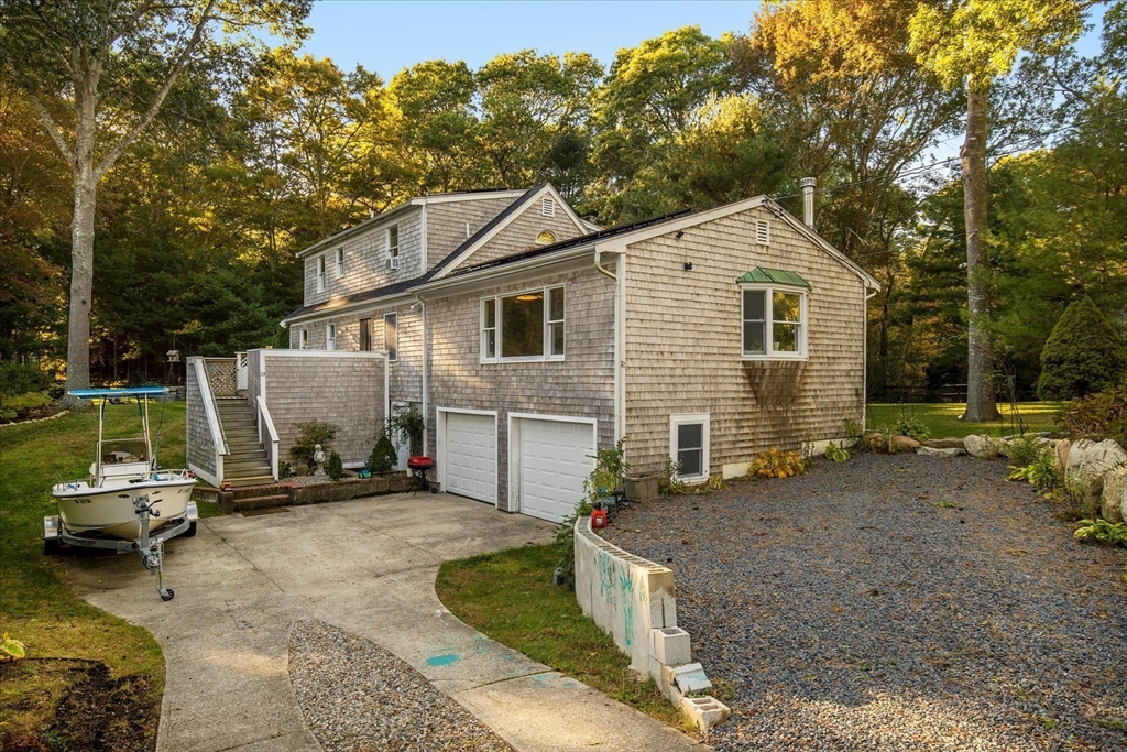 Tucked in the heart of Falmouth near scenic cranberry bogs and conservation trails, this thoughtfully updated 3 BD Cape with a den offers the perfect blend of privacy and comfort. Set on a lush, tree-lined lot, the home’s inviting shingle exterior and solar panels hint at both classic Cape charm and forward-thinking efficiency. Inside, sunlight fills the open floor plan featuring a bright, renovated kitchen with gas cooking and spacious living and dining areas complete with wood-burning fireplace and wood stove. The flexible layout includes multiple work-from-home or play spaces, while the serene primary suite offers a peaceful retreat. Outdoor living shines with a sprawling landscaped yard and mature trees for shaded sitting. A two-car, insulated garage, walk-out basement - possible ADU, and 4BD septic complete this well-maintained home. Minutes from Mashpee-Falmouth line amenities, beaches, and scenic cranberry bog walks—this is Cape Cod living at its most relaxed and refined.