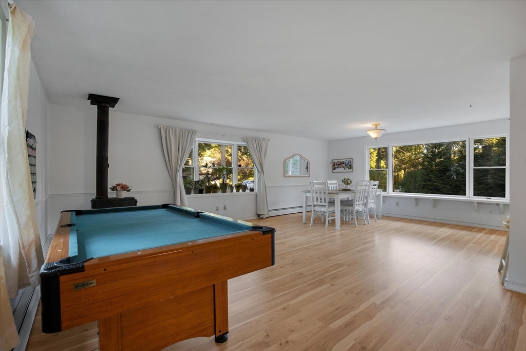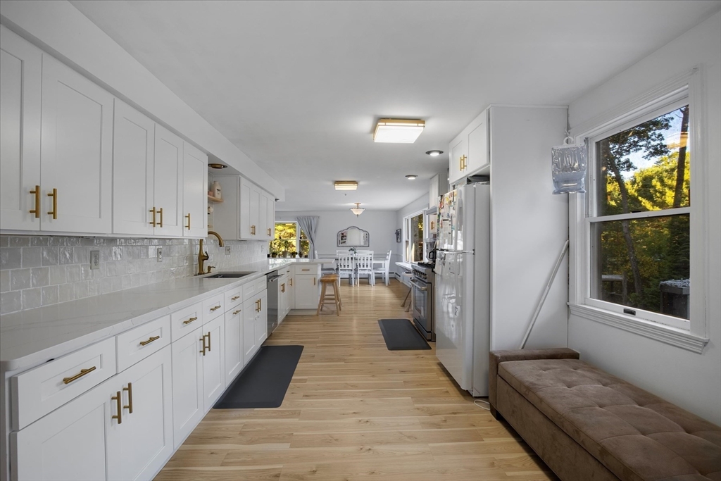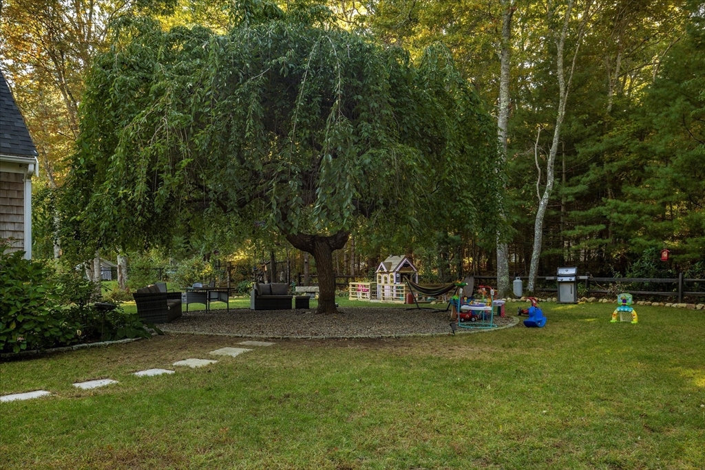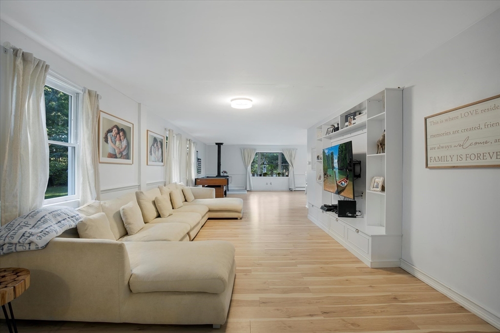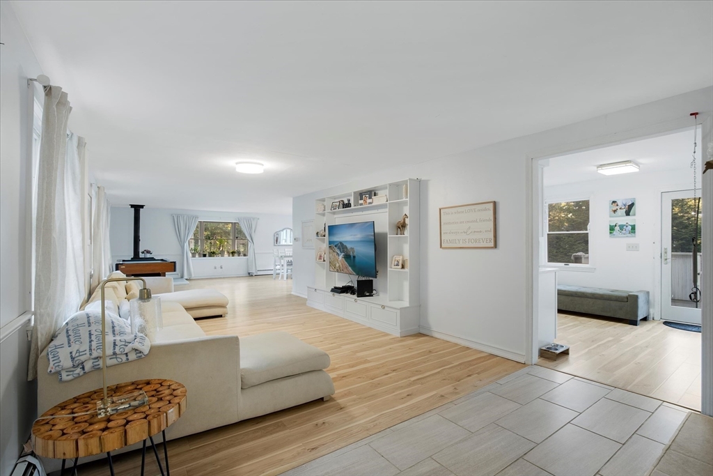 Tucked in the heart of Falmouth near scenic cranberry bogs and conservation trails, this thoughtfully updated 3 BD Cape with a den offers the perfect blend of privacy and comfort. Set on a lush, tree-lined lot, the home’s inviting shingle exterior and solar panels hint at both classic Cape charm and forward-thinking efficiency. Inside, sunlight fills the open floor plan featuring a bright, renovated kitchen with gas cooking and spacious living and dining areas complete with wood-burning fireplace and wood stove. The flexible layout includes multiple work-from-home or play spaces, while the serene primary suite offers a peaceful retreat. Outdoor living shines with a sprawling landscaped yard and mature trees for shaded sitting. A two-car, insulated garage, walk-out basement - possible ADU, and 4BD septic complete this well-maintained home. Minutes from Mashpee-Falmouth line amenities, beaches, and scenic cranberry bog walks—this is Cape Cod living at its most relaxed and refined.