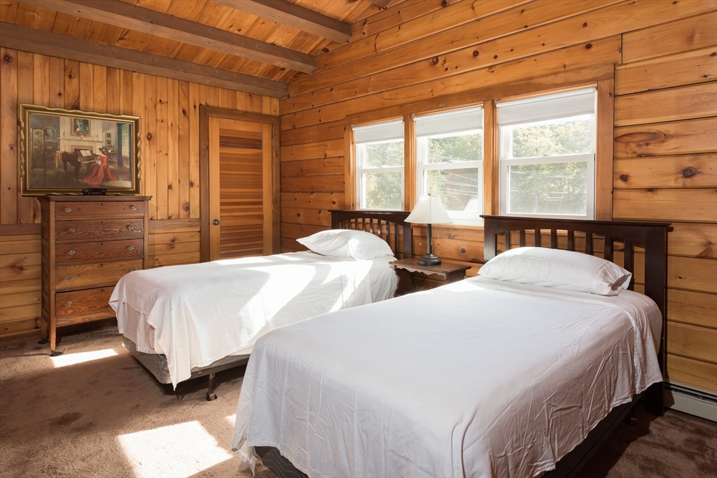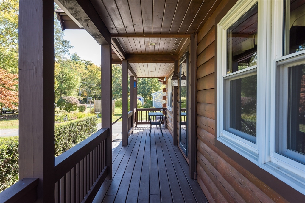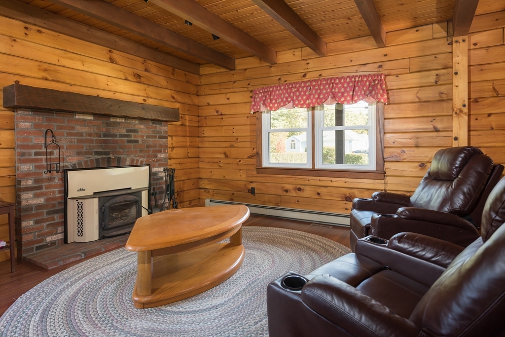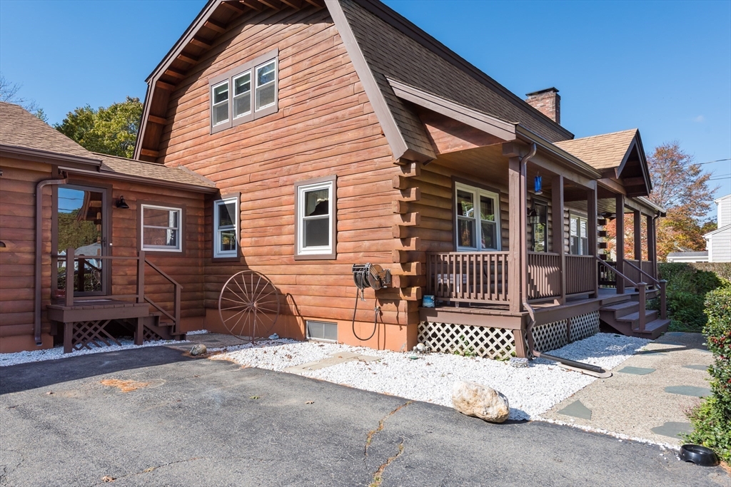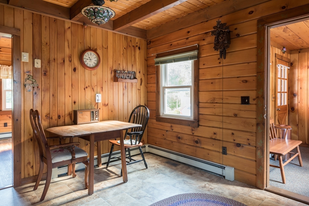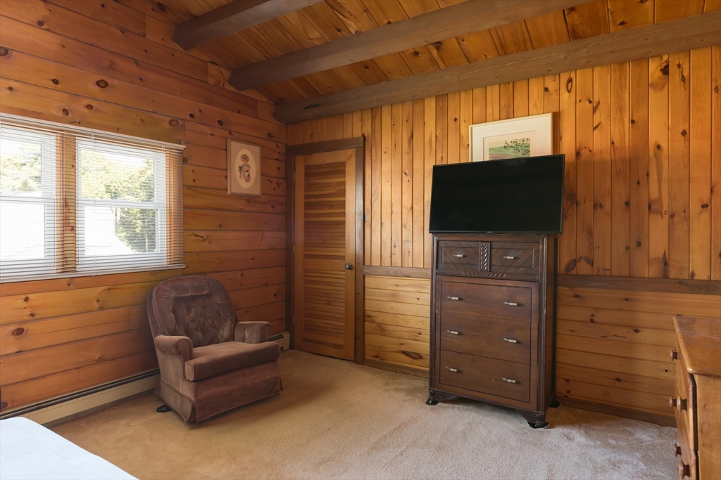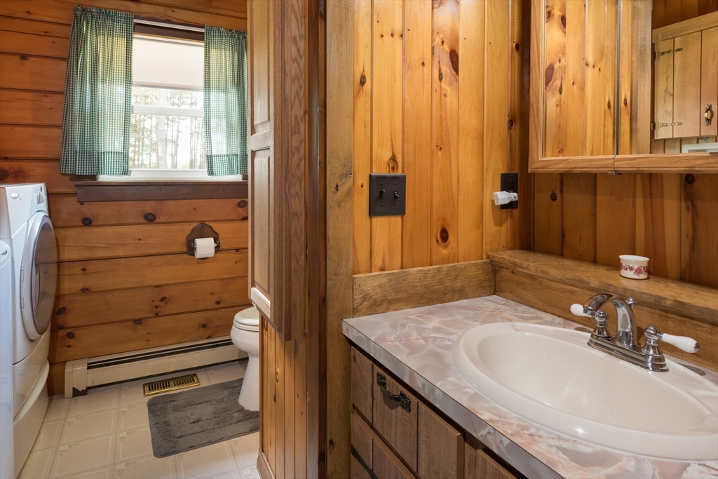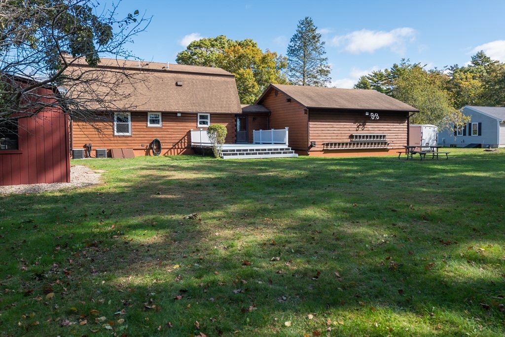 Step inside this classic “Northeastern” log home where rustic character meets timeless craftsmanship. Designed with post-and-beam construction, it welcomes you with a covered front porch perfect for morning coffee and a sun-filled back deck overlooking a private yard abutting cranberry bogs—New England living at its finest. Inside, warm wood tones and natural textures create an inviting atmosphere for comfortable everyday living. The spacious front-to-back living area centers around a wood-burning fireplace, perfect for taking the chill off crisp fall evenings. The kitchen and dining area offer excellent potential to open and modernize for today’s preferred flow (currently being used as a bdrm). Upstairs features two cathedral front-to-back bedrooms, a flex room & full bath. An oversized two-car garage adds versatility for vehicles, hobbies, plus a designed workshop space. Set on a 0.71-acre country lot, surrounded by nature yet close to town conveniences.