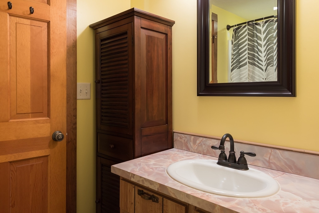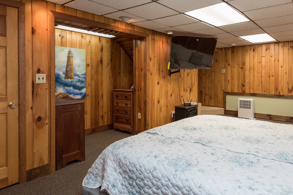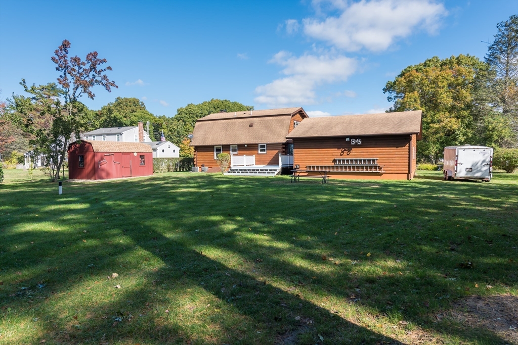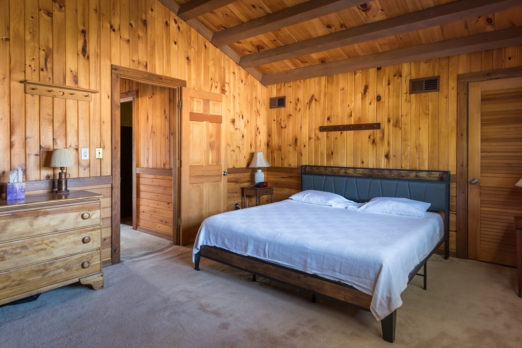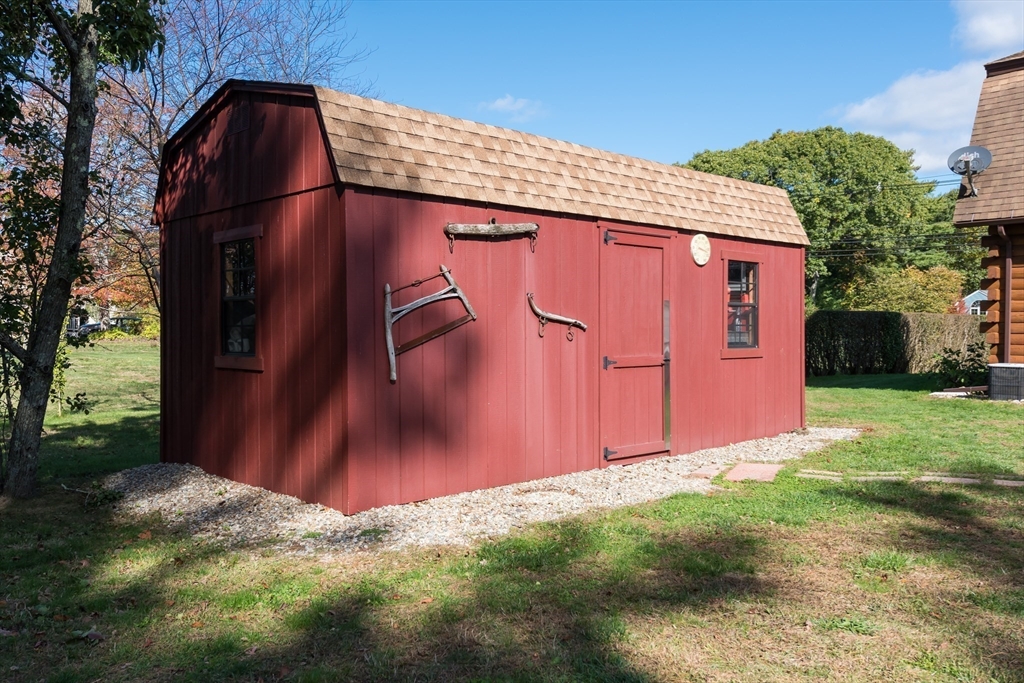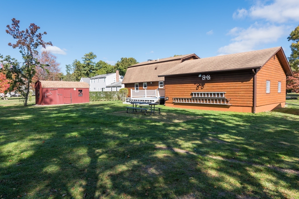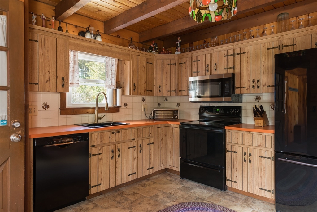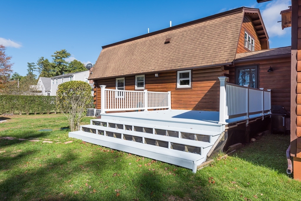 Step inside this classic “Northeastern” log home where rustic character meets timeless craftsmanship. Designed with post-and-beam construction, it welcomes you with a covered front porch perfect for morning coffee and a sun-filled back deck overlooking a private yard abutting cranberry bogs—New England living at its finest. Inside, warm wood tones and natural textures create an inviting atmosphere for comfortable everyday living. The spacious front-to-back living area centers around a wood-burning fireplace, perfect for taking the chill off crisp fall evenings. The kitchen and dining area offer excellent potential to open and modernize for today’s preferred flow (currently being used as a bdrm). Upstairs features two cathedral front-to-back bedrooms, a flex room & full bath. An oversized two-car garage adds versatility for vehicles, hobbies, plus a designed workshop space. Set on a 0.71-acre country lot, surrounded by nature yet close to town conveniences.