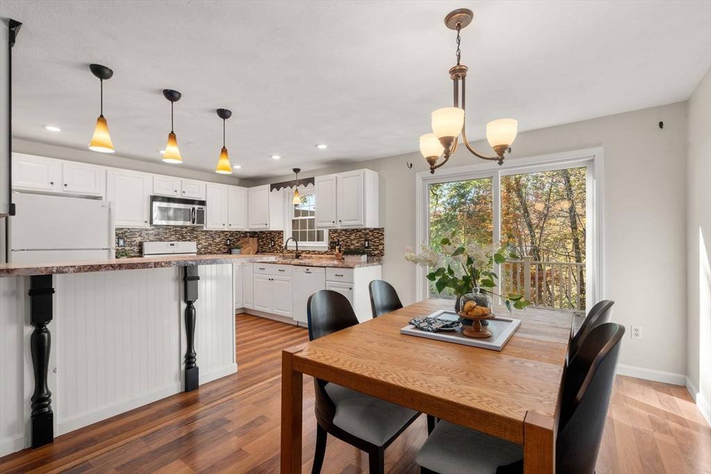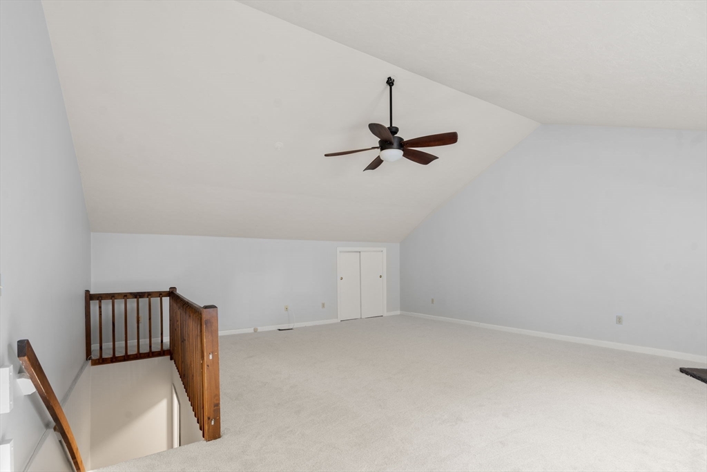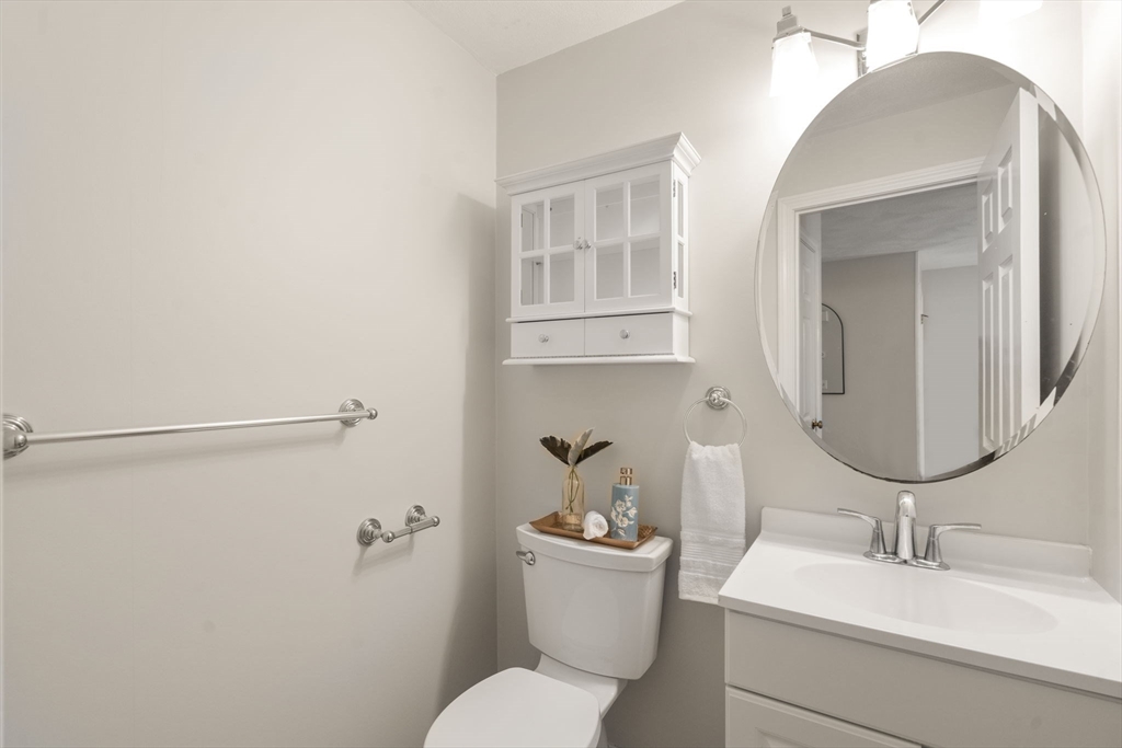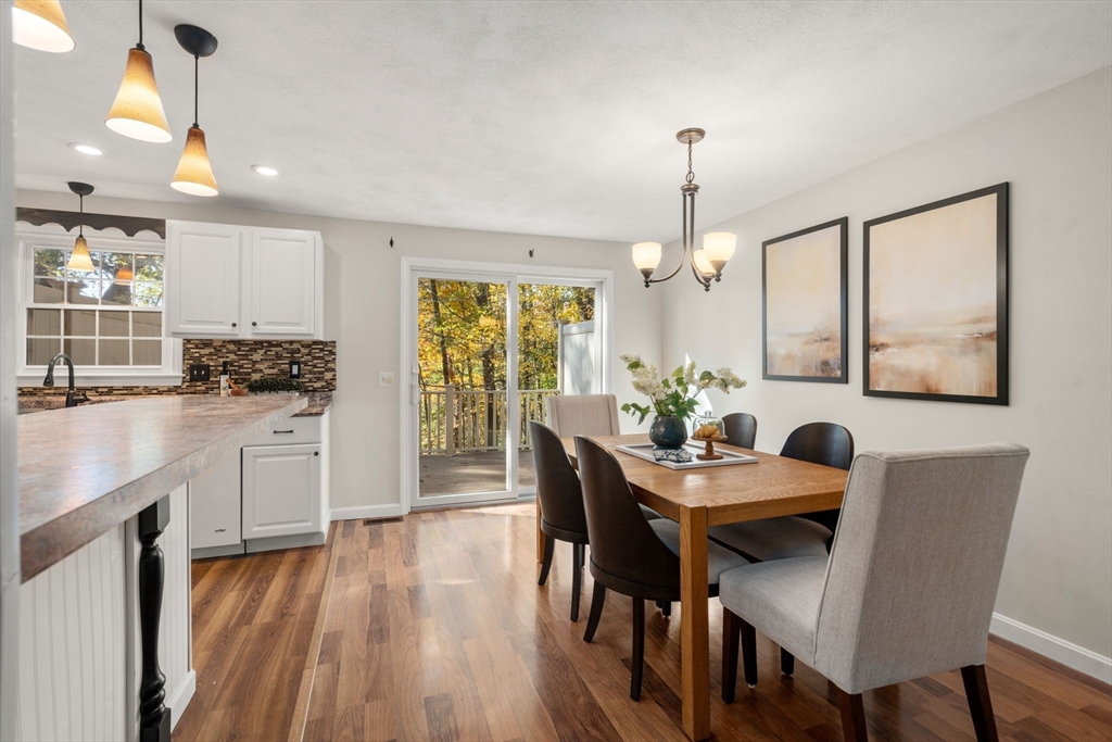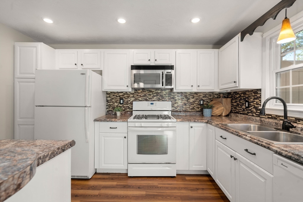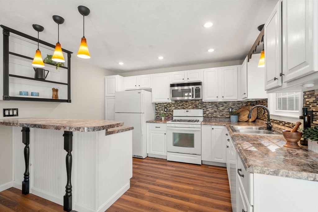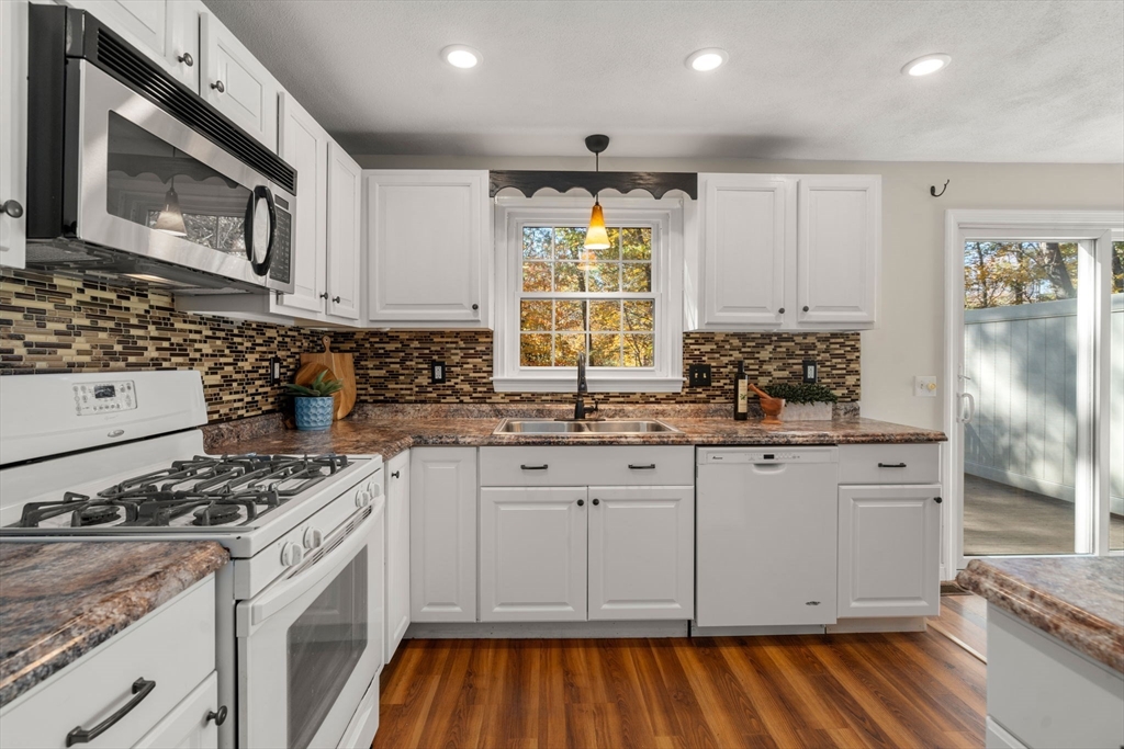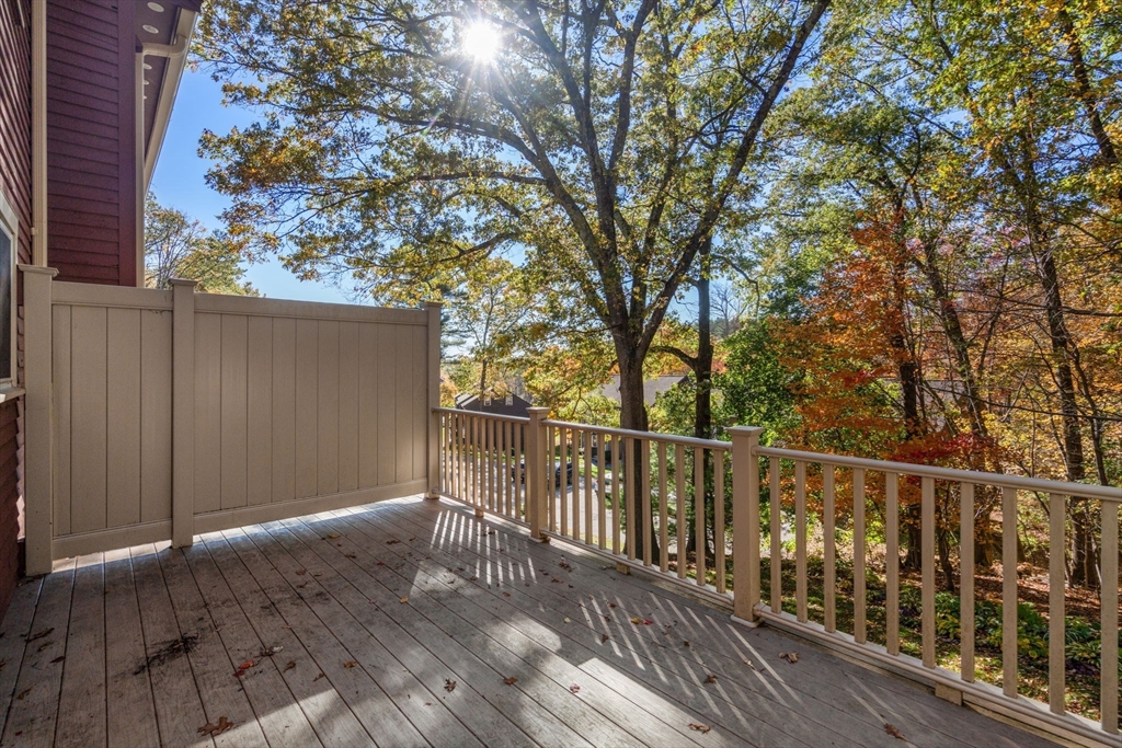 Crisp & pretty, this lovely home has been freshly painted top-to-bottom, with new flooring and new kitchen appliances. This is sophisticated living, ready for your move-in enjoyment! Updated and improved, this inviting floor plan features beautiful woodgrain laminate flooring running through the first-floor living, dining, and kitchen areas to the private back deck. The renovated kitchen (2015) offers extra countertop and cabinet space plus a tasteful mix of recessed and pendant lighting. The guest half bath was also renovated that year. New windows (2009) enhance the fresh, modern vibe. Upstairs, the large primary bedroom with double closets opens directly to an updated bath with double vanity sinks. A second bedroom completes this level. The loft is the epitome of comfort—spacious, stylish, with a fireplace, skylight, and ample storage. A walk-out basement offers generous storage or the potential for finishing additional living space. Association offers pool, clubhouse & playground.