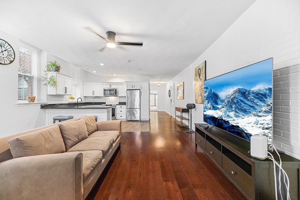 Beautifully renovated unique downtown garden style 2 bedroom condo with it’s own private direct access entrance door to outside ground level! Walk to restaurants, cafes, diners, shops, salons, yoga or commuter rail, everything you need. So much to do downtown! Renovated with hardwood floors and modern fixtures, kitchen with stainless steel appliances, granite countertops and ample cabinet storage, slide in range with warming drawer, in unit laundry, new 2 panel interior doors, new casing and baseboards. Additional storage unit right down the hall. Open house Sunday 12-2pm, don't miss it!