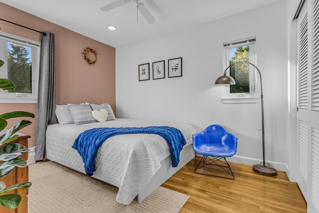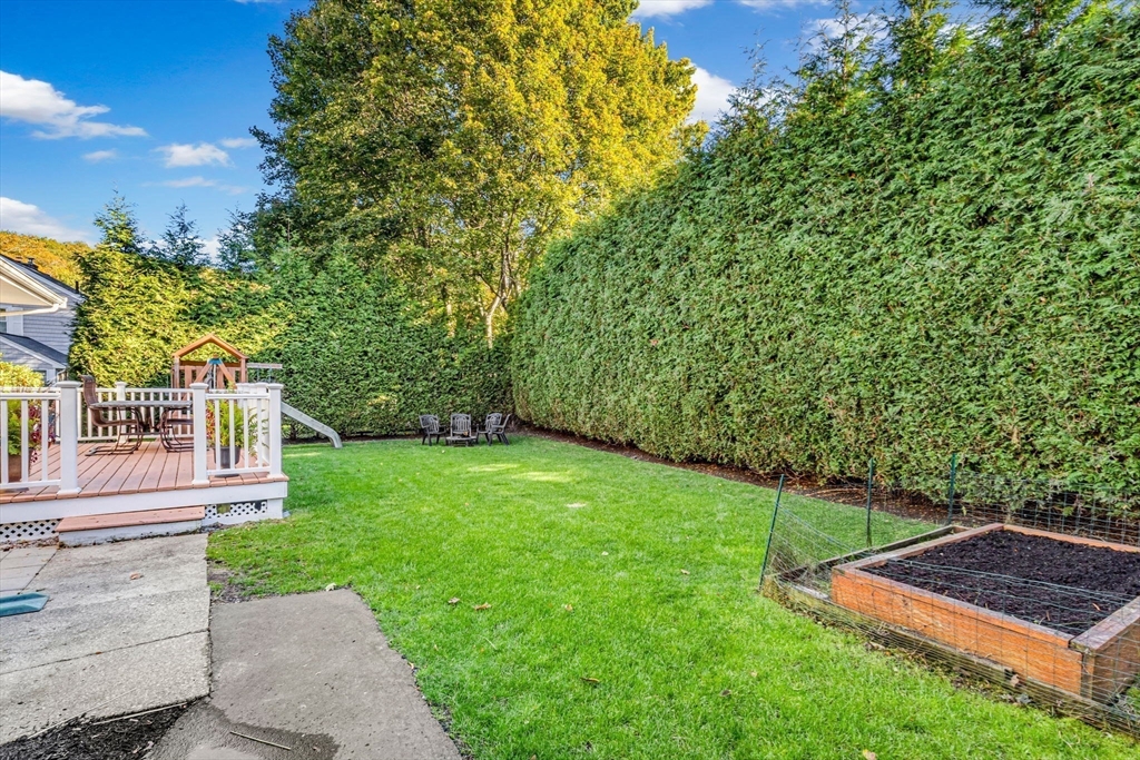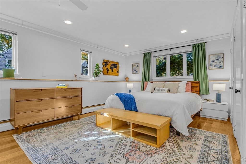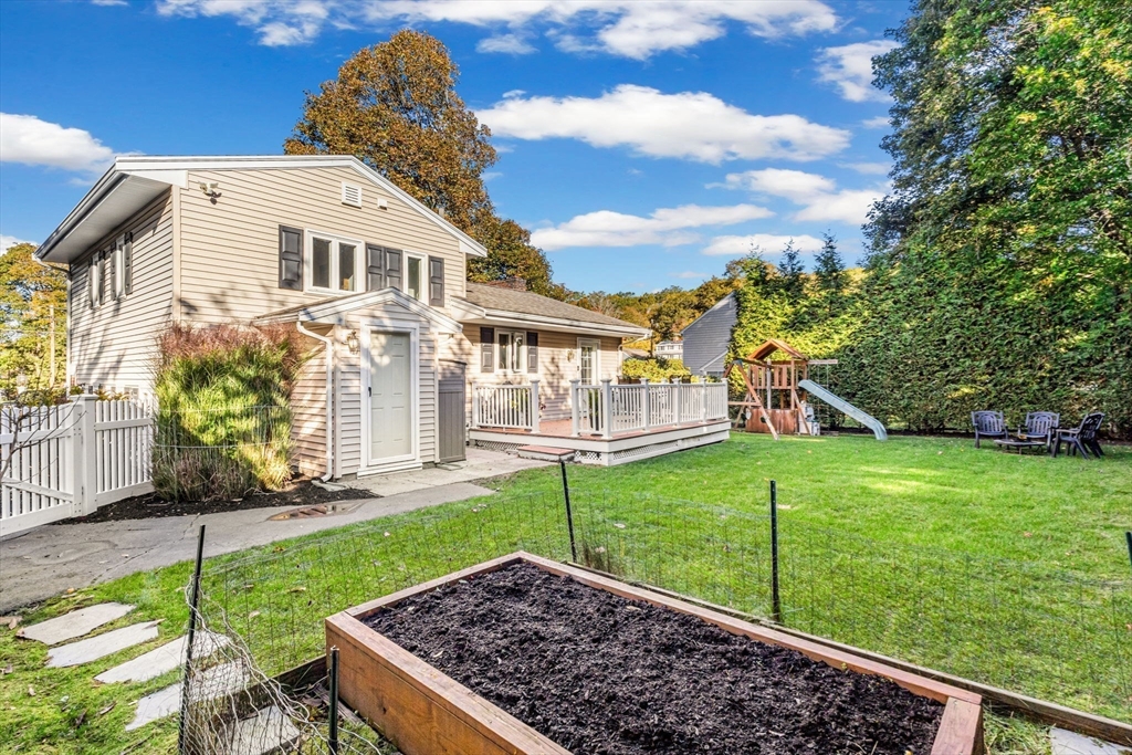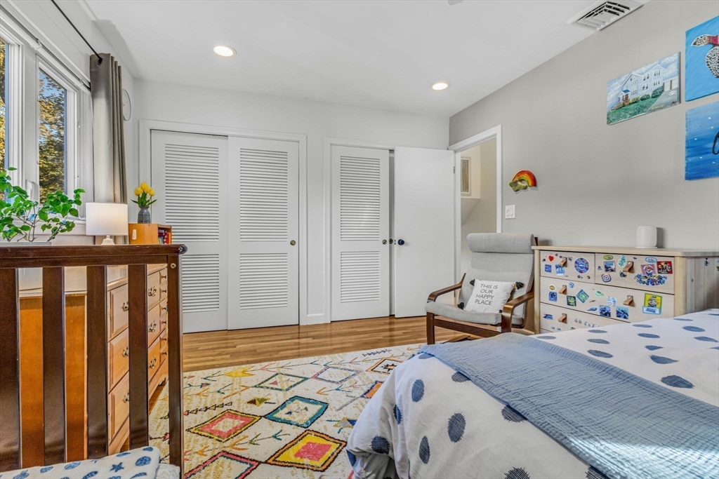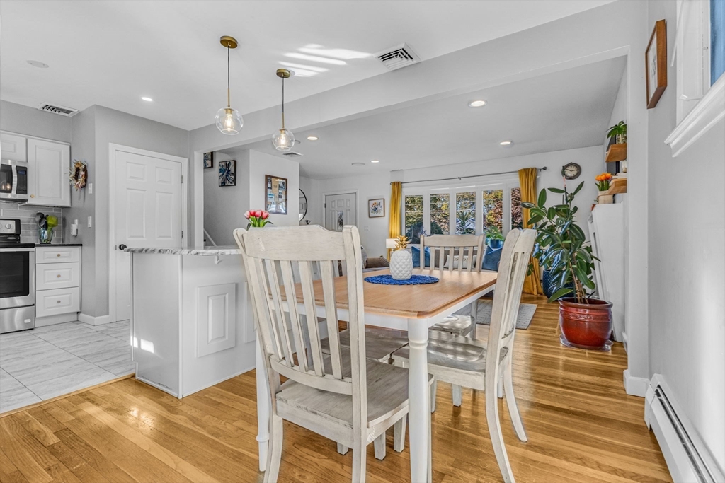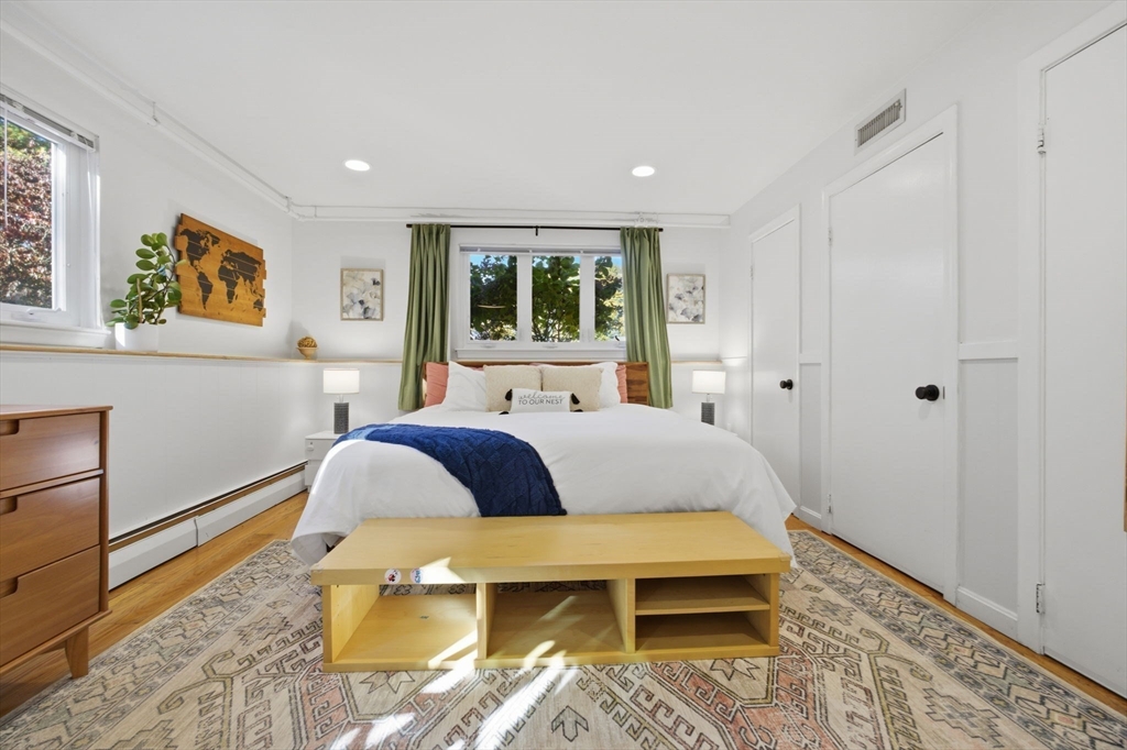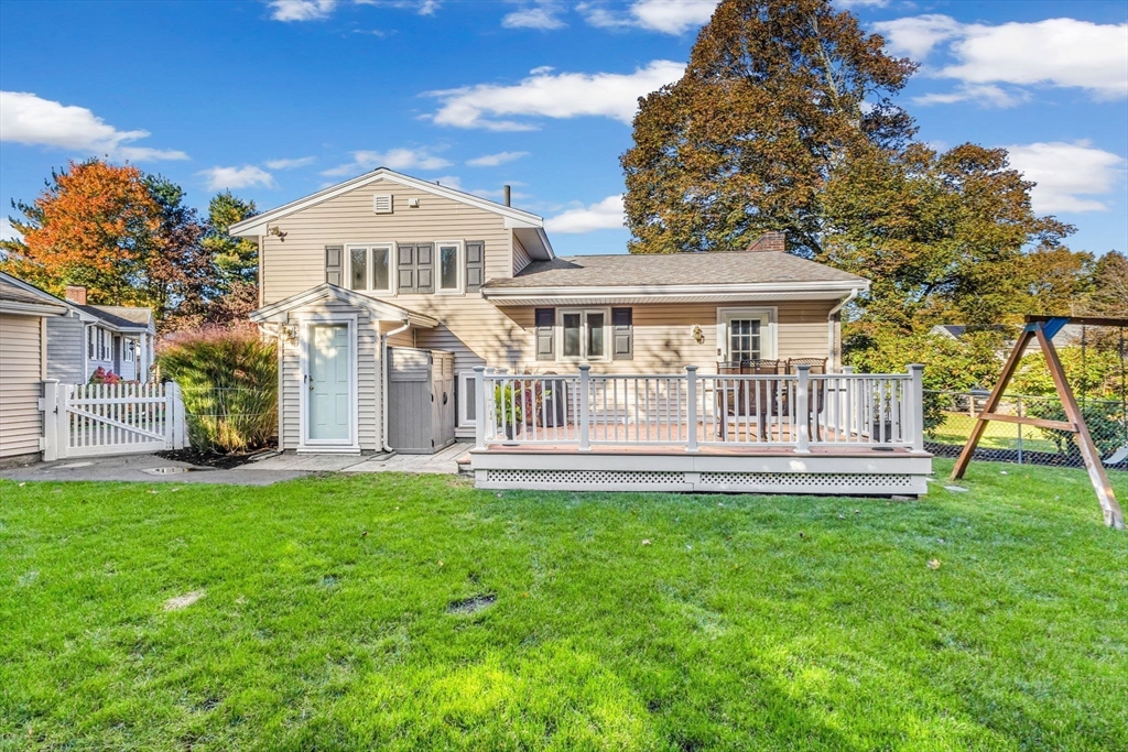 Tucked on a quiet cul-de-sac in one of Waltham’s most exclusive neighborhoods, this beautifully updated home blends modern comfort with classic style. The open-concept main level features a sun-filled living room with bay window and hardwood floors that flow seamlessly into the dining area and remodeled kitchen—complete with granite countertops, stainless appliances, pendant lighting, and center island. The flexible floor plan offers three spacious bedrooms and two full tiled baths, including a private primary suite with double closets. The lower level with laundry offers plenty of bonus space for storage, work area, home gym. Enjoy year-round comfort with central air, updated insulation, energy-efficient windows and garage parking. The level, fenced yard is ideal for play or relaxation with a large composite deck. Conveniently located near shopping, parks, schools, and major routes, this move-in-ready home offers the perfect blend of privacy, neighborhood charm, and convenience.