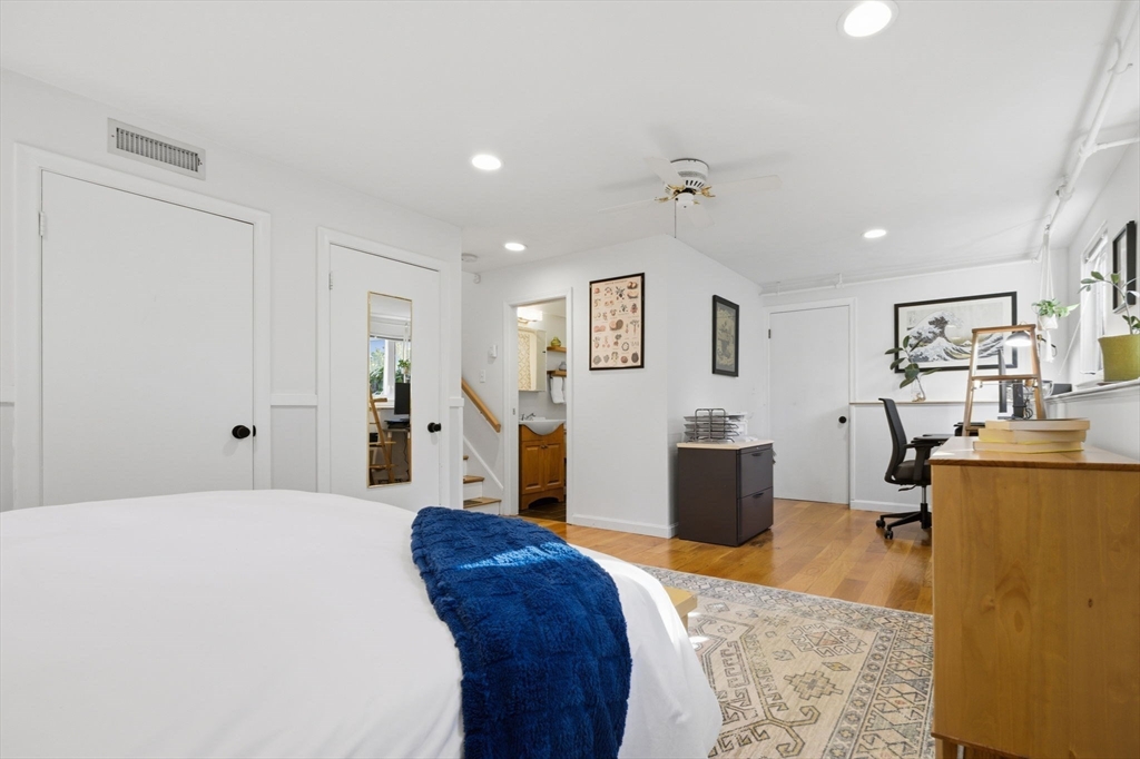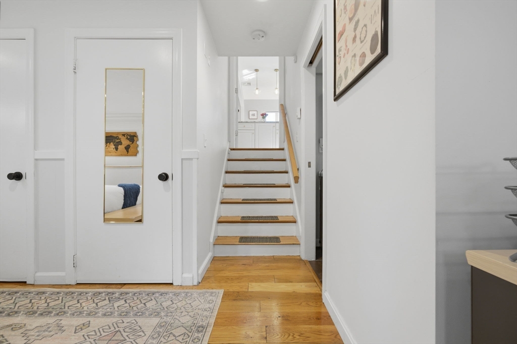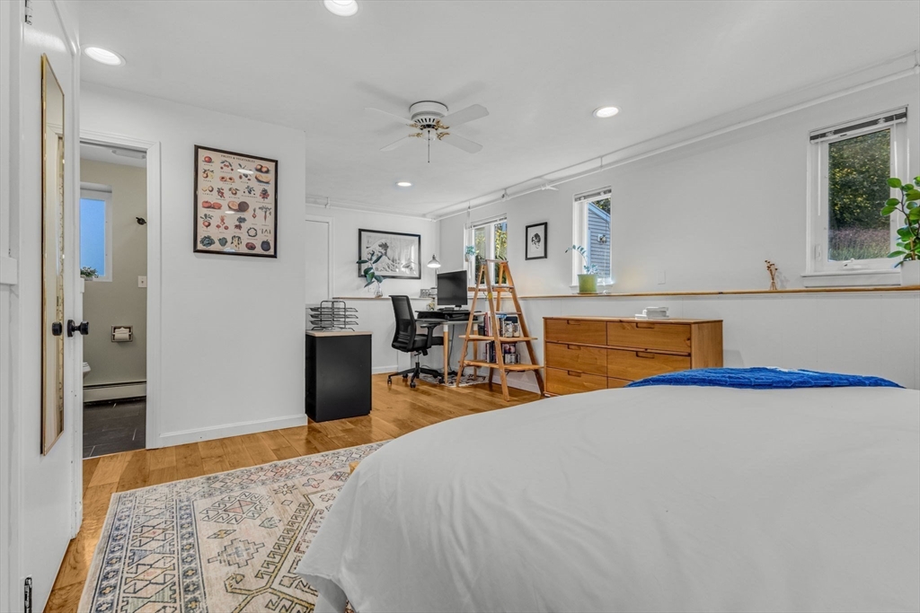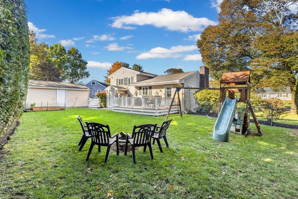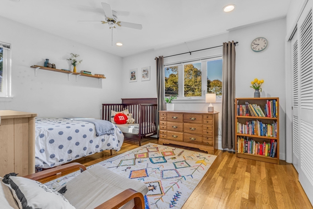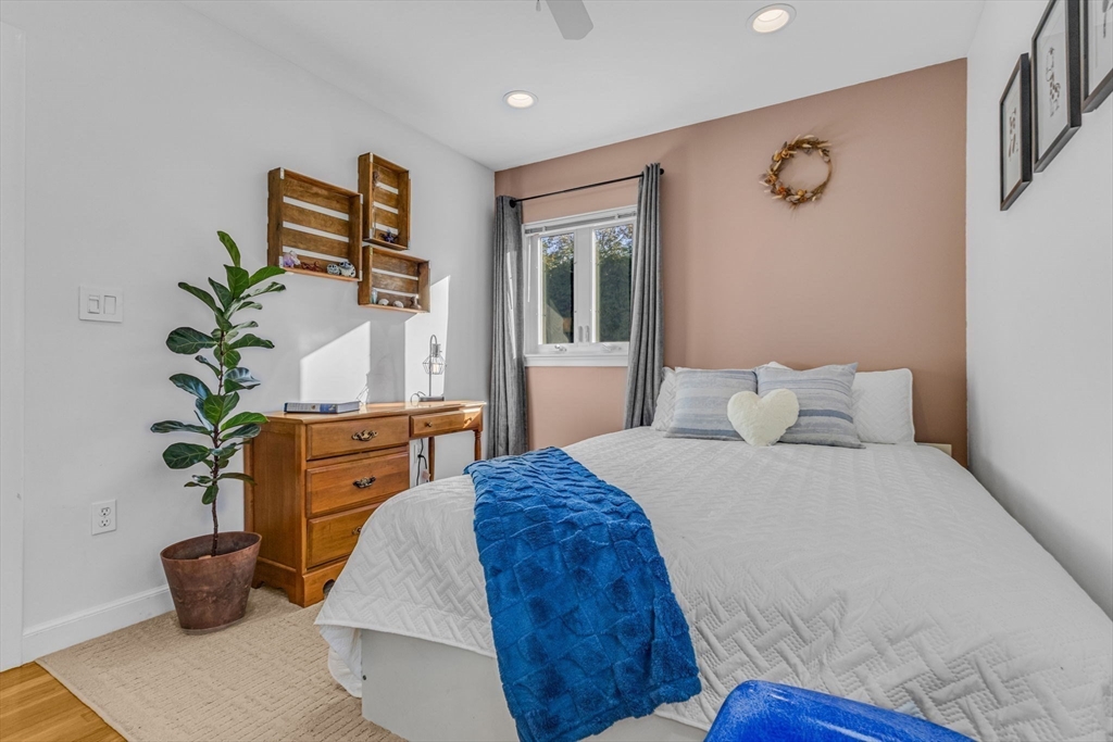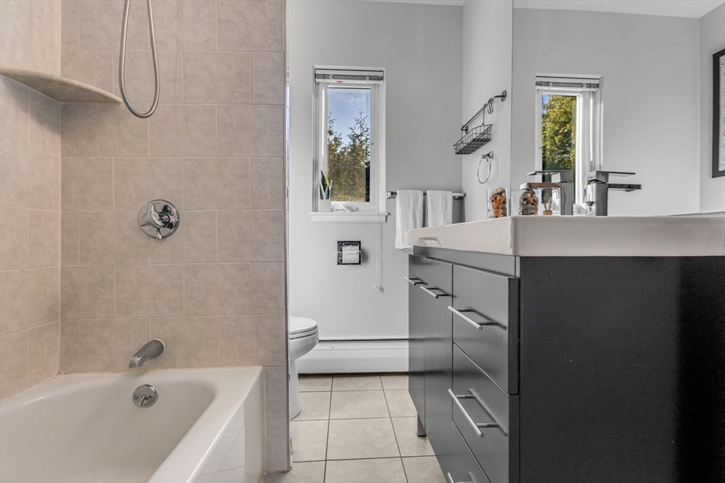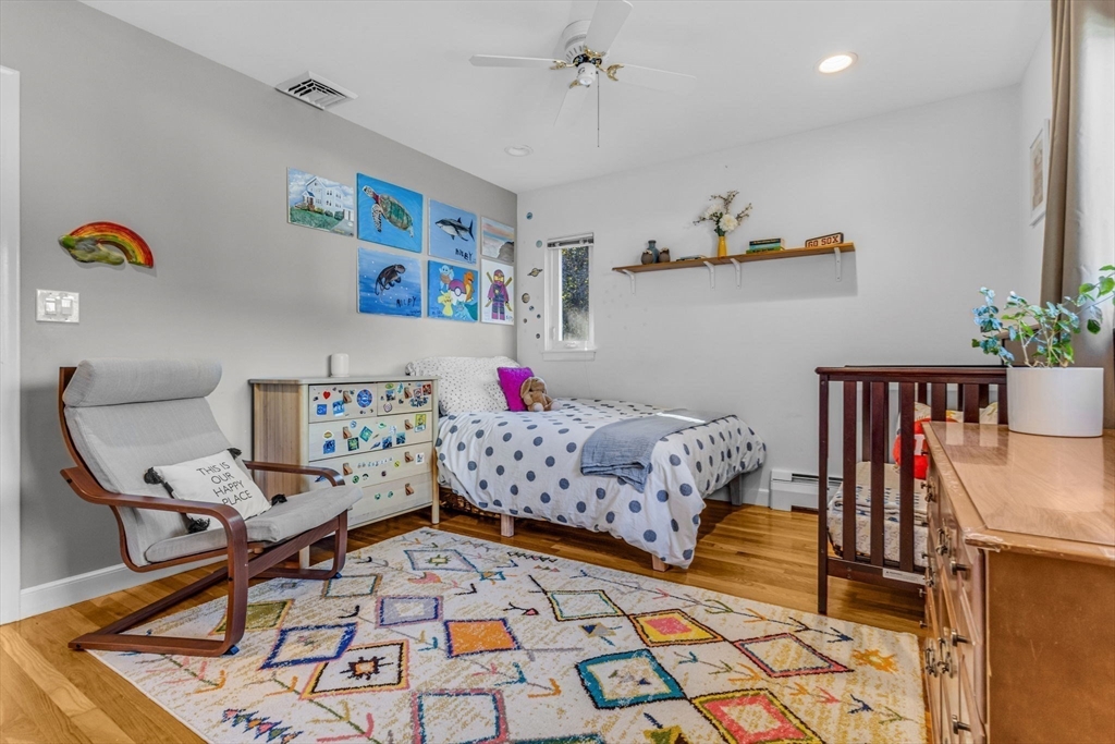 Tucked on a quiet cul-de-sac in one of Waltham’s most exclusive neighborhoods, this beautifully updated home blends modern comfort with classic style. The open-concept main level features a sun-filled living room with bay window and hardwood floors that flow seamlessly into the dining area and remodeled kitchen—complete with granite countertops, stainless appliances, pendant lighting, and center island. The flexible floor plan offers three spacious bedrooms and two full tiled baths, including a private primary suite with double closets. The lower level with laundry offers plenty of bonus space for storage, work area, home gym. Enjoy year-round comfort with central air, updated insulation, energy-efficient windows and garage parking. The level, fenced yard is ideal for play or relaxation with a large composite deck. Conveniently located near shopping, parks, schools, and major routes, this move-in-ready home offers the perfect blend of privacy, neighborhood charm, and convenience.