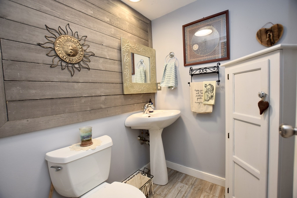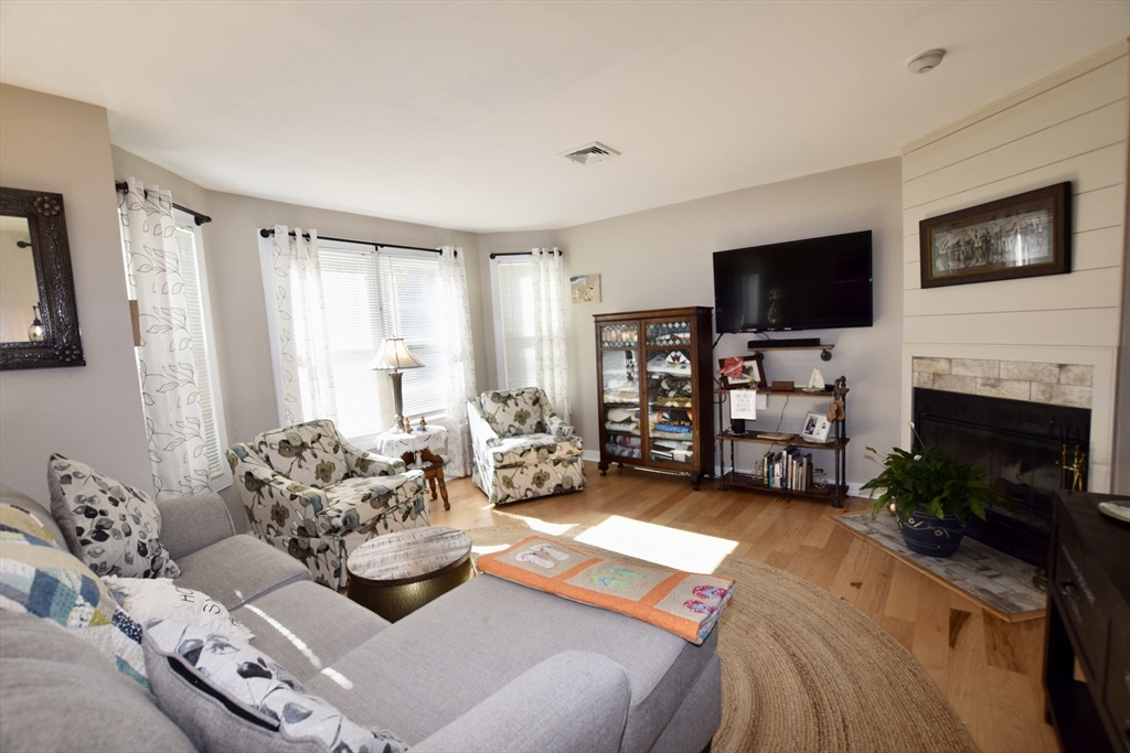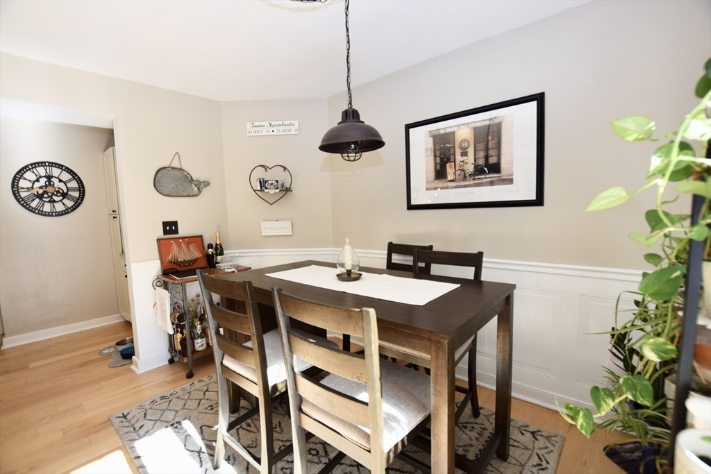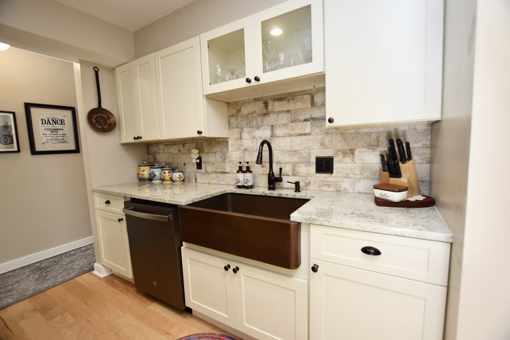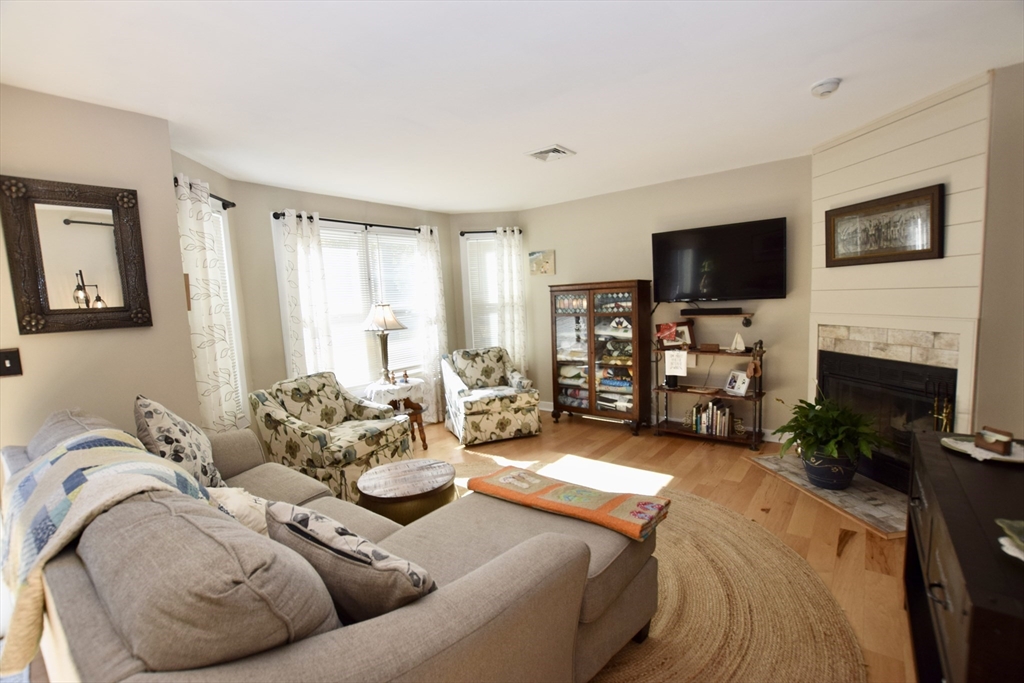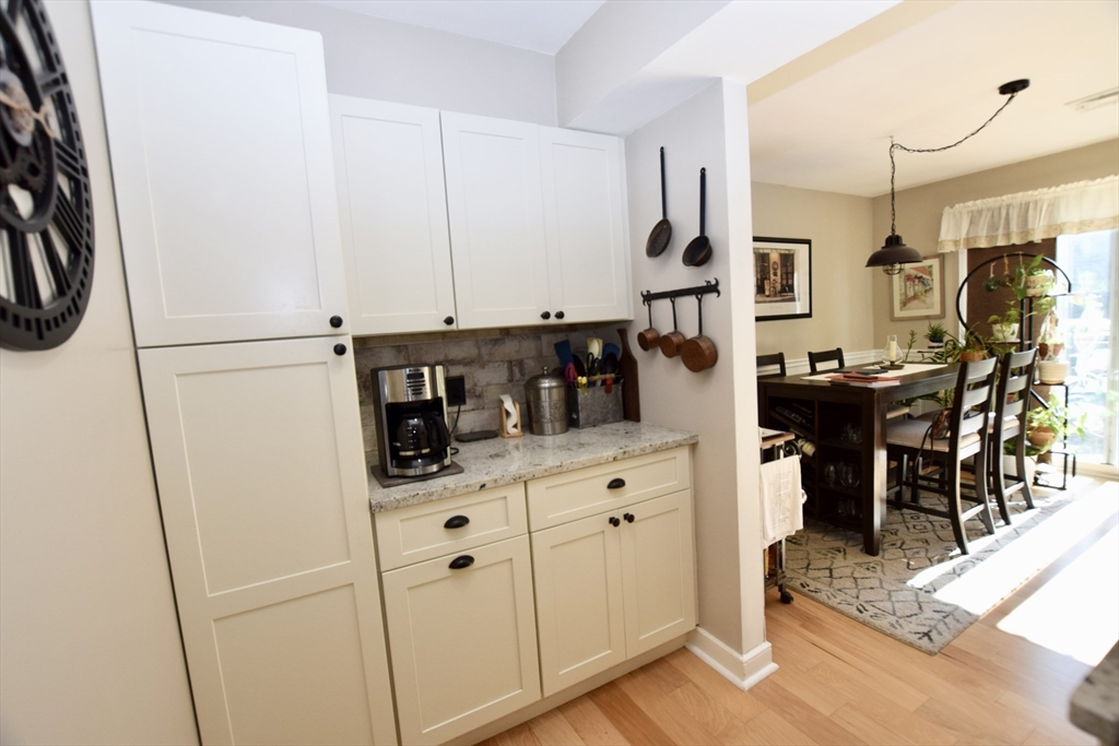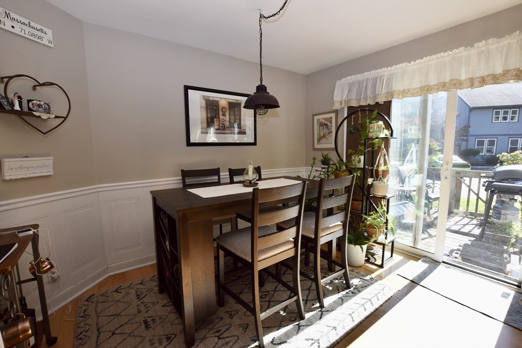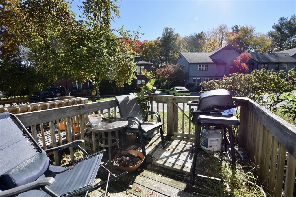 This beautifully updated townhouse-style condo blends comfort, convenience, and low-maintenance living. The first floor offers a newly renovated farmhouse-style kitchen that flows into a spacious dining and living area featuring a cozy fireplace and large picture windows. Step through the slider to your private deck overlooking peaceful wooded views—perfect for morning coffee or evening unwinding. Upstairs you’ll find two generous bedrooms, an updated full bath, laundry, and a finished third-floor office or flex room for added versatility. Enjoy fresh paint, modern finishes, and a pet-friendly community with professional landscaping and a pool. Conveniently located near highways and public transit. Welcome home!