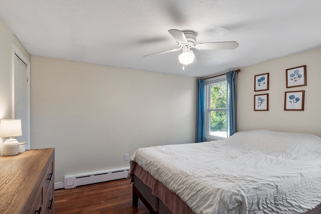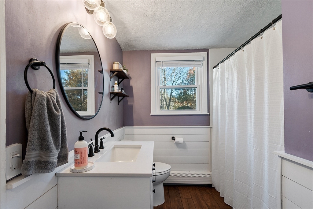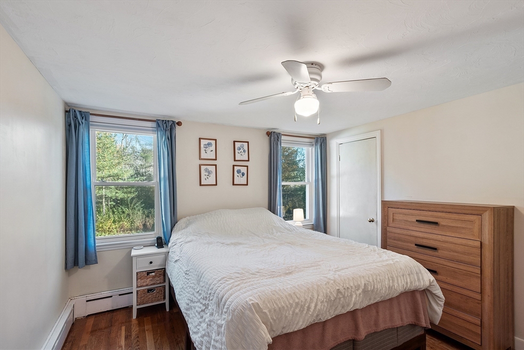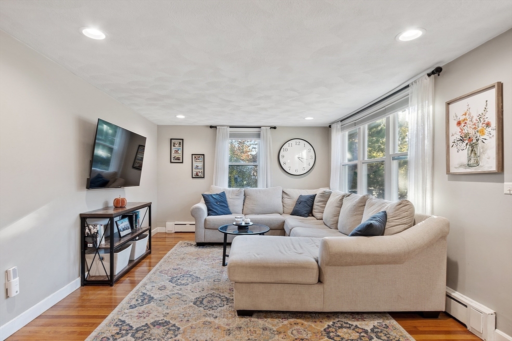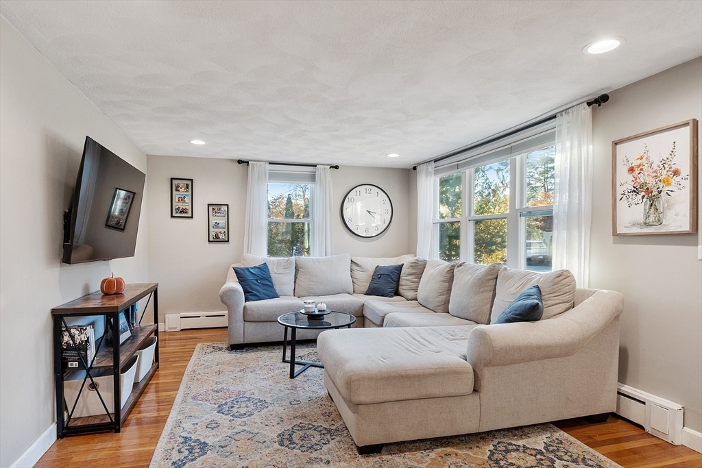 Gorgeous, well maintained, cute as a button Ranch on a quiet side street! This home boasts a contemporary kitchen with quartz counter tops, updated cabinets, tile back splash, and stainless steel appliances that flows beautifully to the sun drenched living room with recessed lighting, gleaming hardwood floors throughout the main living area, updated full bathroom with tile floors, both bedrooms are good sized with ample closet space, newer hot water tank and roof, vinyl siding, and so much more! The partially finished walk out basement gives you more room to spread out and to make your own. Sit out on your wonderful patio that over looks the private, large, serene setting that is your back yard! Ideal location that is close to highways, Tree House Brewery, shops/restaurants, and everything else that Tewksbury has to offer!