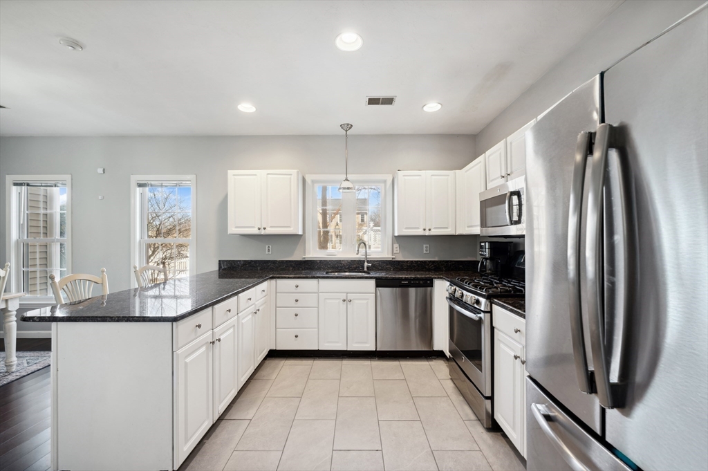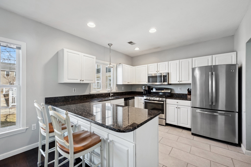 Beautifully maintained 3-bed, 2-bath end-unit townhouse tucked away in a quiet corner of Braintree’s desirable Devon Wood community. The updated kitchen features granite countertops and stainless steel appliances. A private patio off the living room creates the perfect indoor-outdoor space, complete with an exterior storage shed. All bedrooms are generously sized, including a spacious primary suite with vaulted ceiling and walk-in closet. Additional highlights include central AC, attic storage, in-unit laundry, one deeded parking space, and ample guest parking. Enjoy resort-style amenities including a pool, clubhouse, tennis courts, and scenic walking trails—all set on 350 acres of conservation land. Conveniently located near the commuter rail, 93, and Rt 3.