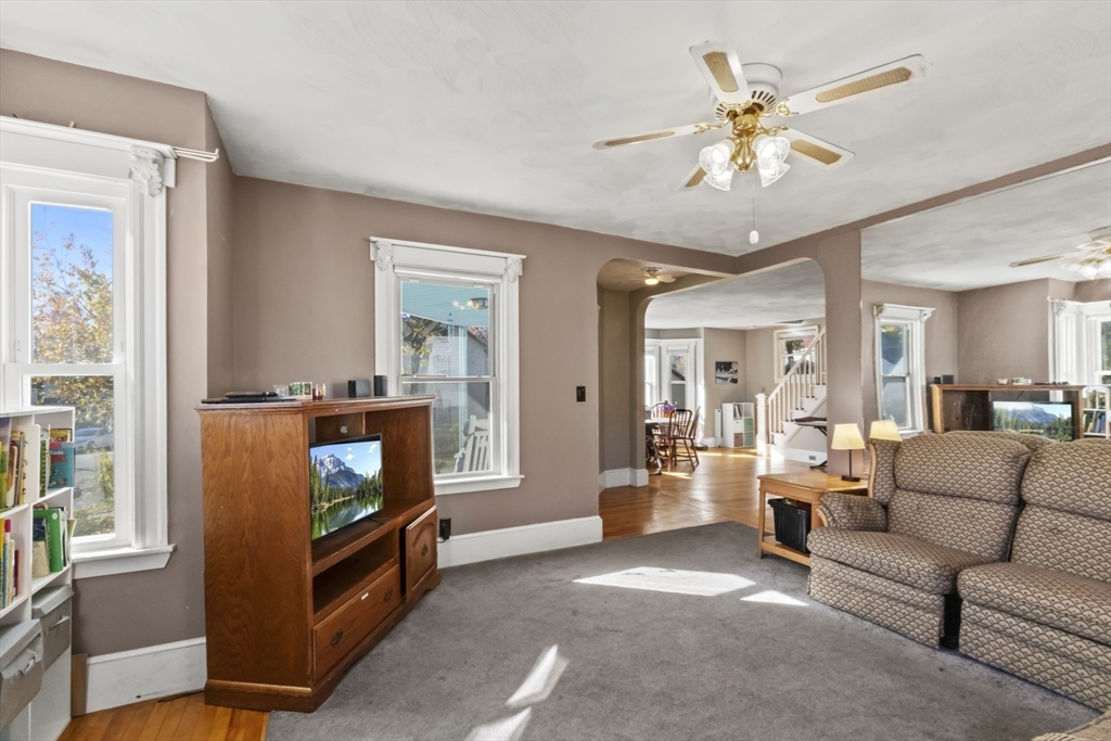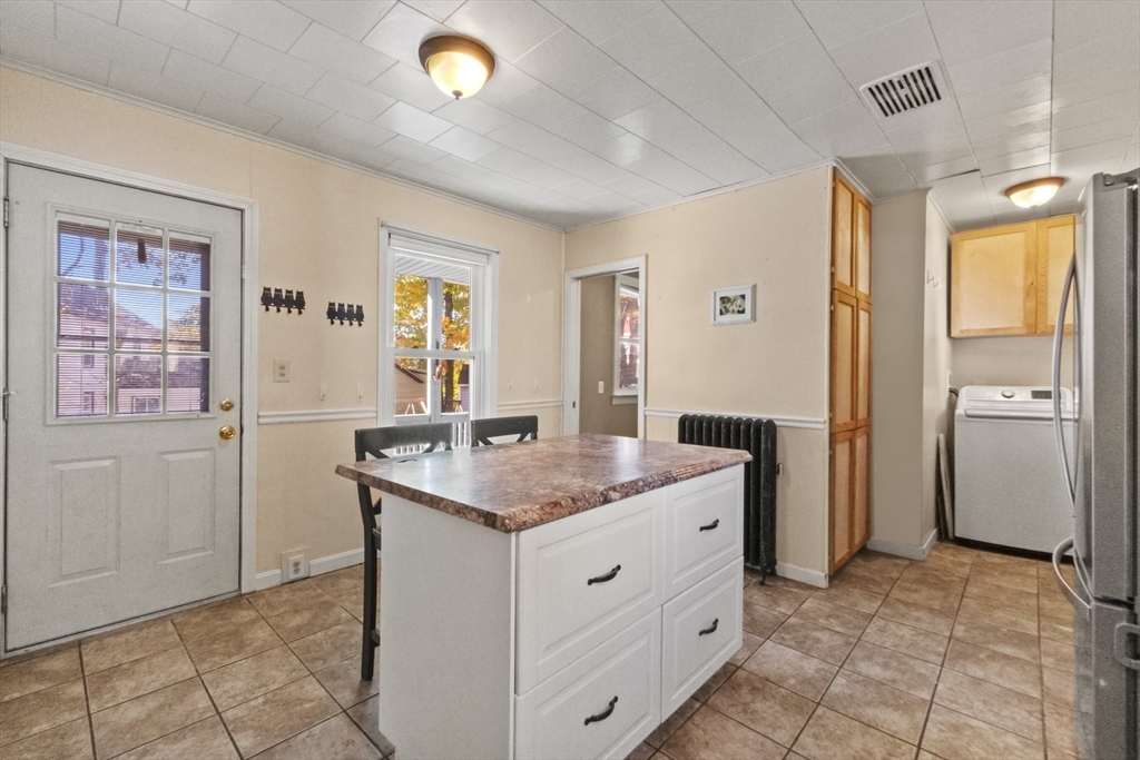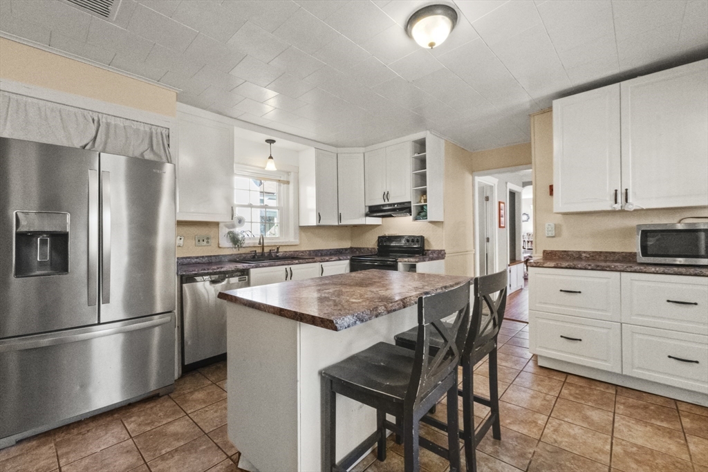 A De-leaded 4BR home ready for new owners! Enter through the inviting covered front porch and continue into the sun-filled living room, featuring hardwood floors that flow seamlessly into the formal dining room with a charming bay window. The spacious kitchen is perfect for entertaining, offering a center island with a breakfast bar, ample countertop space, and direct access to the back deck—plus first floor laundry. The first floor also includes a bedroom with built-in shelves and generous closet space and a full bath. Upstairs, you’ll find three good-sized bedrooms, each with lots of storage, along with another full bath. Enjoy the partially covered back deck overlooking a partially fenced yard, perfect for relaxing or hosting gatherings. Located in the heart of Leominster, minutes from downtown shops, restaurants and seasonal festivities. Don’t miss this opportunity to be in your new home for the holiday season! Lots of updates already completed -from Roof to boiler to many windows