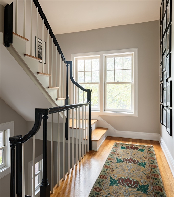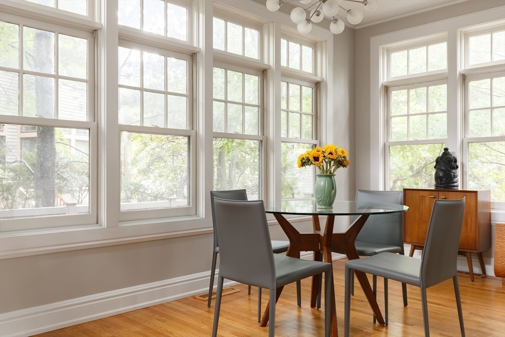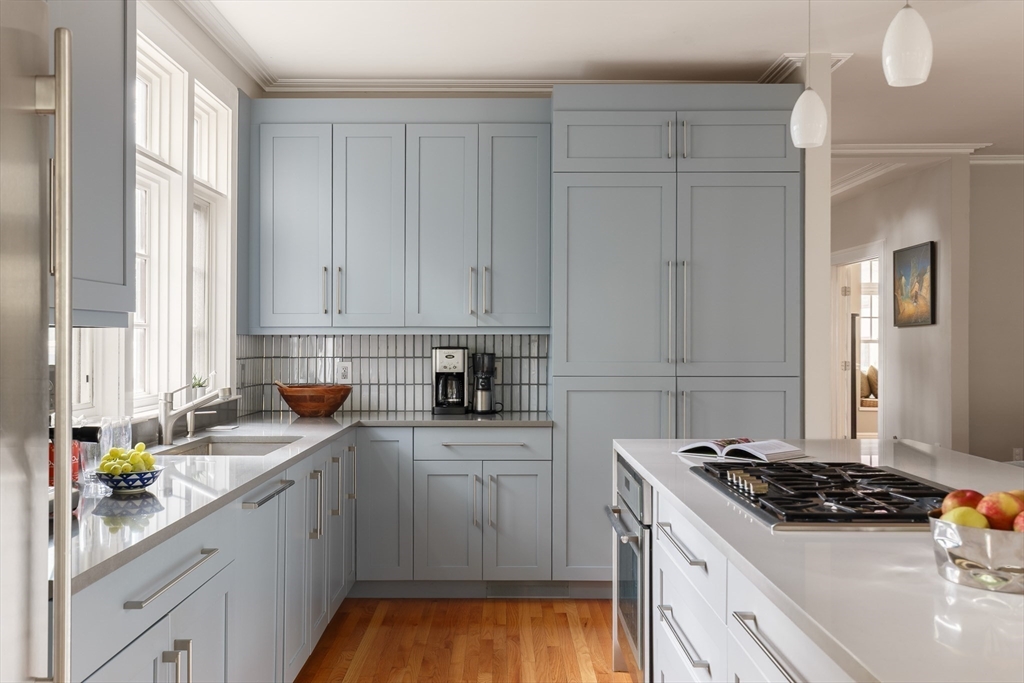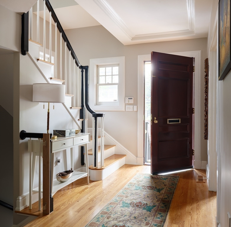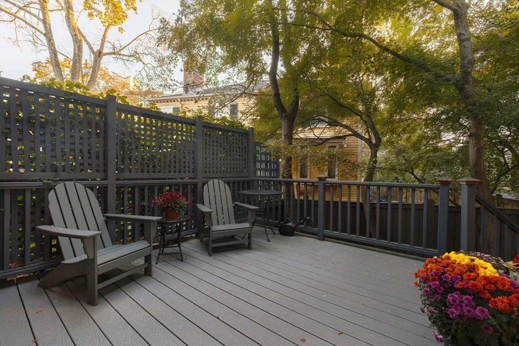 Generous in scale and refined in design, this attached SF offers space and livability rarely found in an urban setting. Four finished levels are connected by a continuous stairwell, creating a distinct yet cohesive layout. The main level—anchored by white oak floors, nine-foot ceilings, and a wood-burning fireplace—flows seamlessly between living, dining, and kitchen spaces. The 2019-renovated kitchen features quartz counters, a waterfall island, Thermador appliances, and a Sub-Zero refrigerator, with direct access to the expansive deck and private fenced garden/yard. Upstairs, the primary suite includes a walk-in closet, dressing room, and spa-like bath, joined by a generous en-suite bedroom and laundry. The top floor offers two bedrooms with cathedral ceilings and a shared bath. Flexibility abounds in the lower level with two large living spaces—one previously used as a media room—plus a wet bar and full bath. Two off-street parking spaces with EV charger complete this rare offering.