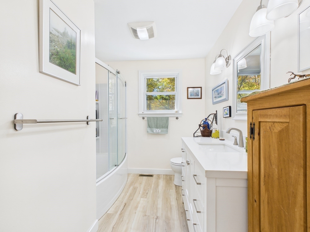 Welcome to 9 Division Road, a truly magical retreat tucked away in the peaceful woods of Westport. Completely renovated in 2023, this charming home offers a seamless blend of modern efficiency and natural beauty. Updates include a brand-new kitchen, heating system, heat pumps (paired perfectly with your solar panels), new flooring, fresh interior paint, an updated bathroom, and refreshed landscaping/ clearing.The owned solar panels—installed in 2023—offer incredible energy savings, and the seller’s solar loan is transferrable to the buyer, making the transition effortless. Inside, you’ll find inviting living spaces featuring one cozy wood-burning stove and one pellet stove that create warmth and ambiance throughout the seasons.Step outside and you’ll be surrounded by nature—watch deer wander through the trees, wild turkeys cross the yard, and frogs gather around your very own pond. This property radiates tranquility and charm.