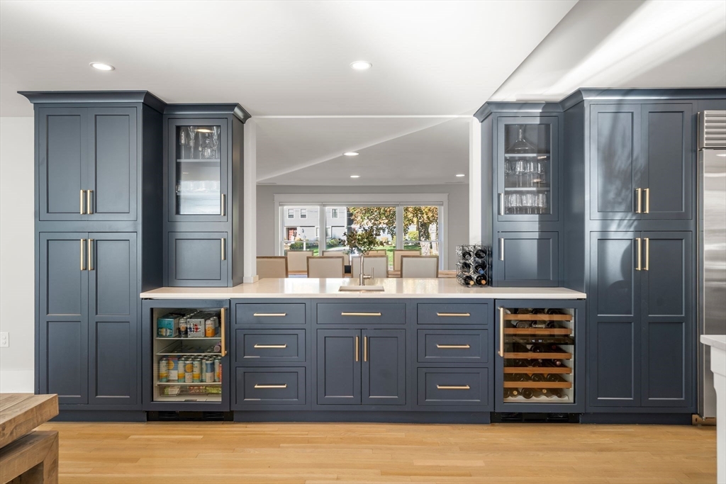 Nestled in the coveted Apple Hill Neighborhood, this contemporary ranch-style home offers the perfect blend of comfort & modern design. Completely updated w/ an open-concept layout, the heart of the home is a chef’s dream kitchen featuring an oversized island w/ quartz countertops, Sub-Zero fridge, Thermador 6-burner gas range w/ double oven & custom Venetian plaster vent hood. The adjacent wet bar, complete w/ beverage & wine fridges, flows seamlessly into the living rm & dining area, ideal for entertaining. Additional highlights include a mudroom, laundry rm & 1/2 bath for everyday convenience. The primary ensuite boasts a glass steam shower & walk-in closet, while 2 additional bedrms & a stylish guest bath w/ double vanity & tile shower/bath combo complete the main level. Upstairs, you’ll find 2 more bedrooms offering flexible space for guests or office. Head outside to find a spacious deck & beautifully landscaped yard w/ inground gunite salt water pool ideal for entertaining!