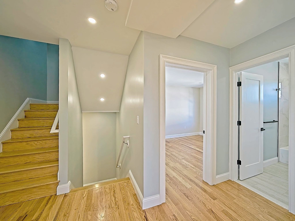 Welcome to 1905 River St, a beautifully designed multi-level condo in the heart of Hyde Park, Boston. This spacious home spans three levels, offering a thoughtfully designed layout ideal for modern living. The main floor features an open-concept kitchen with white cabinetry, quartz countertops, a dining area, a comfortable living space, and a convenient half bath. The second level includes three generously sized bedrooms and two full bathrooms, while the third-floor master suite offers a private retreat with ample space. Additional highlights include hardwood floors throughout, ceramic tile in all bathrooms, eco thermostats, security cameras to exterior, a private deck perfect for relaxing or entertaining, and off-street parking. Experience the perfect combination of comfort, style, and smart features in this move-in-ready home!