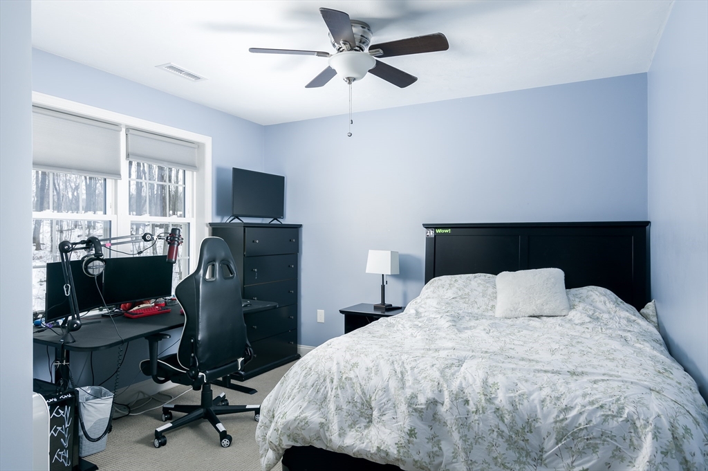 Beautiful townhouse style duplex set on a 5 acre parcel . Open floor plan on the 1st floor offers living room/dining room/kitchen all with plank style flooring . Beautiful kitchen with bright white cabinetry & soft close features accented with soft gray center island, granite counters, & stainless steel appliance plus Dining space/room with pantry closet all leading to front living room with propane FP complimented with stone front. 2nd floor features Guest room and Full bath along with Primary Suite. This space is versatile with office , den or sitting room option with closets leading to large bedroom and private full bath with tile and granite . Finished LL offers that extra bit of space perfect for a game or rec room. Oversized garage and Private deck framed by woods and common space competed this property. Welcome to this Move in ready HOME