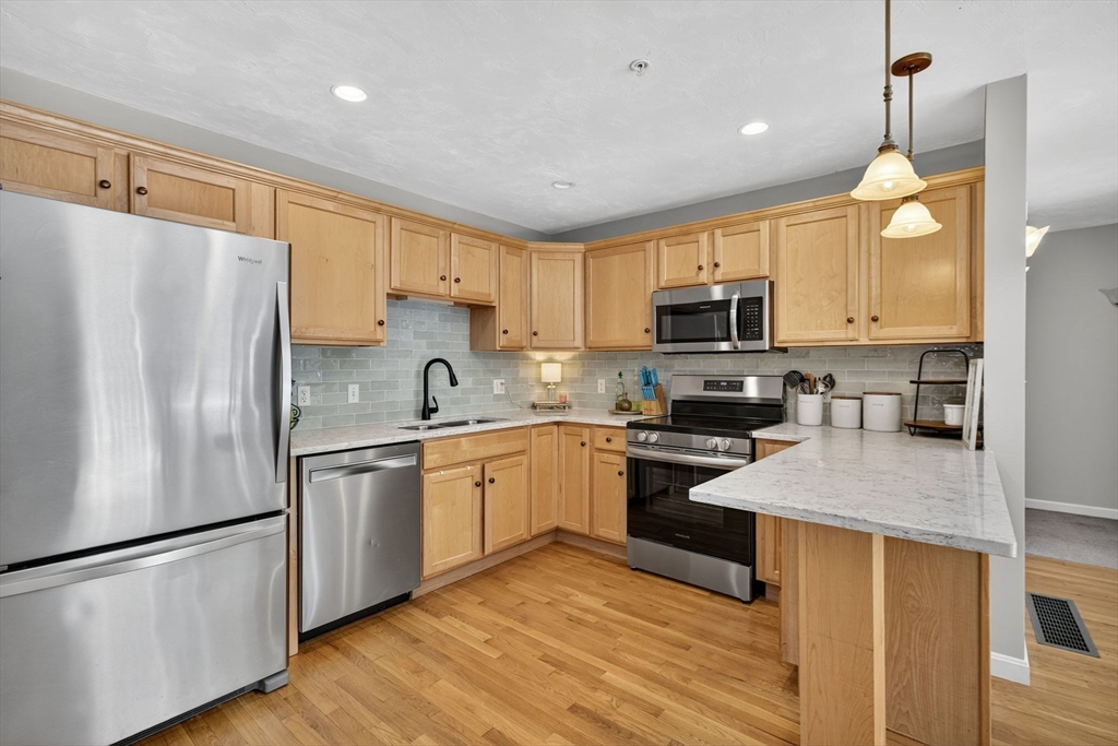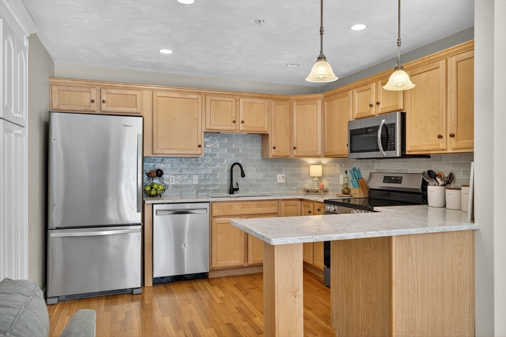 PRESENTING 505 Hampton Way in Abington- the magnificent END-UNIT TOWNHOME you've been dreaming of as your new alternative to SINGLE FAMILY living! Upon entrance into the stunning foyer, from the attached one-car garage, you'll walk into a bright and SPACIOUS condo that instantly feels welcoming! The OPEN LAYOUT on the main level creates the perfect flow for everyday living and entertaining, while overlooking a serene GAS FIREPLACE for peaceful evenings at home. The kitchen shines with newer stainless steel appliances, opening up to the dining and living room areas. The primary bedroom is ample in space with double closets that lead into an en suite bathroom! Adjacent to the primary bedroom is IN-UNIT LAUNDRY and the 2nd bedroom down the hallway abuts a full bathroom. The SHOWSTOPPER is the downstairs finished level that hosts a GRAND MOVIE ROOM with high ceilings and plenty of space! There is a tremendous amount of STORAGE available on the lower level! OUTDOOR SPACE overlooking nature!