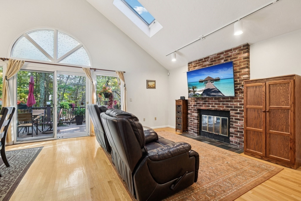 Space and lifestyle in this stunning 3-bedroom, 3-bath contemporary set on a private wooded lot in one of Sharon’s most sought-after neighborhoods. Sun-splashed with cathedral ceilings, skylights and an open layout perfect for modern living, this home features a granite island kitchen with gas cooktop and double oven. The vaulted primary suite offers a true retreat. A fully finished walk-out lower level adds incredible flexibility with multiple rooms ideal for a playroom, teen/guest suite, gym or office. Relax or entertain on the expansive composite deck overlooking lush, tree-lined grounds. Young architectural roof and passing septic offer peace of mind. Located minutes to Lake Massapoag, commuter rail, top-rated Sharon schools, highways, shopping and recreation — this is the lifestyle upgrade you’ve been waiting for.