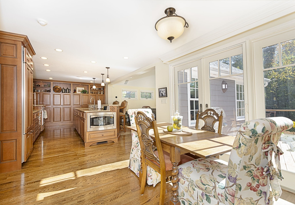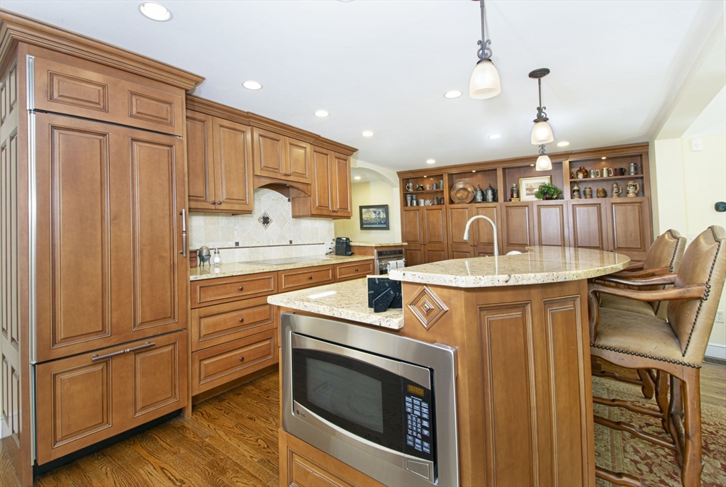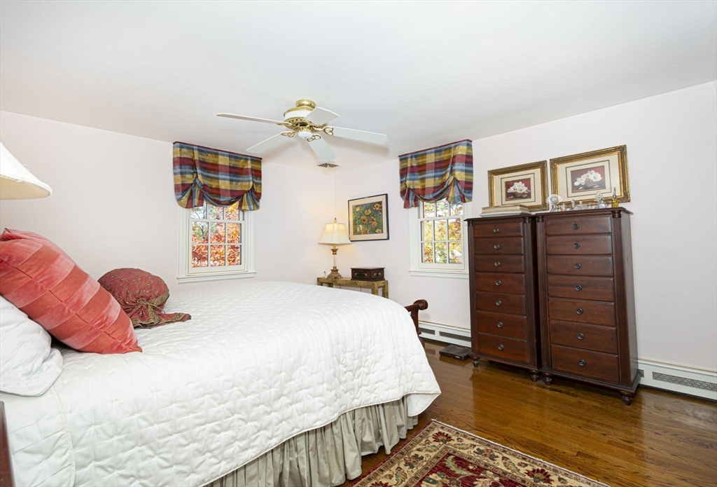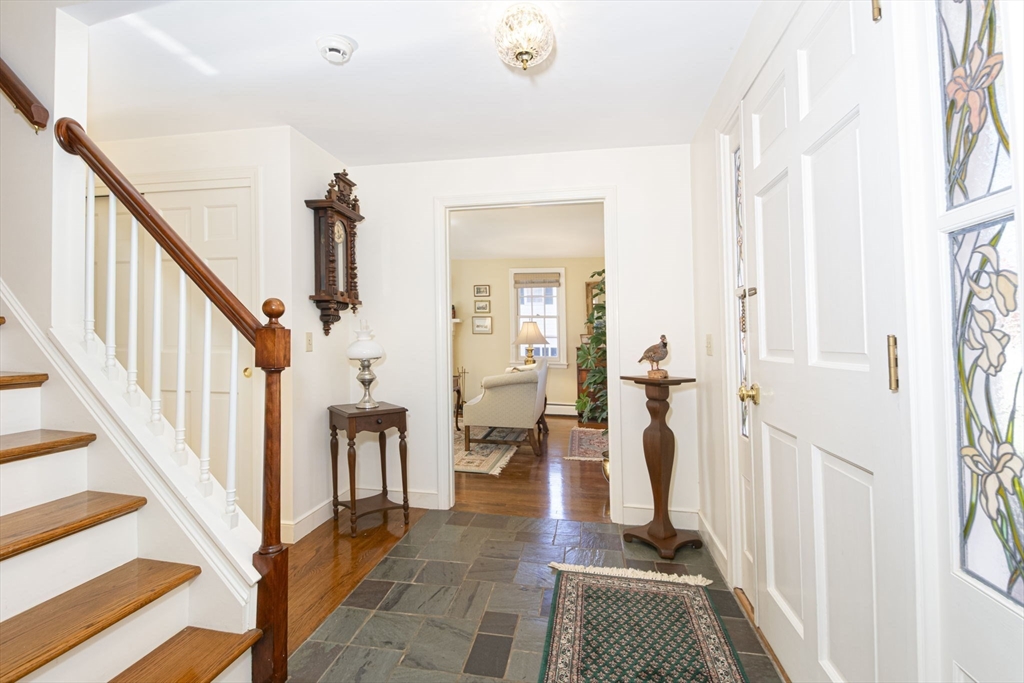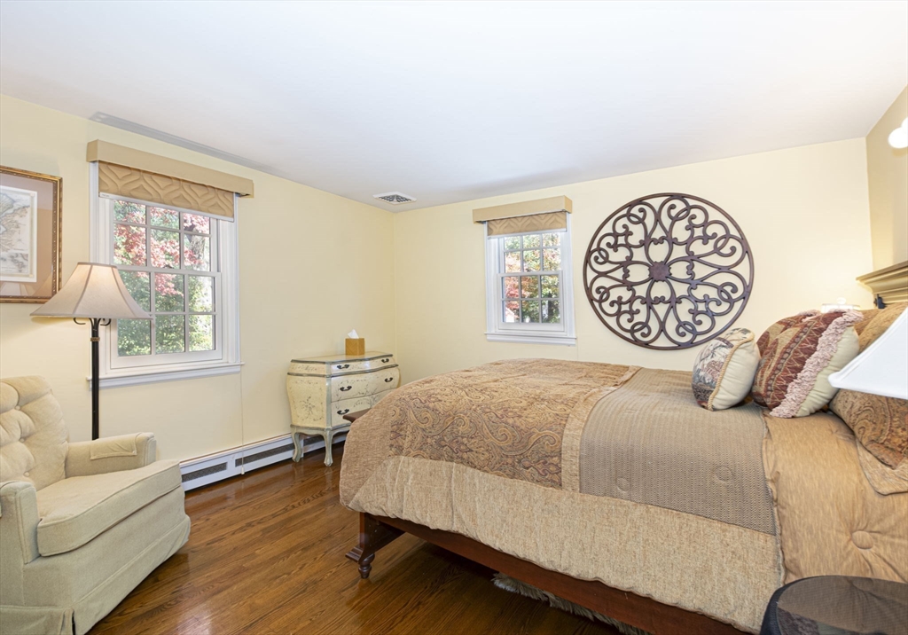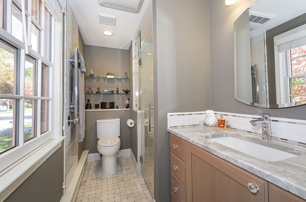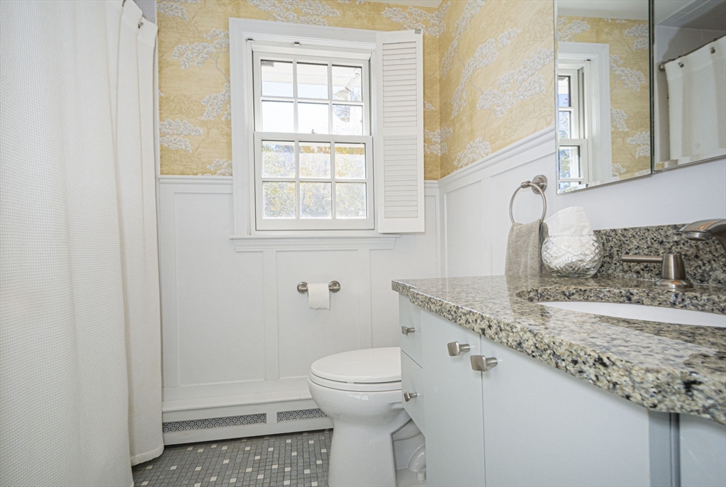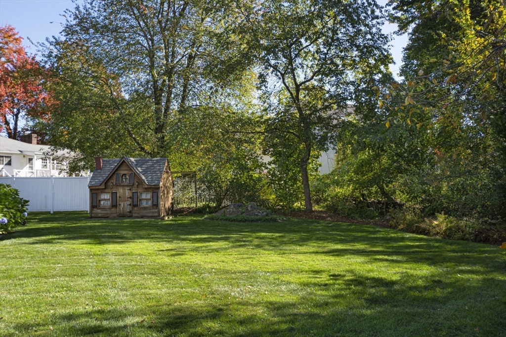 It will be clear the moment you arrive..this is a truly special property that exudes quality and class. Step onto the welcoming covered porch and enter an exceptional, updated kitchen featuring a large granite island, Sub-Zero and Wolf appliances, and a charming dining area with sliders to a composite deck and patio.Thoughtful details abound, including concealed pull-outs, a hidden pantry, and a built-in office nook. A stunning addition expanded the home, creating a cathedral-ceiling family room with a gas fireplace that’s perfect for relaxing or entertaining. The formal living room offers a wood-burning fireplace with a new lining, adding to the home’s warmth and character. Upstairs are four bedrooms and two full baths, including a luxurious primary suite with a heated floor and towel bar. The finished lower level provides flexible bonus space, ideal for a playroom and home office. A darling playhouse in the rear yard will provide many hours of back yard fun and also provides storage.