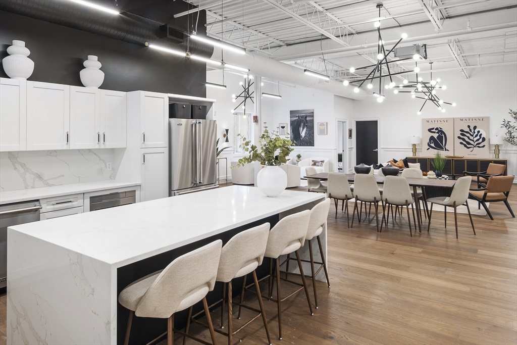 Amazing value! Stunning loft unit with large floor plan and two-deeded parking spots! Beautiful newly-renovated front-facing creatively designed unit, is outfitted with sleek sophisticated finishes, walnut stained hardwoods, and numerous upgrades. Grand flexible open floorplan of 1,780 Sq. ft is flanked by a massive 9ft island and soaring 13ft ceilings provides the perfect back drop for entertaining. Envious chef’s kitchen features Viking appliances and ample storage. Spa-bath is outfitted with luxurious finishes & deluxe gold fixtures. Massive king-sized bedroom w great storage makes for a relaxing retreat. Secondary flex room is ideal office/guest room. Roof rights allow for numerous outdoor options. Reasonable condo fee, in-unit washer & dryer, Central A/C & prime location completes this oasis. Fantastic location provides direct access to local coffee shops, restaurants, Alewife & Porter T-stops, Danehy Park, Wholefoods & Fresh Pond. Easy1.5 miles to Harvard Sq. Great buy!