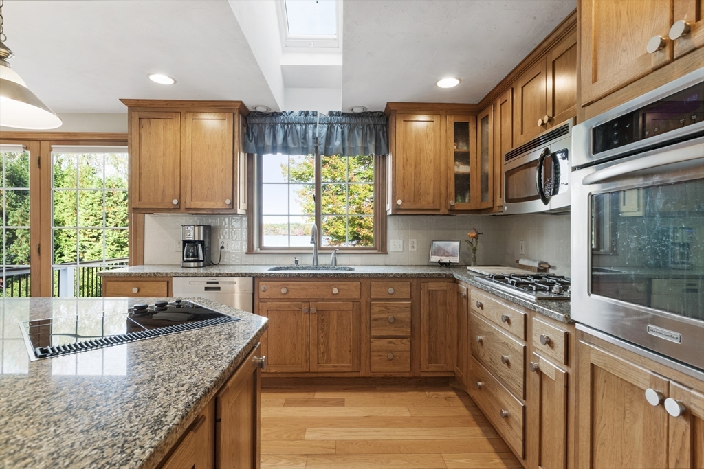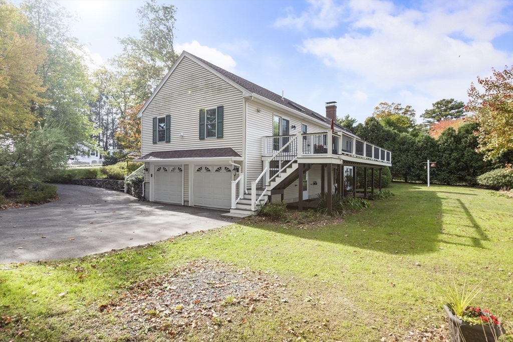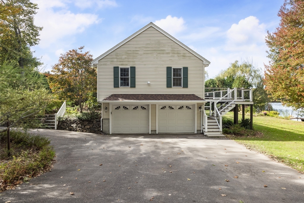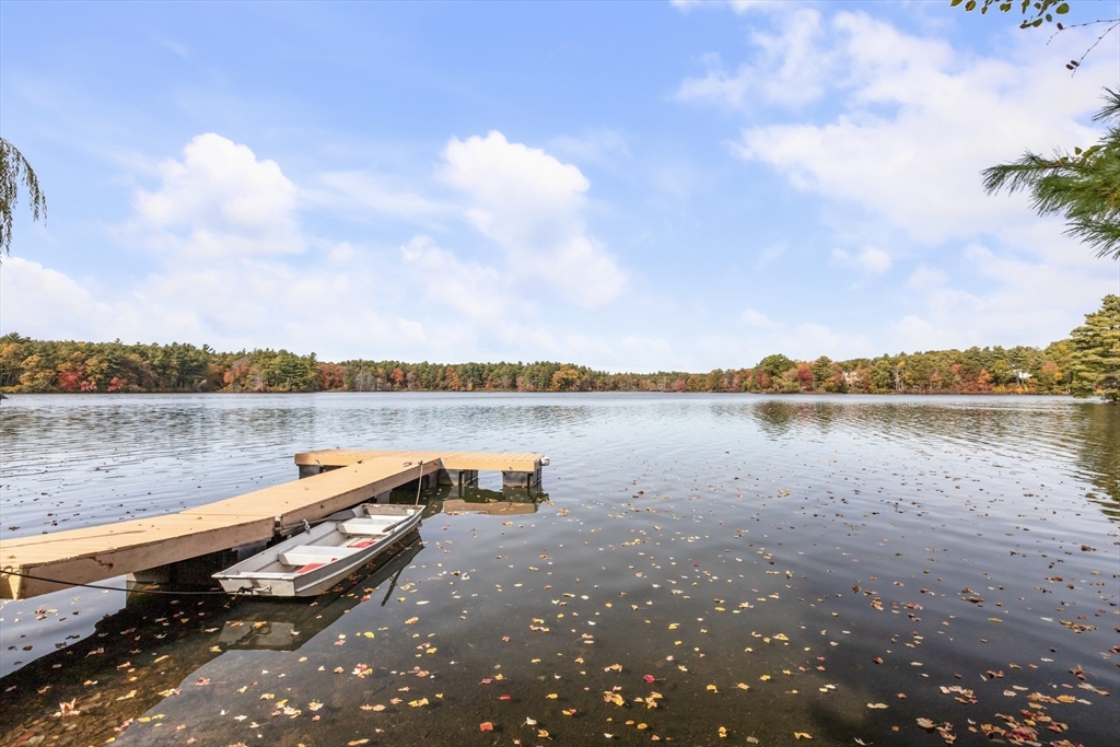 Exceptional waterfront estate with private island on the Neponset Reservoir! This custom-built home offers panoramic water views from the living room, kitchen, primary suite, and walkout basement. Features include vaulted skylit ceilings, hardwood floors, a stone fireplace, and a kitchen with island, built-in Jenn-Air grill, and stainless appliances. The lower level adds another stone fireplace with pellet stove, cedar walk-in closet, and workshop. Enjoy professionally landscaped grounds, an expansive TimberTech deck with Trex RainEscape system, new roof, and private dock for boating and fishing. Included is your own private island (73A Ridge Rd) featuring an upgraded cabin, dock, and deck. Relax with sunsets and Gillette Stadium fireworks from both home and island. Quiet dead-end street, minutes to town—a rare Foxboro waterfront gem!