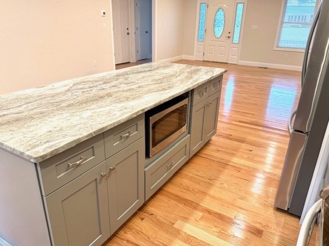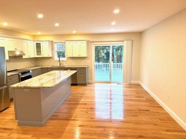 This new-construction home has just been completed! Absolutely gorgeous open floor plan with sliders to rear deck! Stunning kitchen with stainless steel appliances, recessed lighting, granite counters and an island which can seat 4! Gleaming hardwood flooring throughout! 3 beautiful bedrooms. The main bedroom features a private bath with tiled shower and walk-in closet! A 1-car garage is also included, along with snow removal and landscaping! Electricity is included in the rent! Prospective tenant(s) to pay for credit/criminal/housing check. No pets. No smoking. Tenant at Will for 3 months may be converted to a lease with both parties' consent.