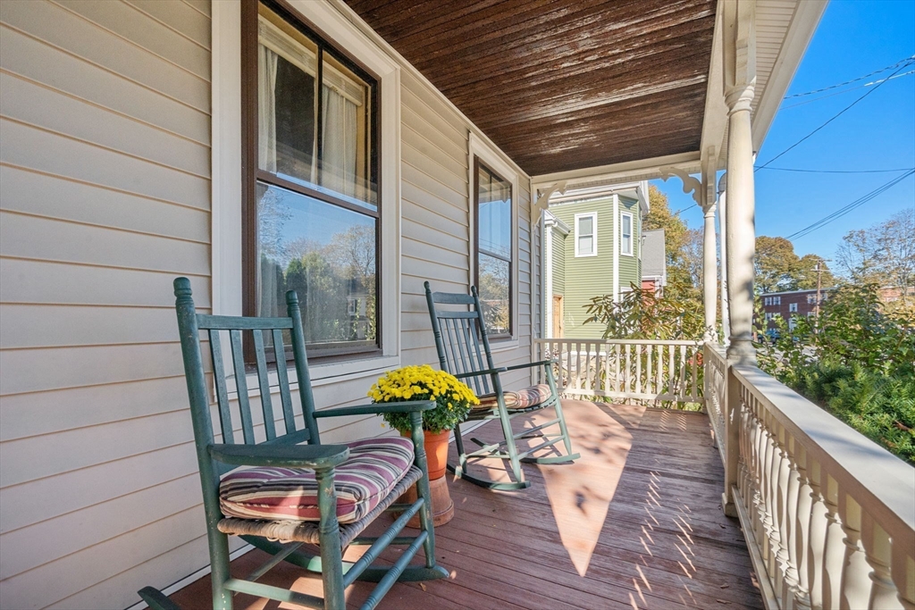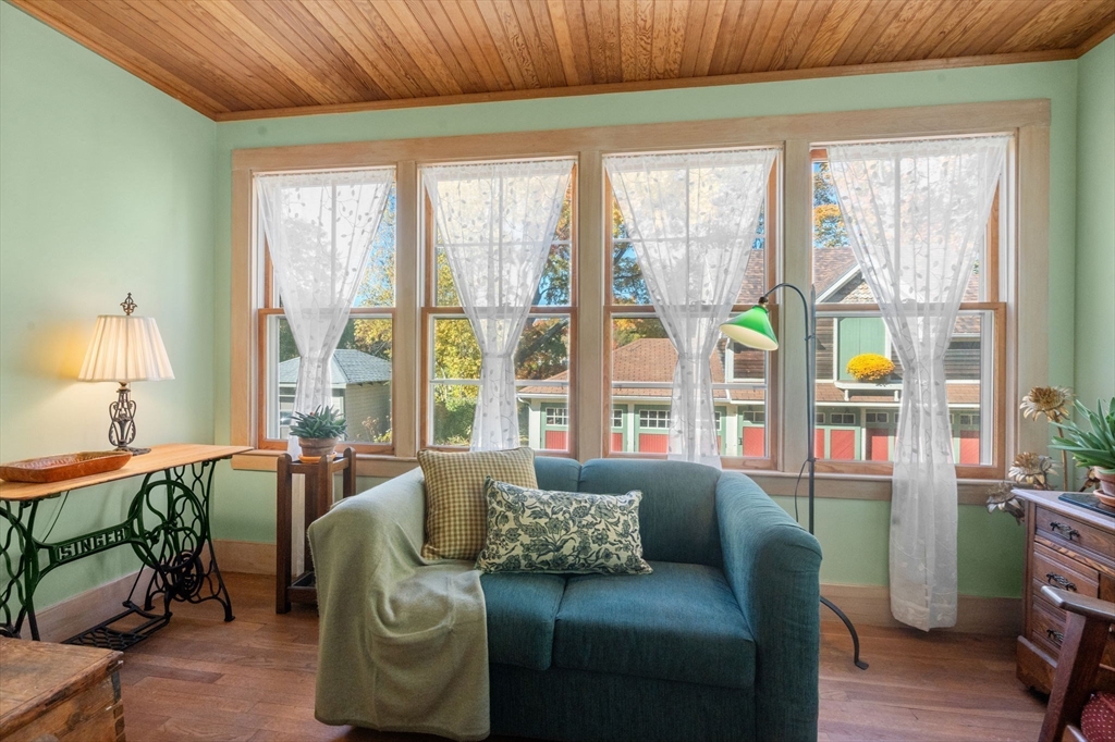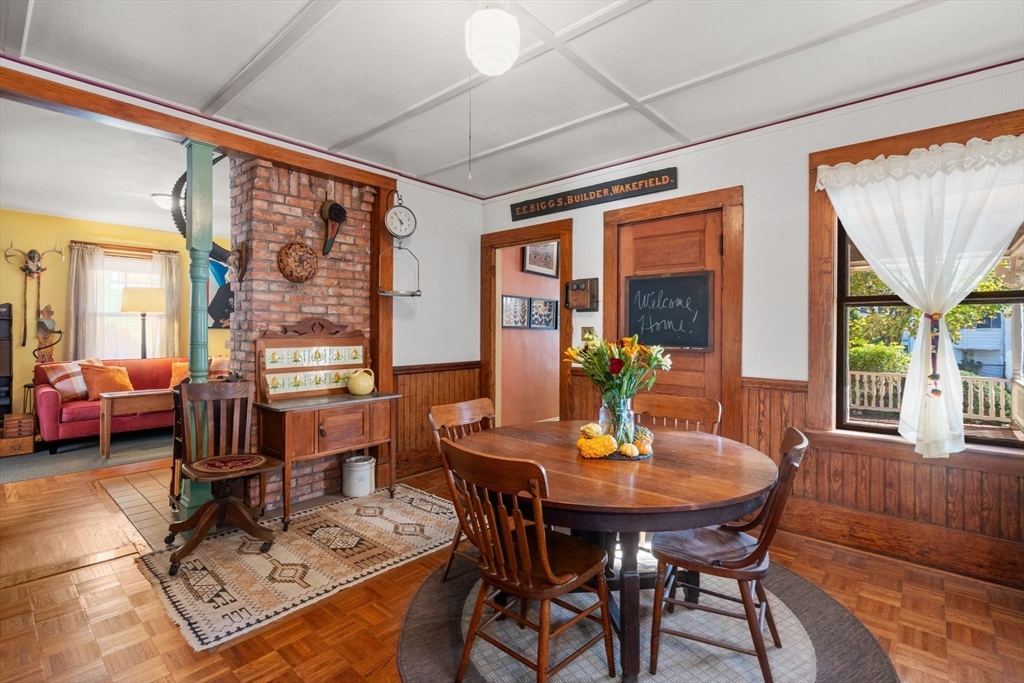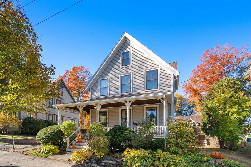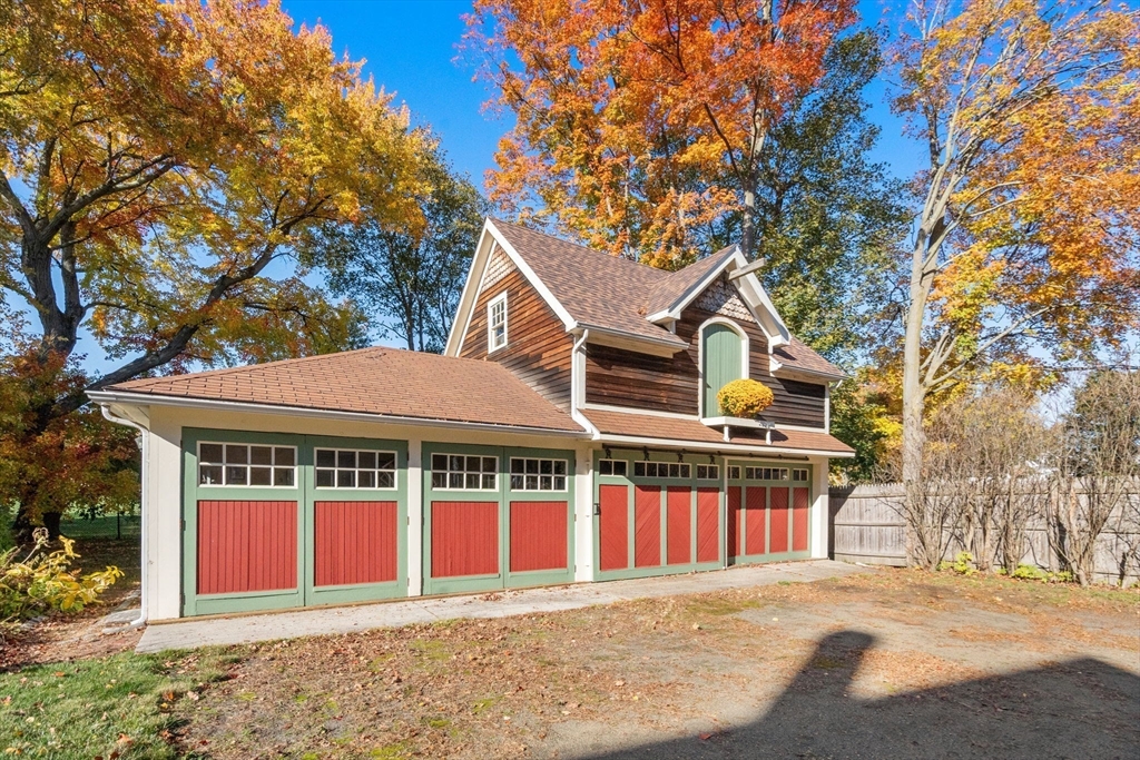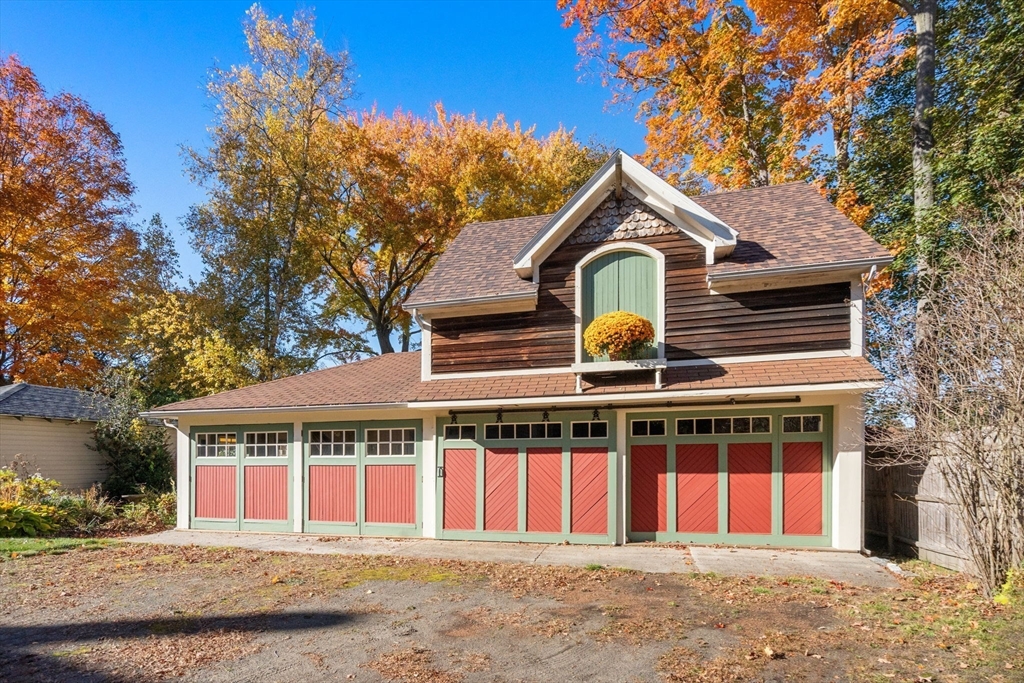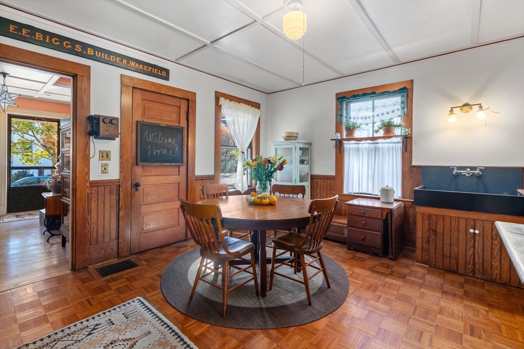 Gorgeous colonial farmhouse in Wakefield's desirable West Side. If you're looking for charm and character, this house has it, starting with the fabulous wrap-around porch! Eat-in kitchen features a soapstone sink and convenient adjacent mudroom. Gorgeous pocket doors with in-laid glass separate the large living room from the cozy den featuring a gas stove for snuggling up on those cold winter nights. French doors lead to a sunroom that makes a perfect reading nook, overlooking the lovely carriage house out back. Upstairs showcases three large bedrooms and a quaint bathroom featuring an antique sink and clawfoot tub. Hardwood floors throughout. Walk-up attic offers additional storage, as does the walk-out basement with charming root cellar. Stunning carriage house offers room for a two car garage and features an adjacent workshop with propane heat. And the second floor offers even more storage! Conveniently located less than a half mile from the commuter rail and Wakefield center.