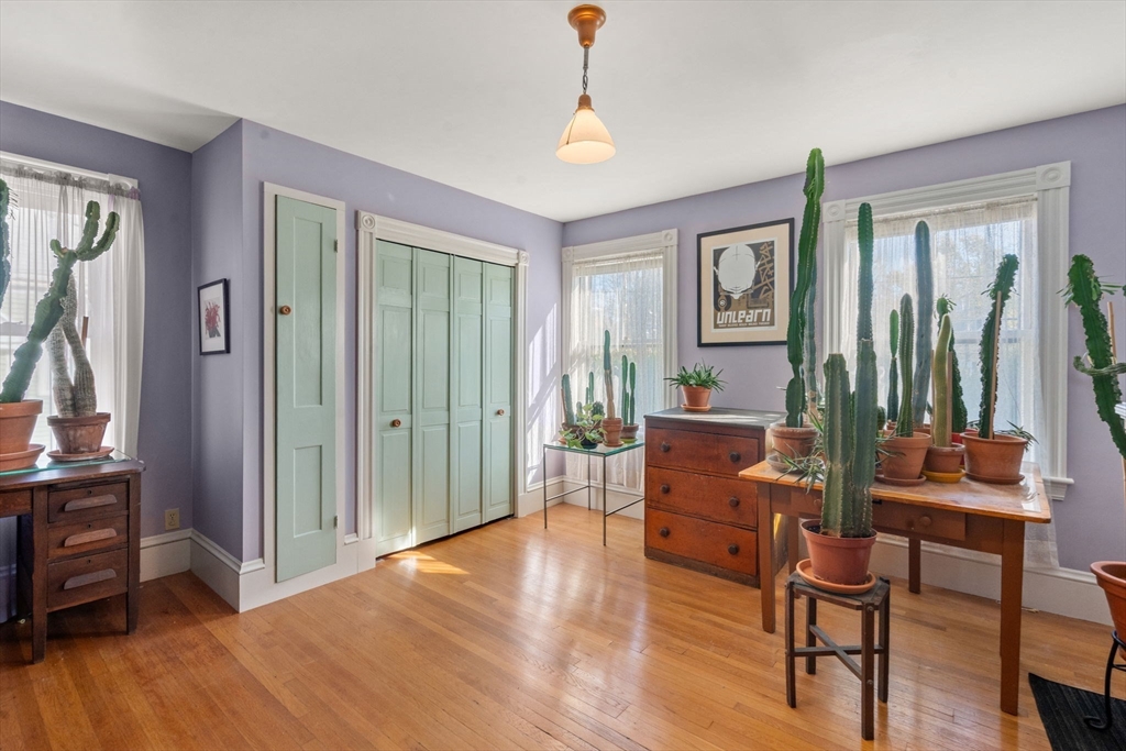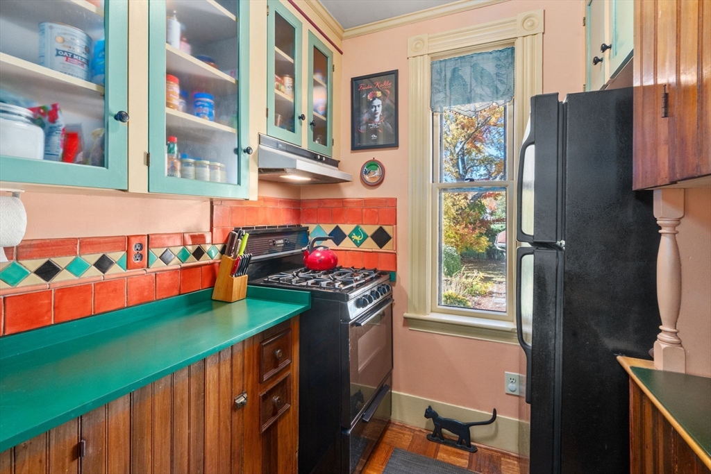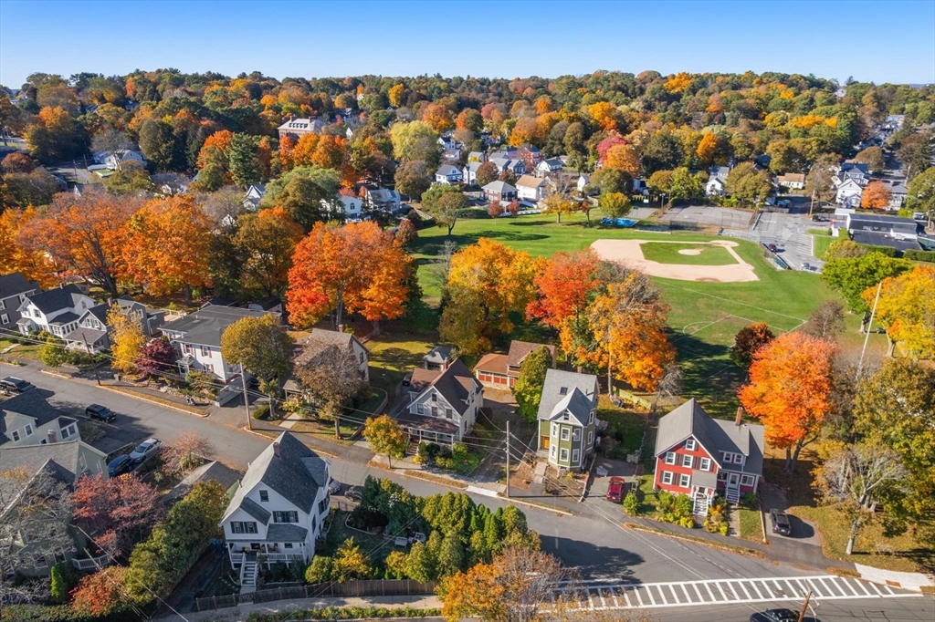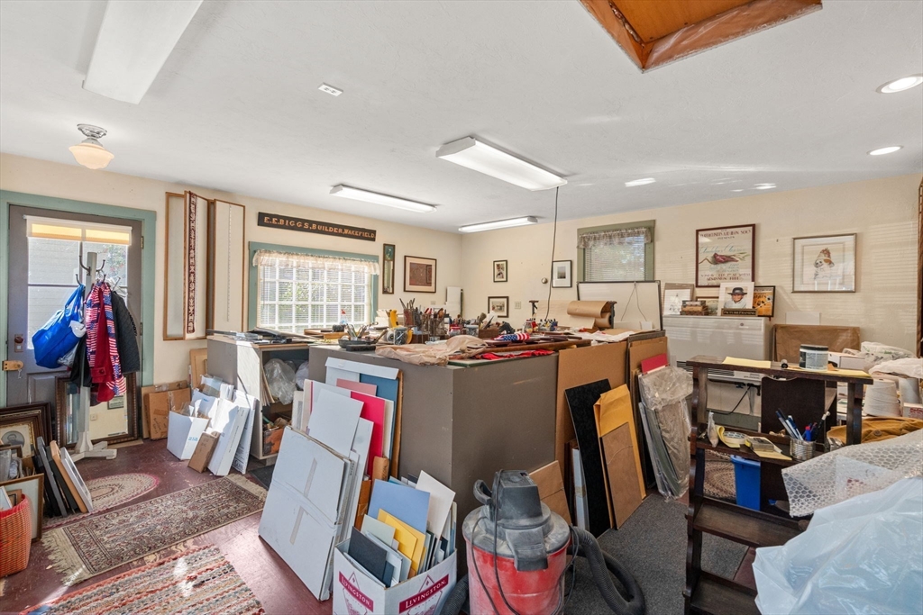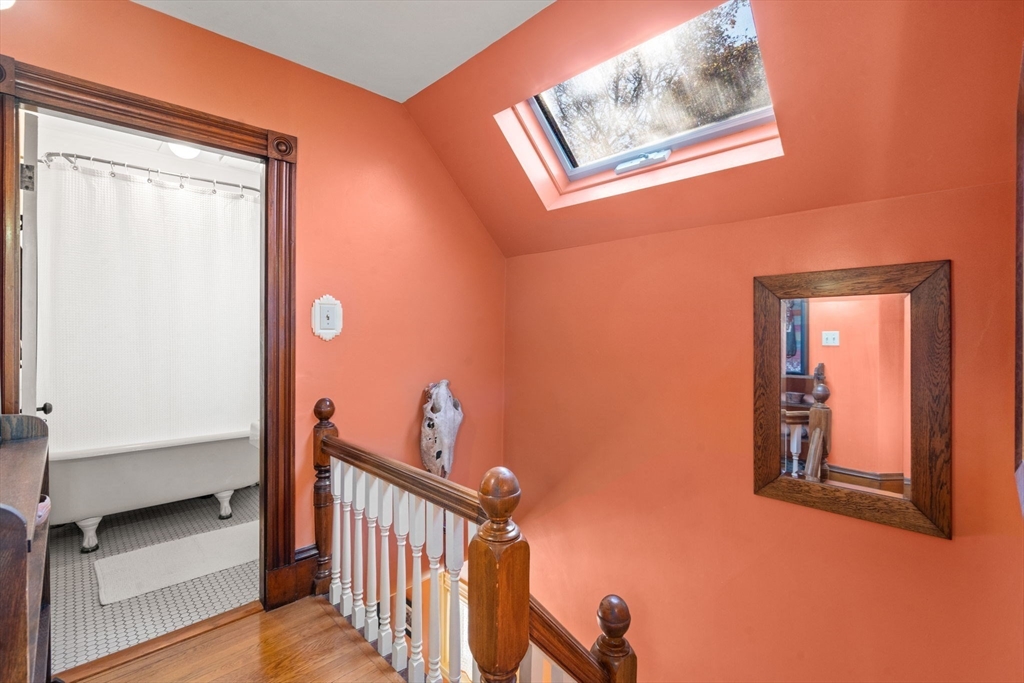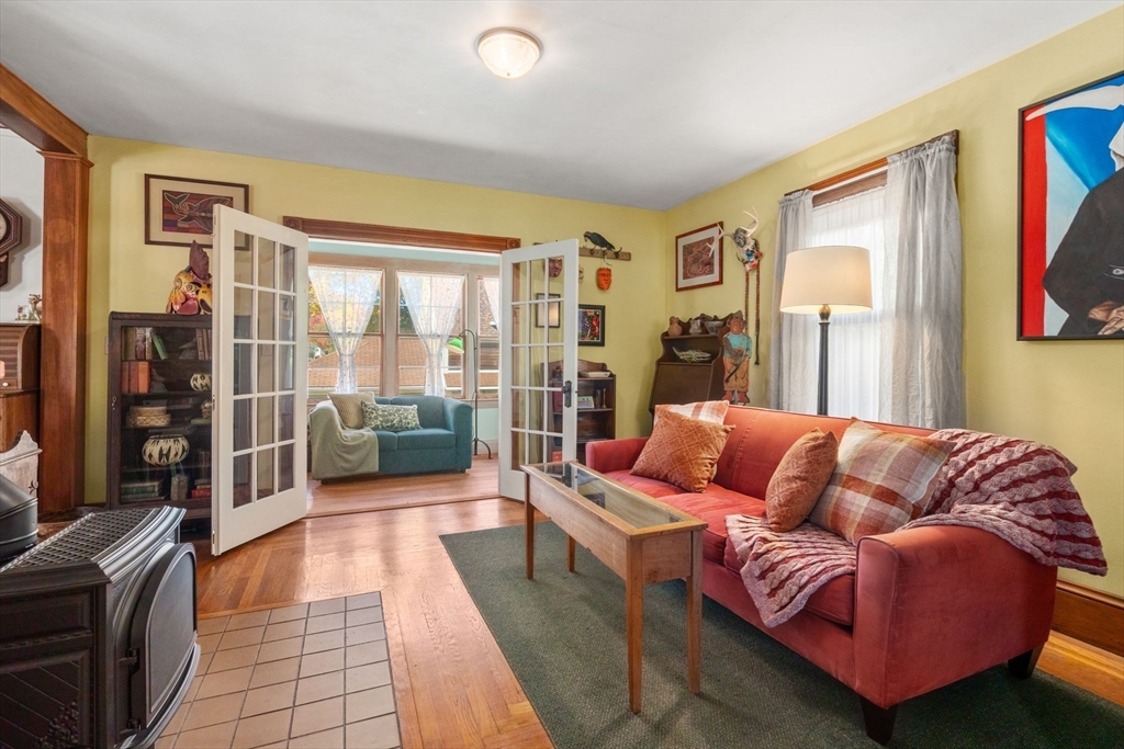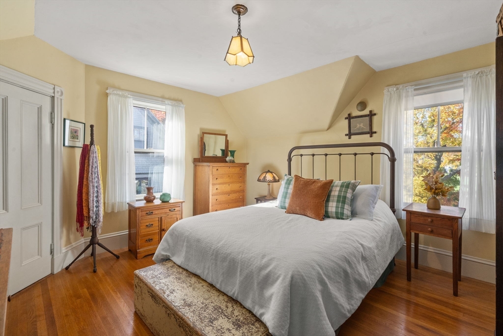 Gorgeous colonial farmhouse in Wakefield's desirable West Side. If you're looking for charm and character, this house has it, starting with the fabulous wrap-around porch! Eat-in kitchen features a soapstone sink and convenient adjacent mudroom. Gorgeous pocket doors with in-laid glass separate the large living room from the cozy den featuring a gas stove for snuggling up on those cold winter nights. French doors lead to a sunroom that makes a perfect reading nook, overlooking the lovely carriage house out back. Upstairs showcases three large bedrooms and a quaint bathroom featuring an antique sink and clawfoot tub. Hardwood floors throughout. Walk-up attic offers additional storage, as does the walk-out basement with charming root cellar. Stunning carriage house offers room for a two car garage and features an adjacent workshop with propane heat. And the second floor offers even more storage! Conveniently located less than a half mile from the commuter rail and Wakefield center.