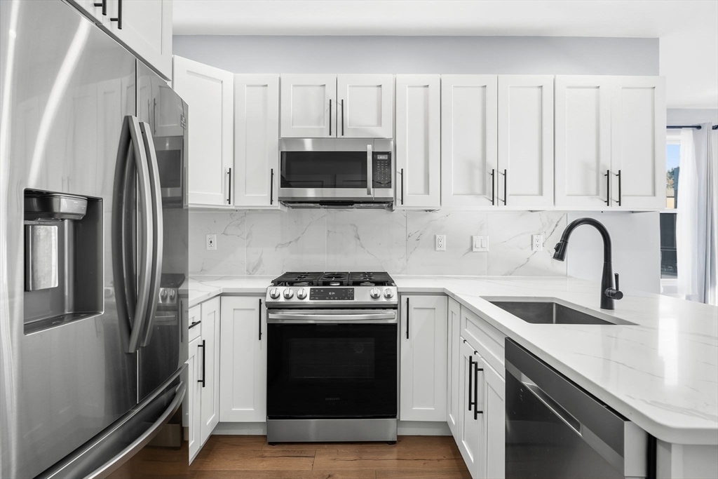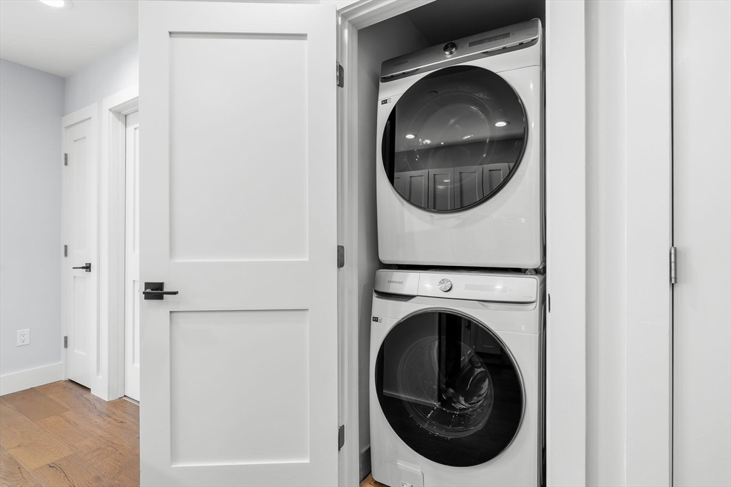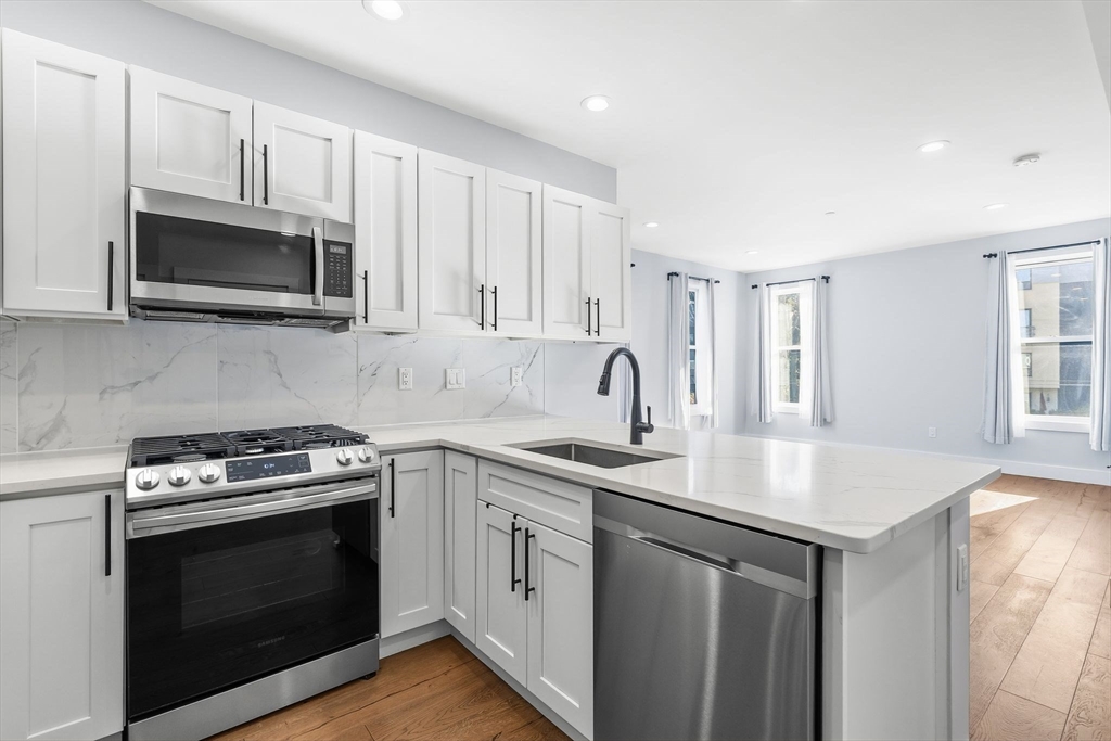 Brilliant top floor, 1 bed condo built in 2020 has direct elevator access into the unit! A spacious entrance foyer greets you, which could double as a home office area. Down the hallway is a well-appointed kitchen highlighted by white shaker cabinets, S/S Samsung appliances, & quartz counters w/ peninsula seating. The open floor plan encompasses a sun-filled, oversized living room that leads to a spacious bedroom w/ ample closet storage. Enjoy a spa-like bathroom featuring quartz tiled shower with glass doors. Amenities include in-unit laundry, central A/C & garage parking w/ one exclusive use space. Self-managed HOA with high owner occupancy is pet friendly!! Common patio in the rear of the building is perfect for enjoying a drink or grilling. Easy walk to Forest Hills for the Orange Line T or Commuter Rail, plus access to abundant nature at the stunning Arnold Arboretum via the Blackwell Footpath, just across from the station. Walk, run or ride to the Southwest Corridor!!