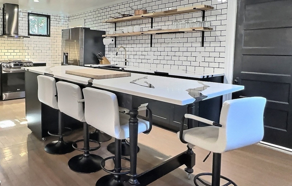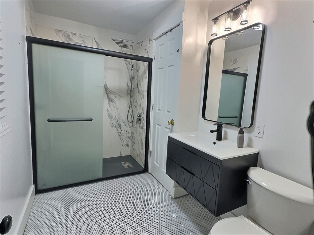 Experience the perfect marriage of vintage charm and modern luxury in this turn-key farmhouse colonial in a prime location near the heart of Rockland Center, shopping, restaurants, commuter rail, south shore hospital and highway. Completely renovated contemporary gourmet kitchen with beatiful white and black stone countertops, double sink, expansive rolling island with six posh-swiveling-high top chairs (included in sale), wall mounted folding cutting board, double fridge w/ water/ice-maker, along with a walk-in 8x10 pantry. ALL NEW: electrical and plumbing all the way to the street; roof, hot water heater, baseboard heat. Both bathrooms completely renovated with main bath having a luxury spa-like sauna/steam shower. Spacious backyard with 2 sheds, patio, firepit and outdoor bar. Imagine hosting unforgettable gatherings around the expansive island in your new chef's kitchen, or spending summer evenings on the patio enjoying the spacious backyard. Welcome to 436 E Water St!