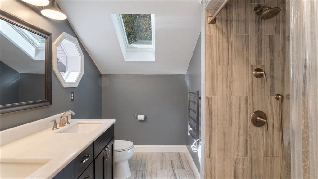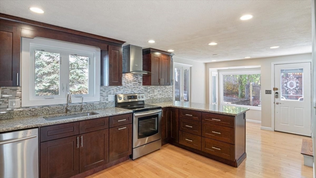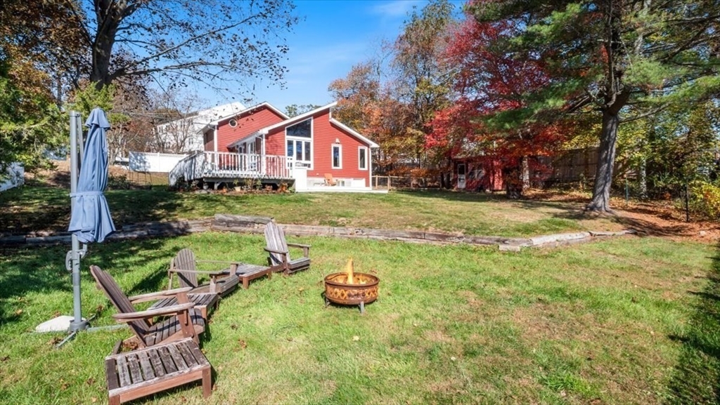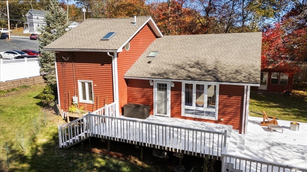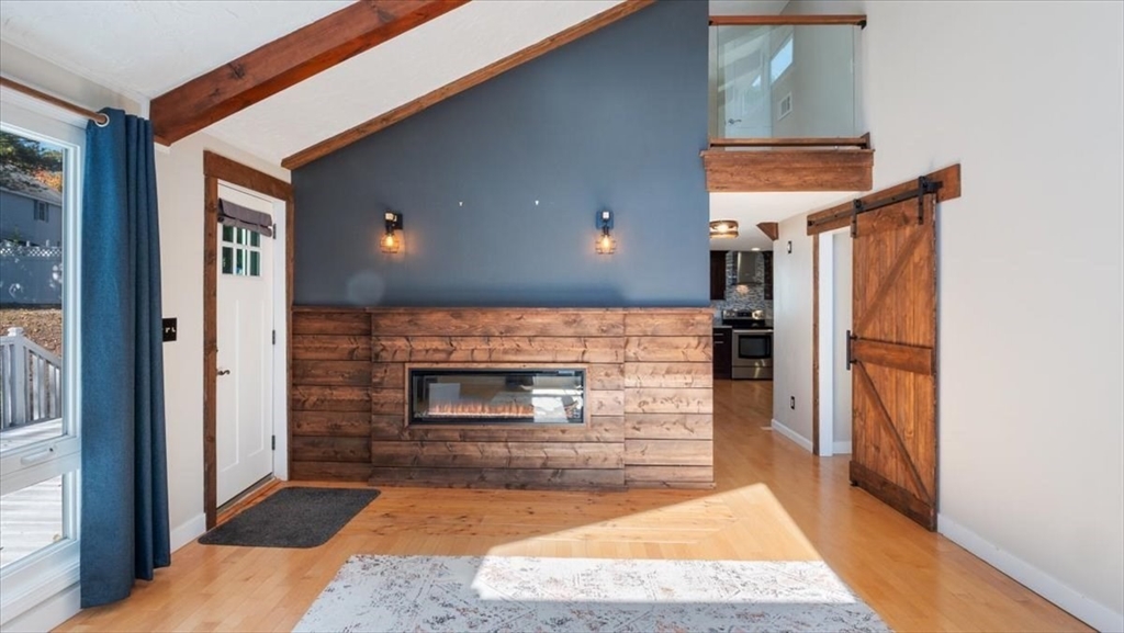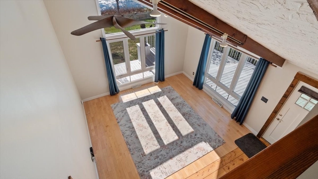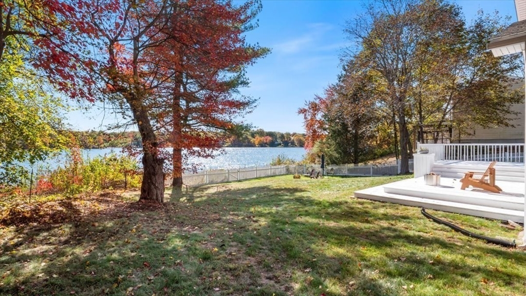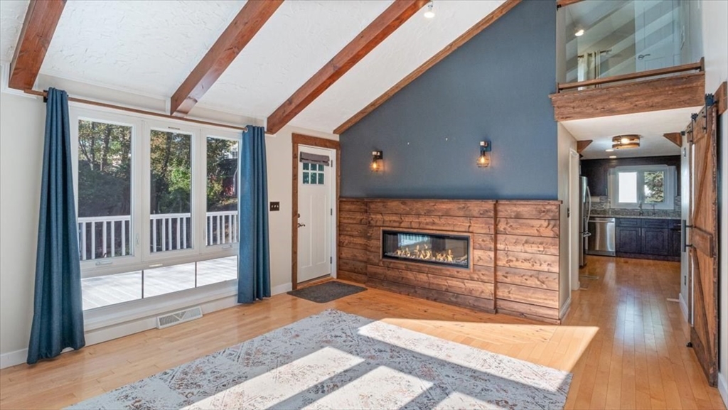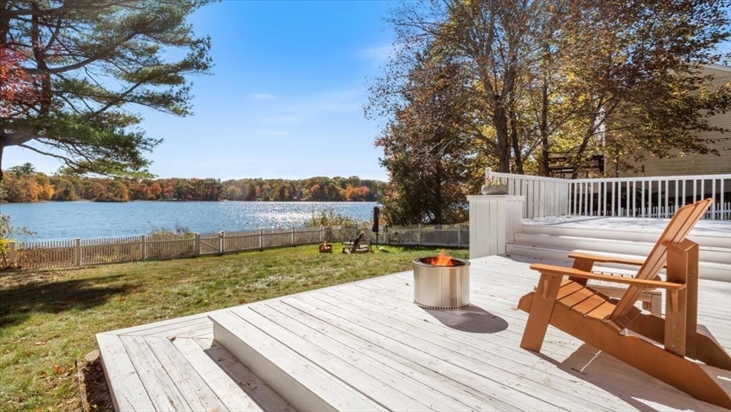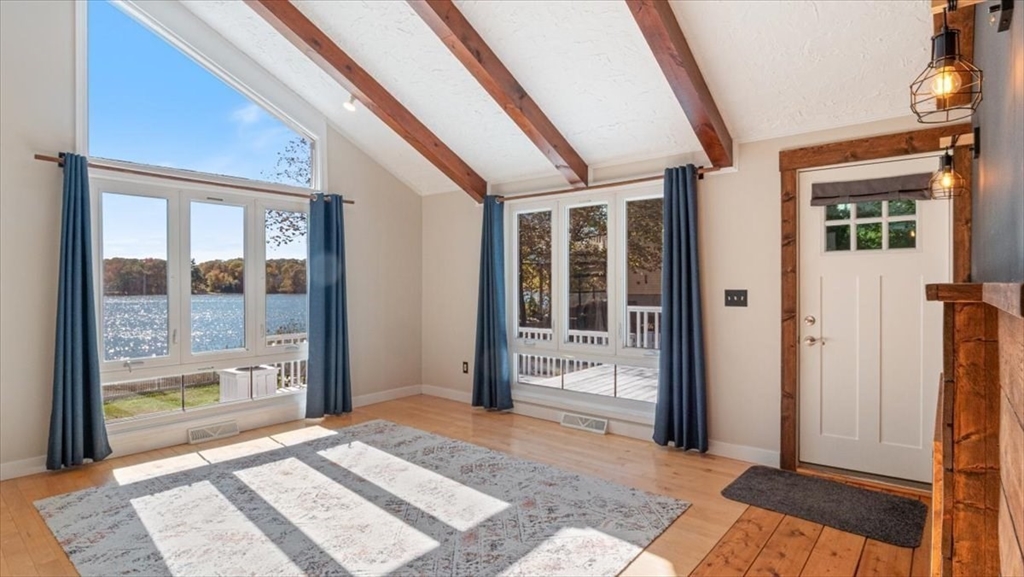 Wake up every day to peace and panoramic lake views at this beautifully upgraded 3-bed, 2-bath waterfront home on Lake Nutting. With nearly 2,000 sq. ft. of living space, this home was designed to blend comfort, style, and the serenity of the outdoors. The kitchen is a showpiece — cherry cabinets, granite countertops, and stainless-steel appliances. Both baths are fully updated and feature skylights that pour in natural light. The family room will take your breath away with its vaulted ceilings, wall of windows overlooking the water, and a sleek electric fireplace — a true centerpiece for relaxing or entertaining. Upstairs, the primary suite includes a Juliet balcony with a stunning view of the lake and the room below. Hardwood floors run throughout, central air keeps things cool, and there’s even a backup generator for peace of mind. Step outside to a fenced yard and a two-tier deck that feels like your own private getaway — perfect for morning coffee or evening sunsets over the lake.