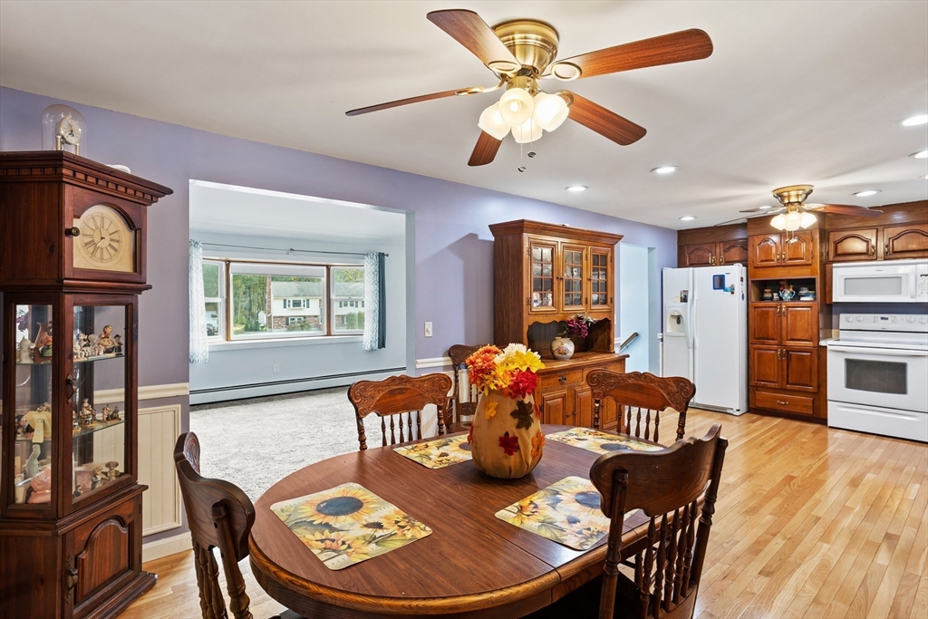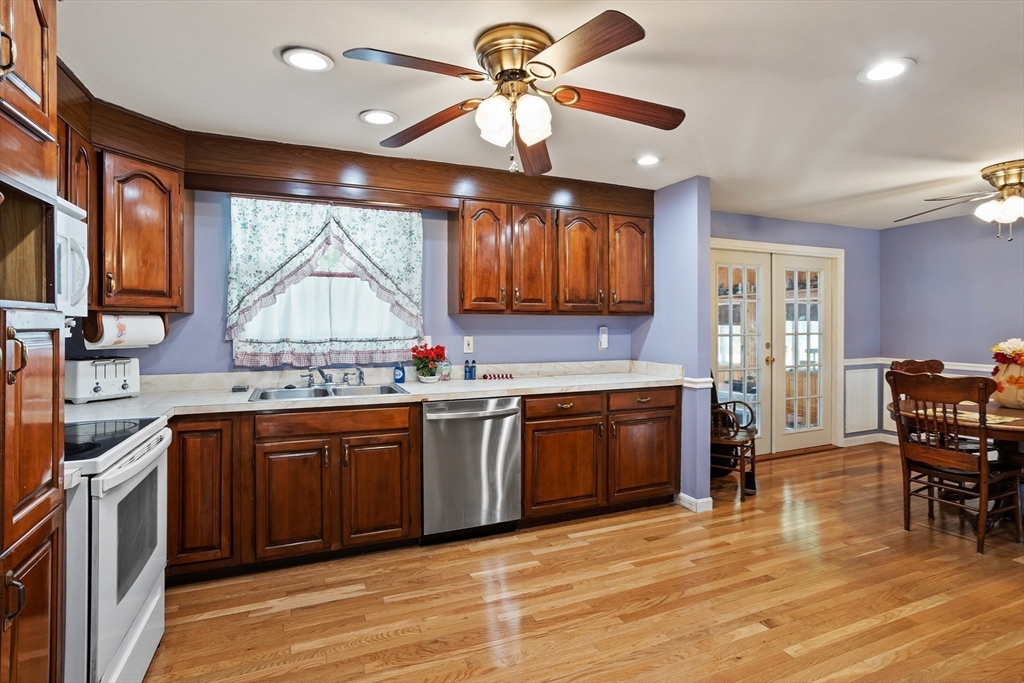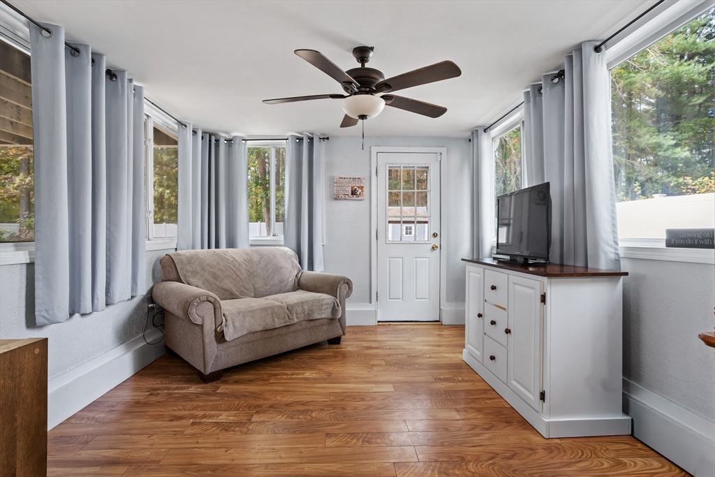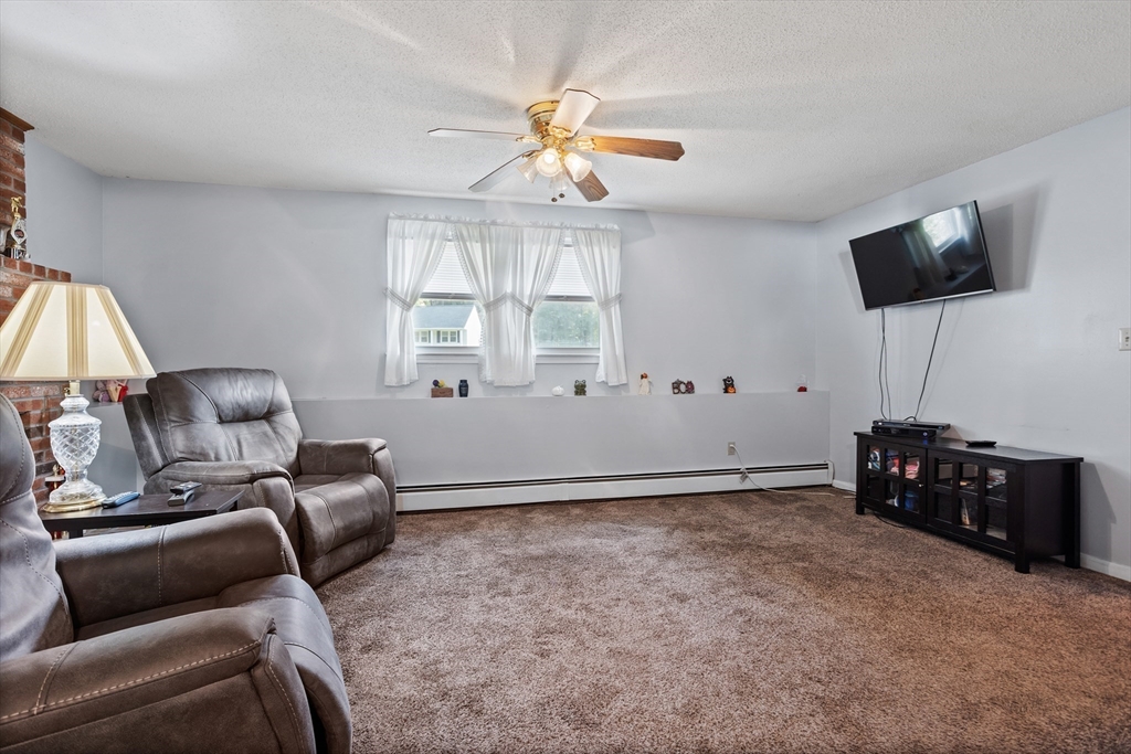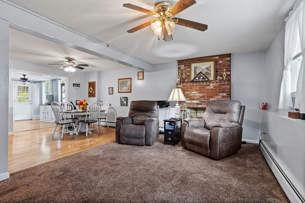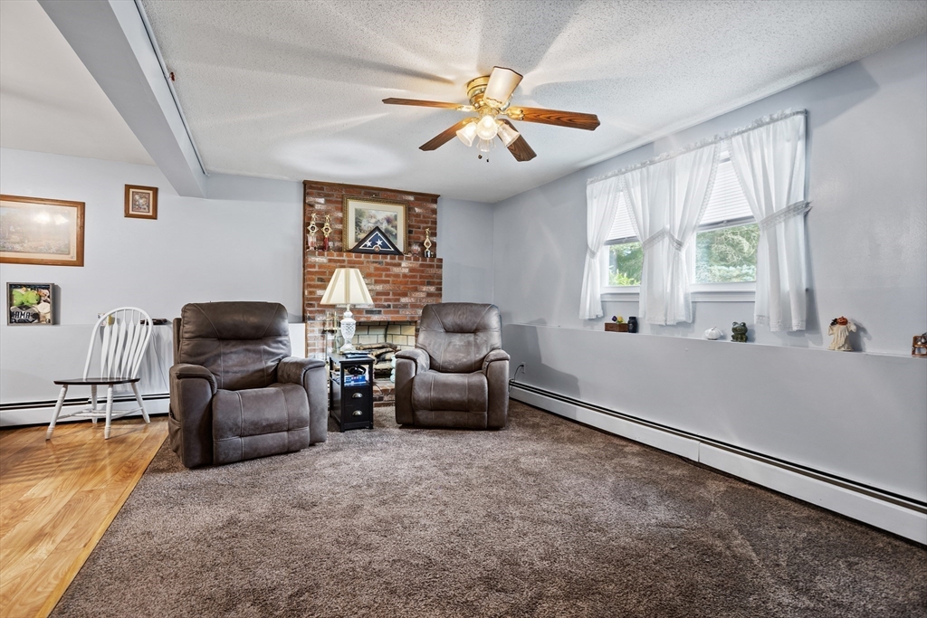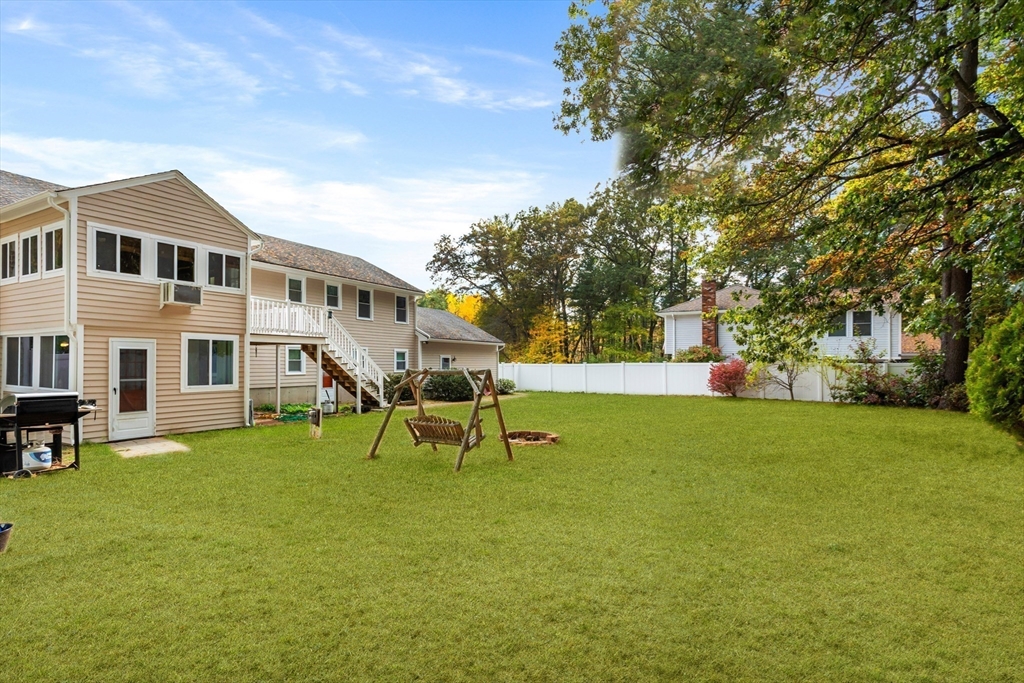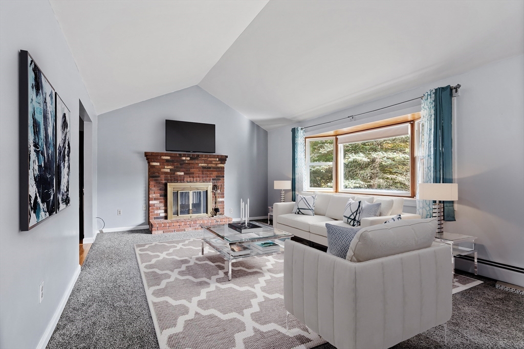 Welcome to 101 Squire Lane, a beautifully expanded raised ranch tucked away on a quiet cul-de-sac in one of the area’s most desirable neighborhoods. Step inside to a bright, spacious living room with soaring cathedral ceilings and a cozy fireplace, the perfect spot to relax or gather with loved ones. The open layout flows easily into a large kitchen with plenty of cabinetry and a welcoming dining area, while a charming three-season sunroom offers a peaceful space to entertain or unwind with views of the surrounding nature. Down the hall, a full bathroom and three bedrooms provide privacy and ease. The lower level expands your living space with another inviting family room and decorative fireplace, plus two additional rooms and a full bath, ideal for a potential in-law suite, home office, or guest quarters. A walkout basement leads to the private fenced backyard, and the home’s 0.46-acre lot abuts conservation land. Easy access to Routes 495 and 93.