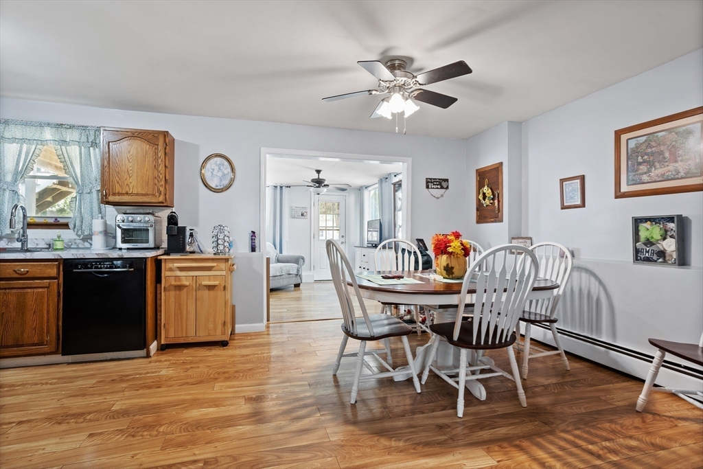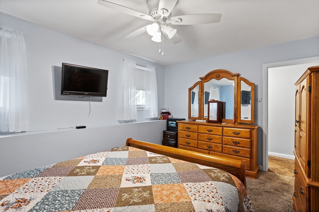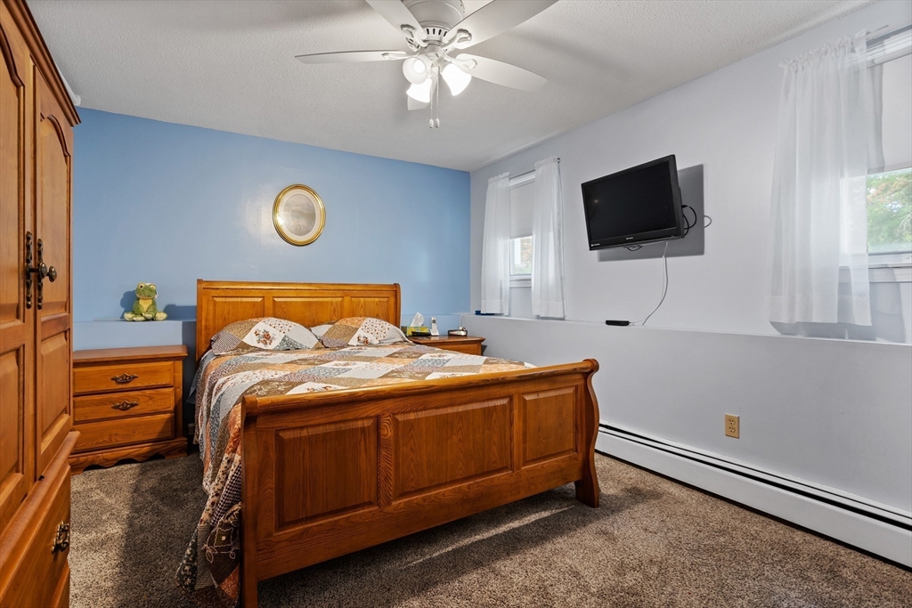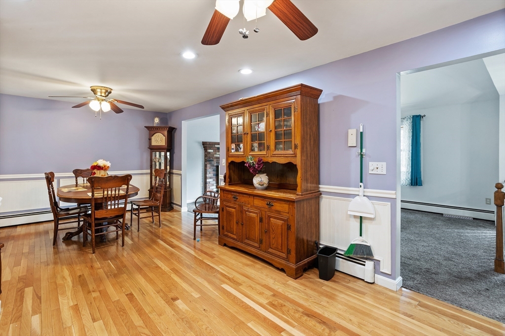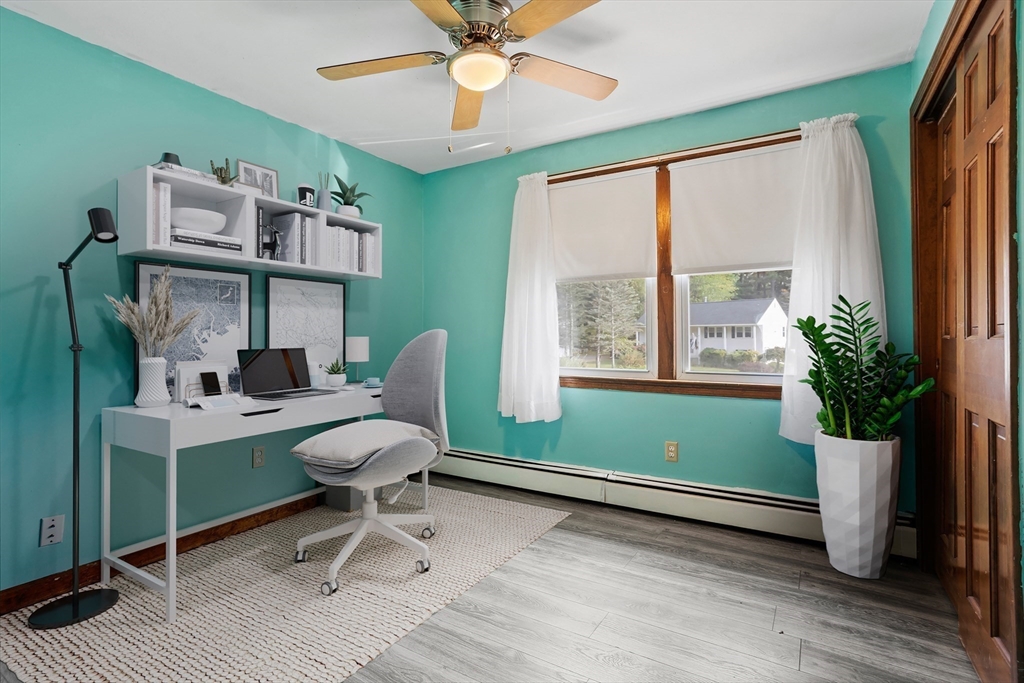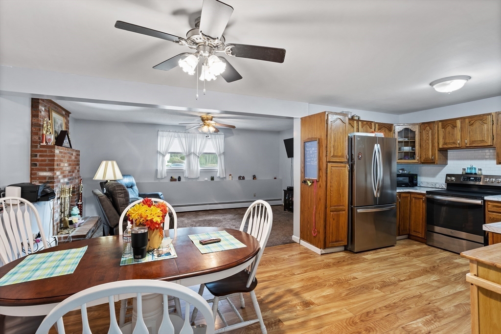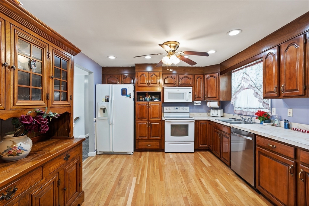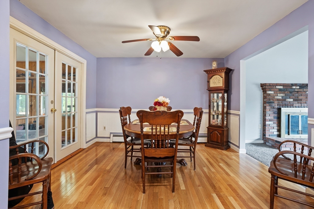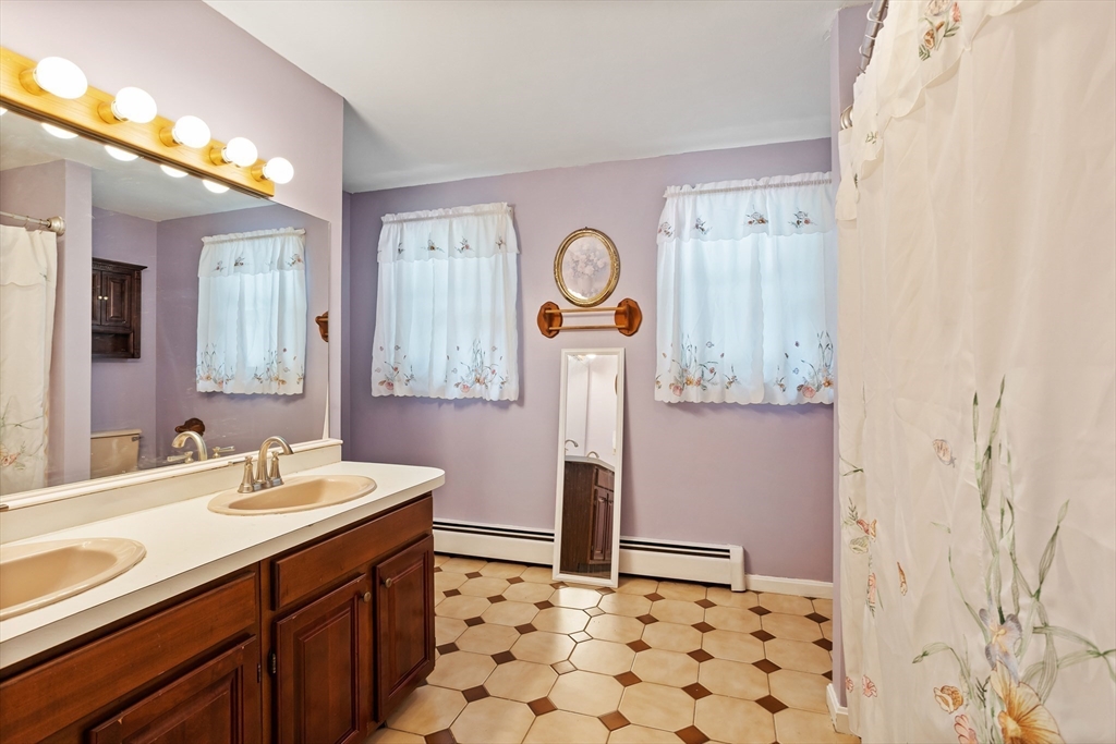 Welcome to 101 Squire Lane, a beautifully expanded raised ranch tucked away on a quiet cul-de-sac in one of the area’s most desirable neighborhoods. Step inside to a bright, spacious living room with soaring cathedral ceilings and a cozy fireplace, the perfect spot to relax or gather with loved ones. The open layout flows easily into a large kitchen with plenty of cabinetry and a welcoming dining area, while a charming three-season sunroom offers a peaceful space to entertain or unwind with views of the surrounding nature. Down the hall, a full bathroom and three bedrooms provide privacy and ease. The lower level expands your living space with another inviting family room and decorative fireplace, plus two additional rooms and a full bath, ideal for a potential in-law suite, home office, or guest quarters. A walkout basement leads to the private fenced backyard, and the home’s 0.46-acre lot abuts conservation land. Easy access to Routes 495 and 93.