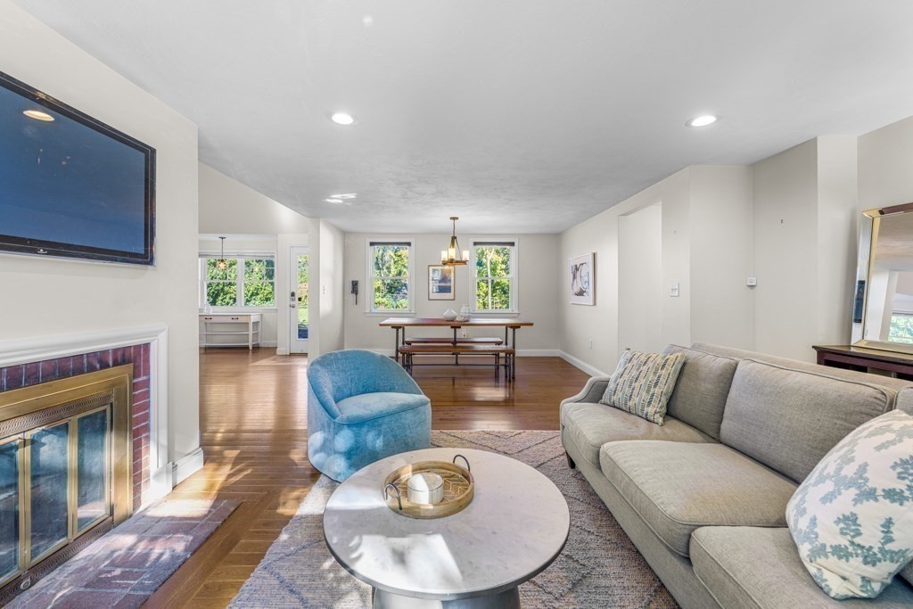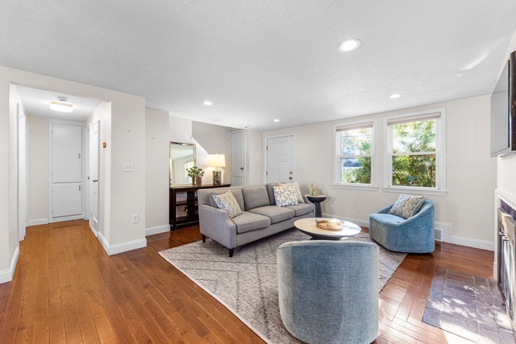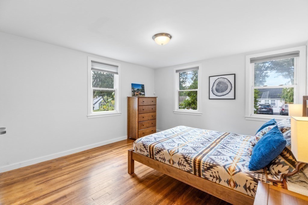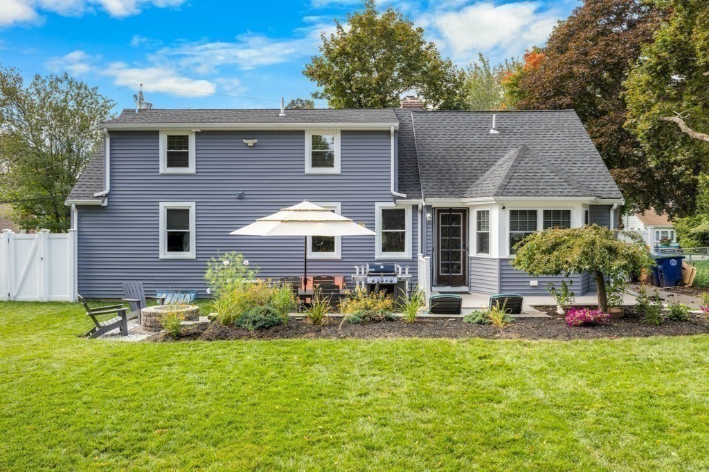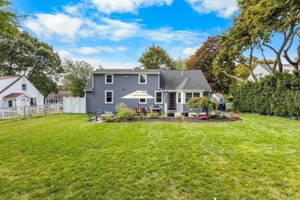 Just move in and be home for the holidays! This turn key expanded cape is designed for today's modern living. Entertaining and every day living is a breeze in the open flow first floor. The vaulted ceiling kitchen features a center island with counter seating, ample upgraded cabinetry and newer stainless appliances. The living room blends seamlessly into the dining area and is large enough for hosting your next gathering. Four bedrooms offer versatility with two positioned on the main level and a sizable primary and secondary bedroom on the second level. Relax in your spacious primary bedroom big enough for a king size bed with custom double sided walk-in closet and sliding barn door. Both full baths are updated and feature ceramic tile with modern fixtures. Outdoors you'll find a manicured fully fenced yard with sizable patio and firepit. Central Air and side street/excellent commuter location completes the package. Make a visit to Lawnview this weekend!