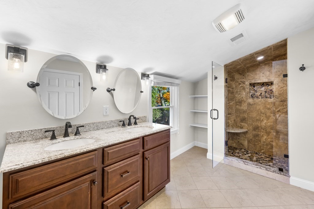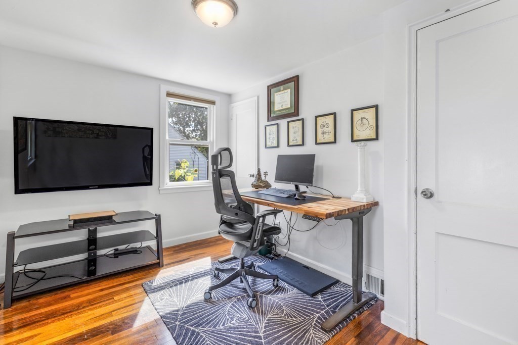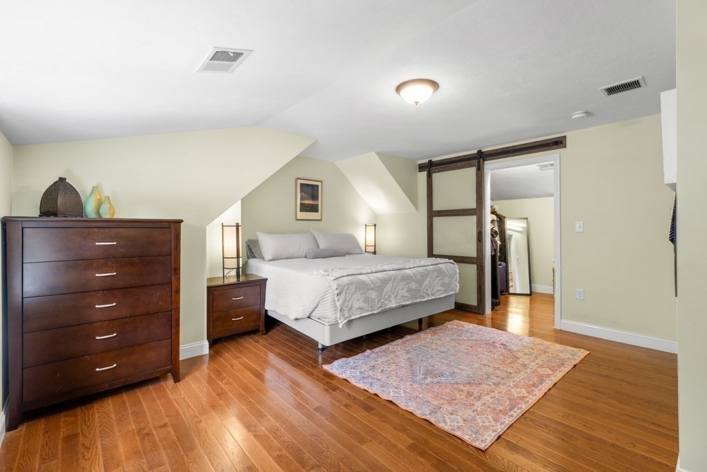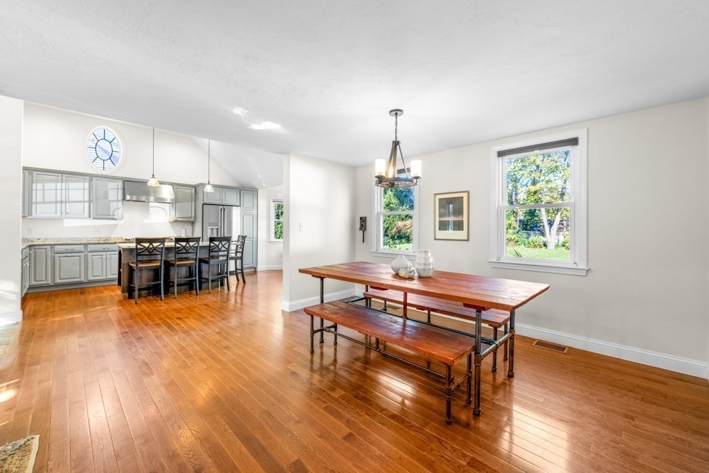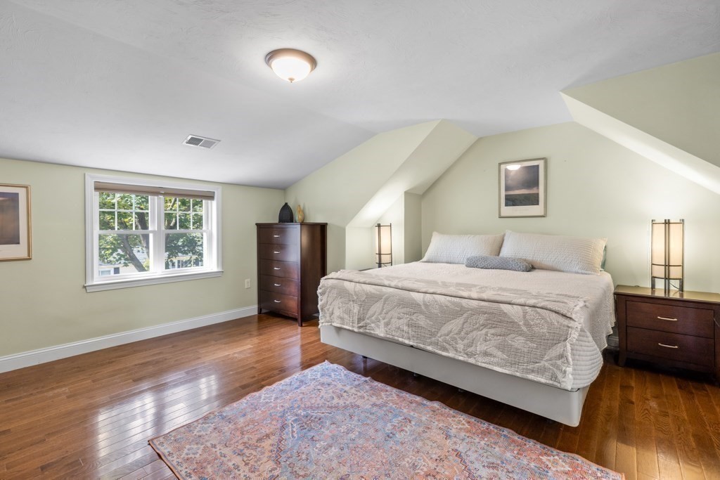 Just move in and be home for the holidays! This turn key expanded cape is designed for today's modern living. Entertaining and every day living is a breeze in the open flow first floor. The vaulted ceiling kitchen features a center island with counter seating, ample upgraded cabinetry and newer stainless appliances. The living room blends seamlessly into the dining area and is large enough for hosting your next gathering. Four bedrooms offer versatility with two positioned on the main level and a sizable primary and secondary bedroom on the second level. Relax in your spacious primary bedroom big enough for a king size bed with custom double sided walk-in closet and sliding barn door. Both full baths are updated and feature ceramic tile with modern fixtures. Outdoors you'll find a manicured fully fenced yard with sizable patio and firepit. Central Air and side street/excellent commuter location completes the package. Make a visit to Lawnview this weekend!