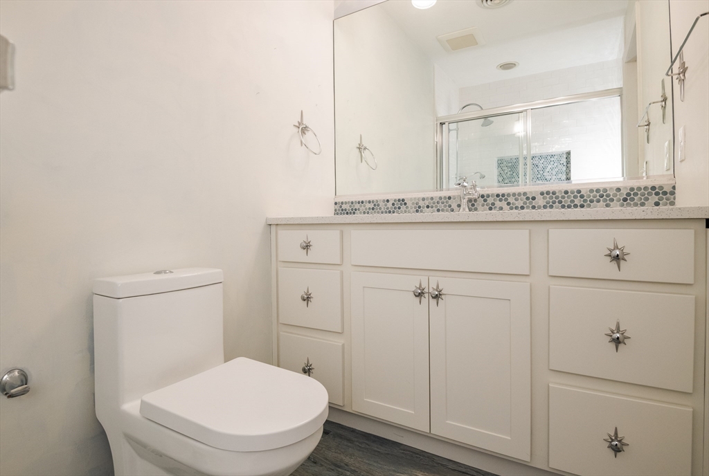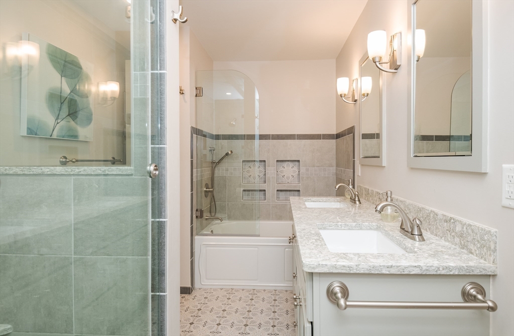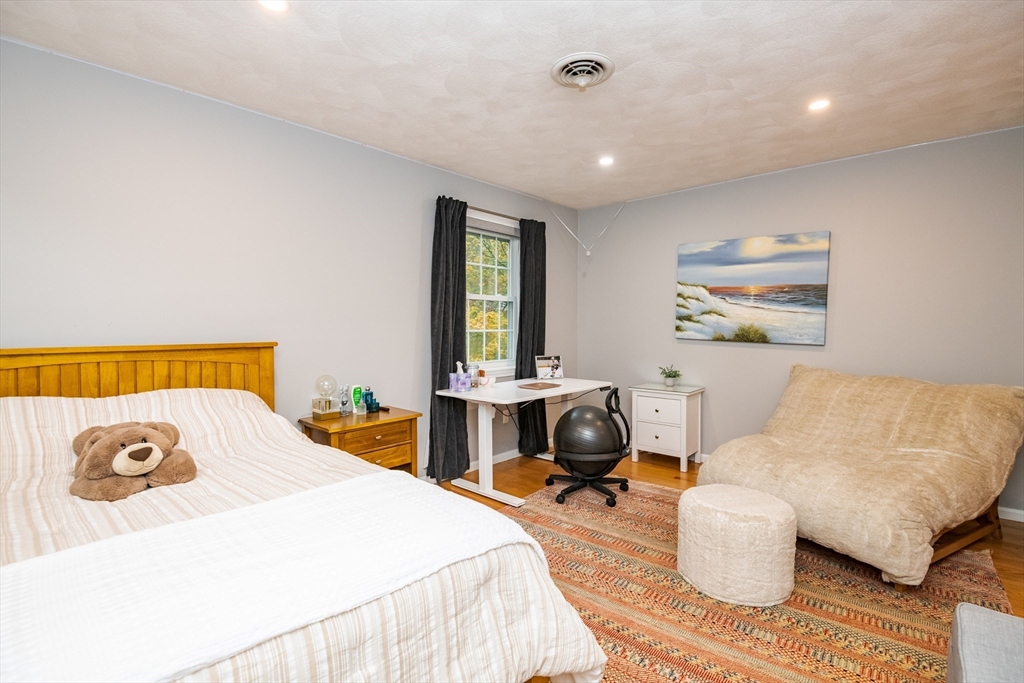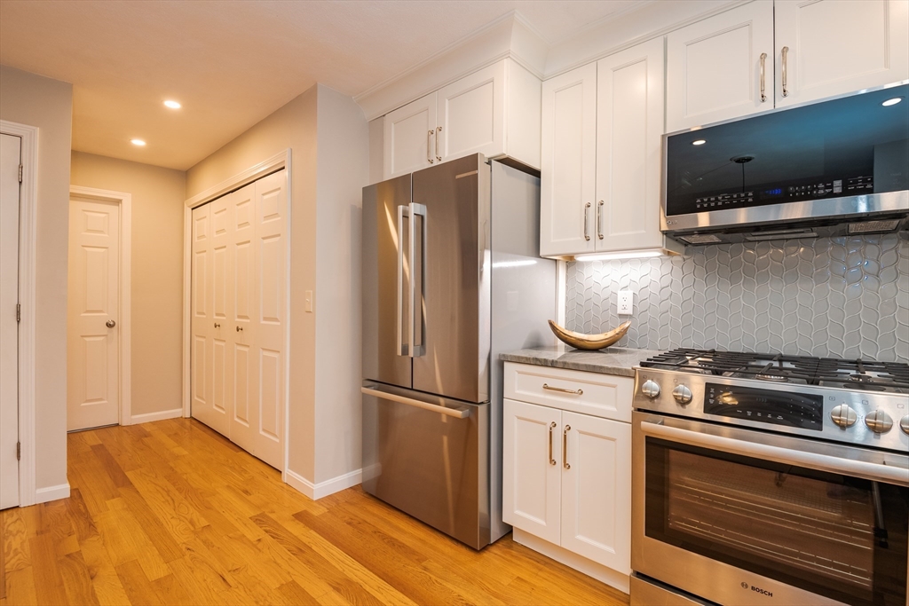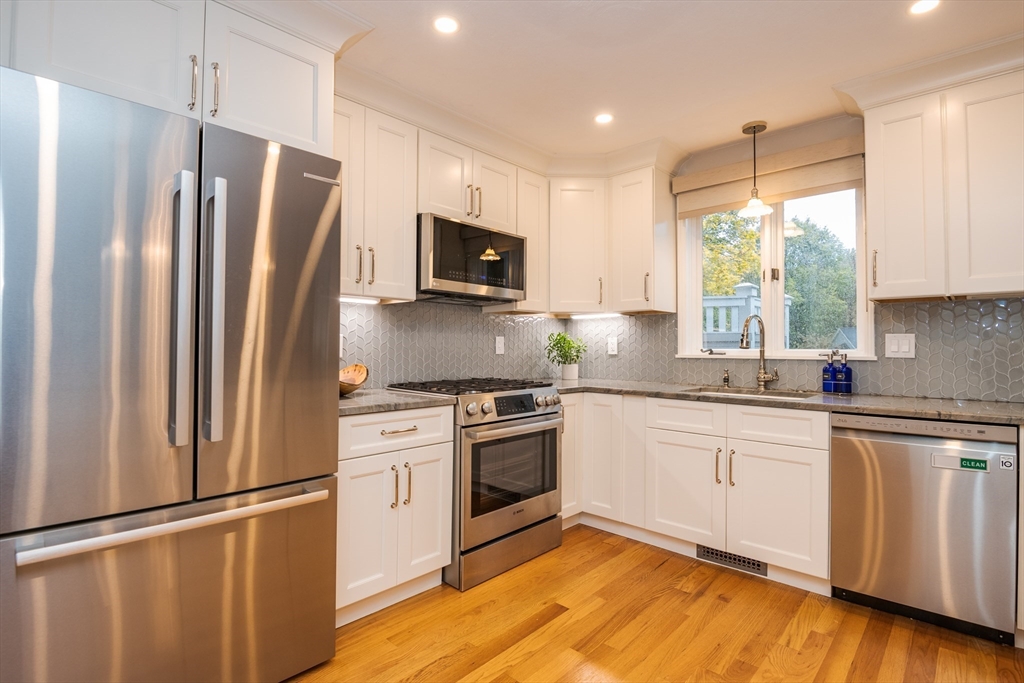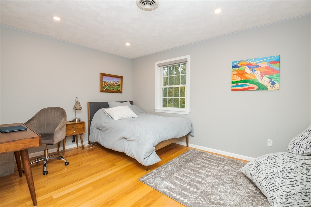 Rare, special, luxury living, absolutely ZERO to update, MOVE-IN and ready to ENJOY! Peaceful Three Season SunRoom allows for a vacation sanctuary in the home. Bright and sunny home was completely renovated and re-imagined with classical and modern selections in the past few years. All H/W floors throughout both levels. NEW in 2025: White Gas Kitchen equipped with Quartzite countertops, peninsula island seats 4 w/extra cabinet storage, pantry closet, custom pendant lighting, under cabinet lighting, Bosch and LG SS Appliances. Conveniently located on the Lexington line in Bedford. Expanded open concept main level includes a sought after and unusual 1st Floor Primary Suite that boasts of a walk-in closet with custom built-ins, an extra closet, and an en-suite remodeled full bathroom! Home office area located in a lofted open area. NEW finished lower level for family room, recreation, and exercise areas.Lots of Storage!12miles from Boston, Minutes to highways (Rte 95/128 &Rte 3)&shopping!
