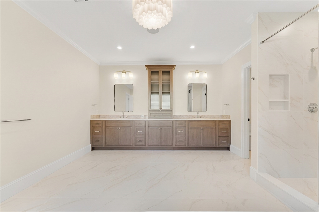 Perfectly positioned on one of Needham’s most prestigious addresses, this new construction masterpiece offers South Street prestige with the tranquility of a side-street setting. Spanning over 7K sq ft., the home features 6 beds, 7.5 baths and impeccable design throughout. The chef’s kitchen boasts top-of-the-line appliances, an oversized island and a working station pantry that opens to a family room overlooking the expansive, private yard. Set on a full acre, the property offers endless potential for a pool, sports court/outdoor living. A first-floor en suite bedroom, elegant dining room, and study complete the main level. Upstairs, the primary suite includes a spa-like bath and an enormous walk-in closet. The finished lower level provides flexible space for a gym, media room, or guest suite. With a 3-car garage, detailed millwork, and designer finishes, this home offers an unmatched blend of craftsmanship, sophistication, and location minutes from top rated schools and town center.