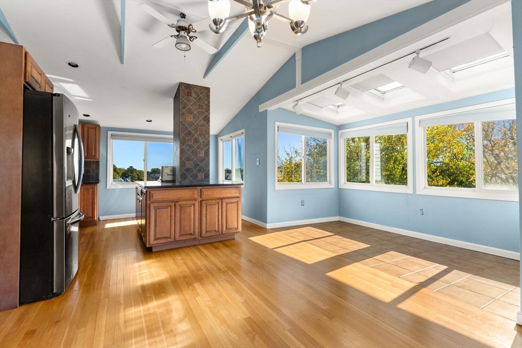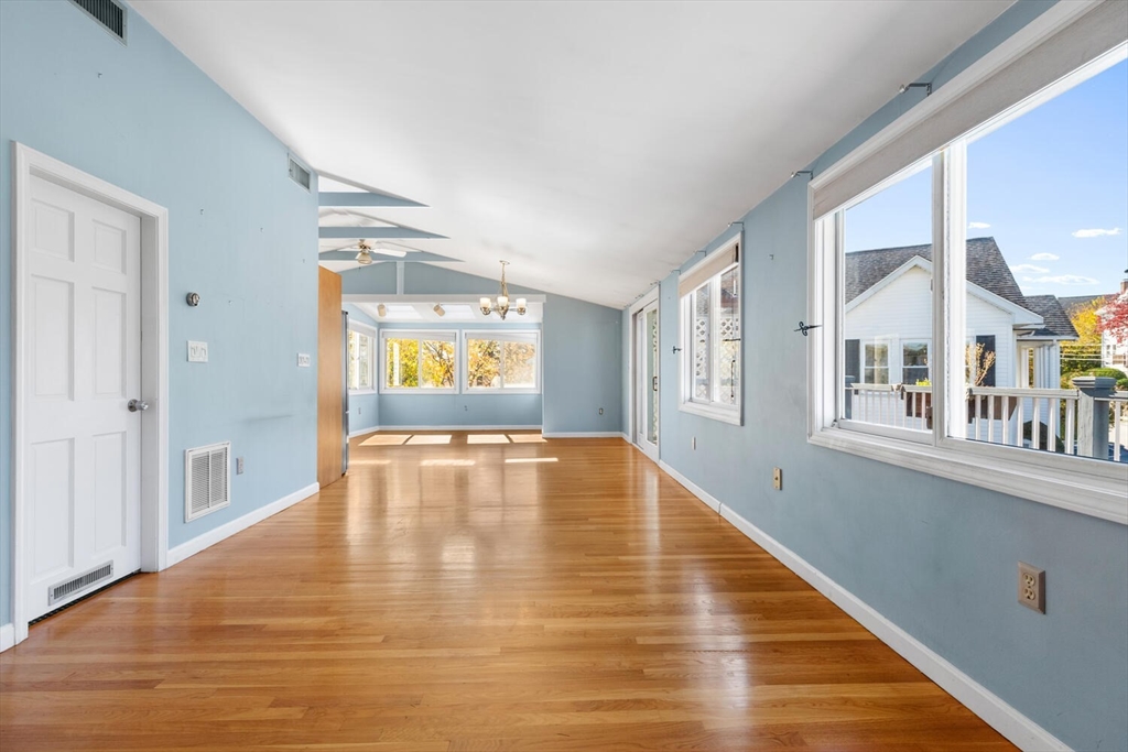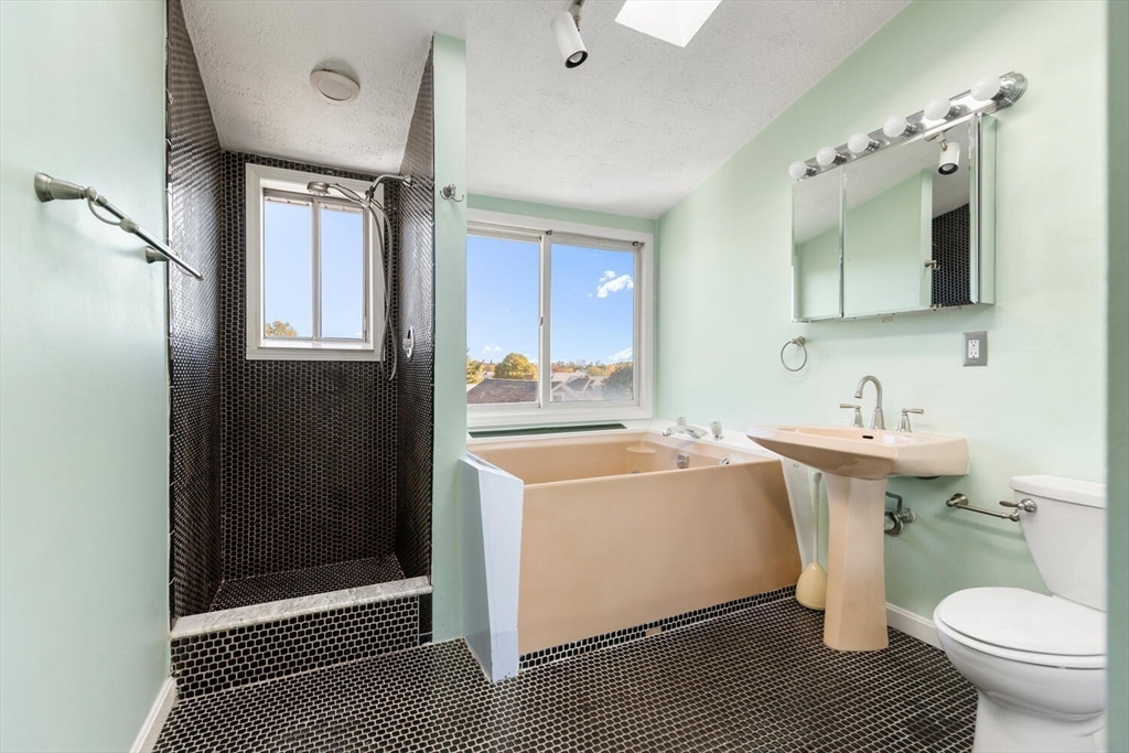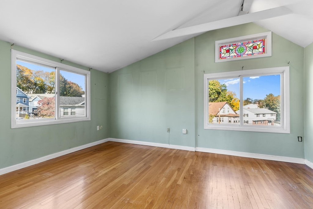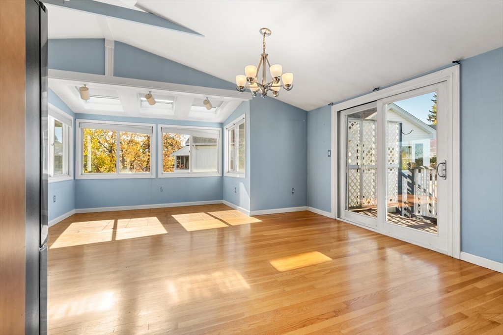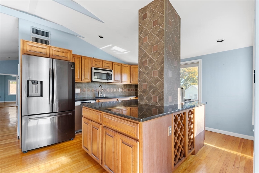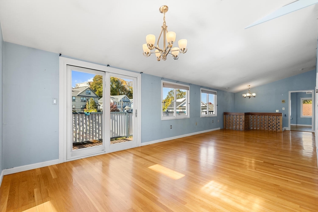 Amazing top floor spacious 2 Bedroom Condo located in the sought after East End of Watertown. This bright & sunny unit offers an open floor plan with large living room. Nice dining room with slider leading to a private deck. Full kitchen with cherry cabinets, granite counters & SS appliances. Separate breakfast area with an abundance of windows. Vaulted ceiling main bedroom with large closet. Generous size second bedroom. Bathroom with whirlpool tub and separate shower. Nice hardwood floors throughout, circuit breaker electric panel, central air & forced hot air. Bonus room on street level perfect for home office, studio or storage. Exclusive one car garage with an additional off-street parking space. Private outdoor yard. This home is just steps to the Central Sq & Harvard Sq bus line. Short stroll to the New Arsenal Yards, bike paths, parks, specialty shops & cafe's. Restaurants & shopping. Perfect opportunity to own your own home in bustling Watertown! Welcome to Watertown!