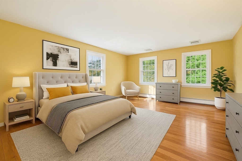 Offer deadline: Tuesday 11/4 @4PM. Nestled in the charming town of Millis, this beautiful single-family Colonial features 4 bedrooms, 3.5 baths, open floor plan, updated kitchen and baths, charming family room with skylight and wood fireplace, finished basement with bonus room, granite countertop wet bar, an office, and a full bathroom. Beaming hardwood floors. Lots of natural light. Ample storage plus attic and 2-car garage. NEW doors and windows. Newer appliances, ROOF, water heater, and A/C units. 200 AMPs electric panel. Easy to maintain Vinyl siding. Private deck off the kitchen eat-in area. Nice, quiet side and back yards great for entertaining. GREAT LOCATION: small, quiet neighborhood with a cul-de-sac while also close to area amenities, very close to all three schools, trails, and park. Less than a 10-minute drive to Norfolk train station. Kitchen China cabinet and piano are negotiable. This house will not disappoint!! Book a showing. Virtual tour link included.