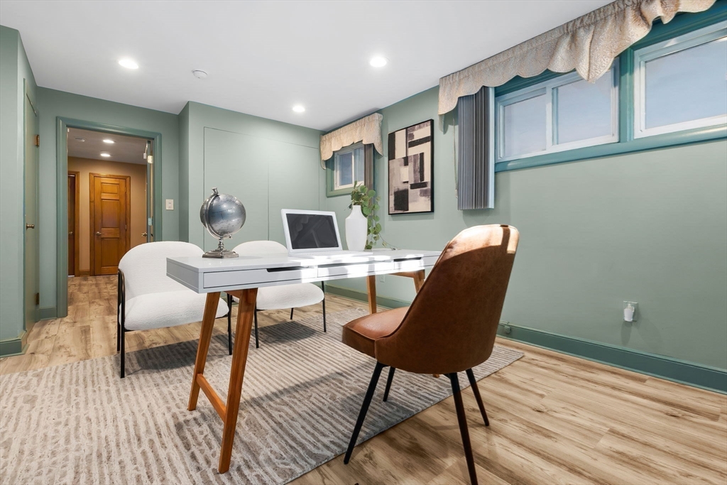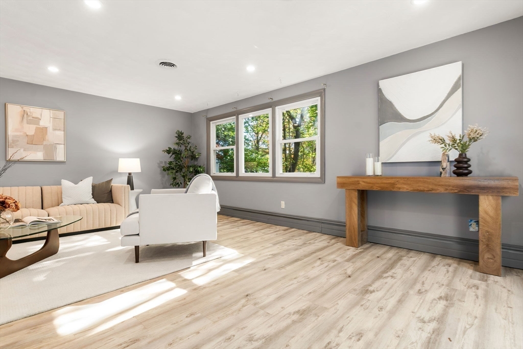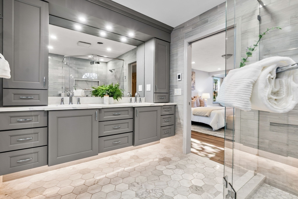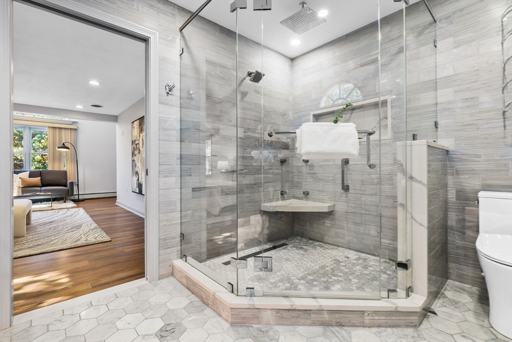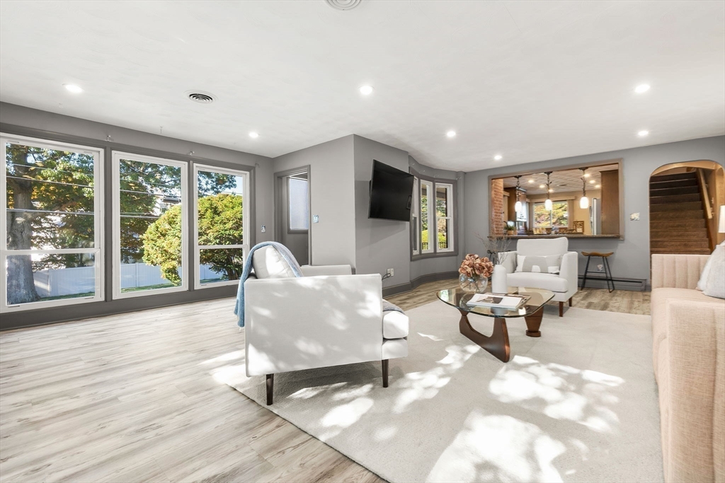 An absolute must-see! Nestled in the sought-after Robin Hood neighborhood, this sun-soaked 5-bedroom, 3.5-bath Colonial truly has it all. The expansive living room features floor-to-ceiling windows and opens to a recently remodeled kitchen with upgraded cabinetry and stainless-steel appliances. Enjoy updated flooring, recessed lighting, and high ceilings throughout. The showstopper is the brand-new primary suite, a luxurious addition featuring soaring ceilings, a Carrara-tiled ensuite spa bath with heated floors, a walk-in closet, and a private deck, your very own sanctuary retreat. Designed for versatile, multigenerational living with flexible layout options, plus a garage with workshop area and finished lower level. Outside, the fenced-in backyard showcases a gazebo perfect for relaxing or entertaining, plus a storage shed for all your outdoor essentials. Ideally situated near I-93 and I-95, with easy access to the Tri-Community Bike Path, the new high school, and vibrant downtown.