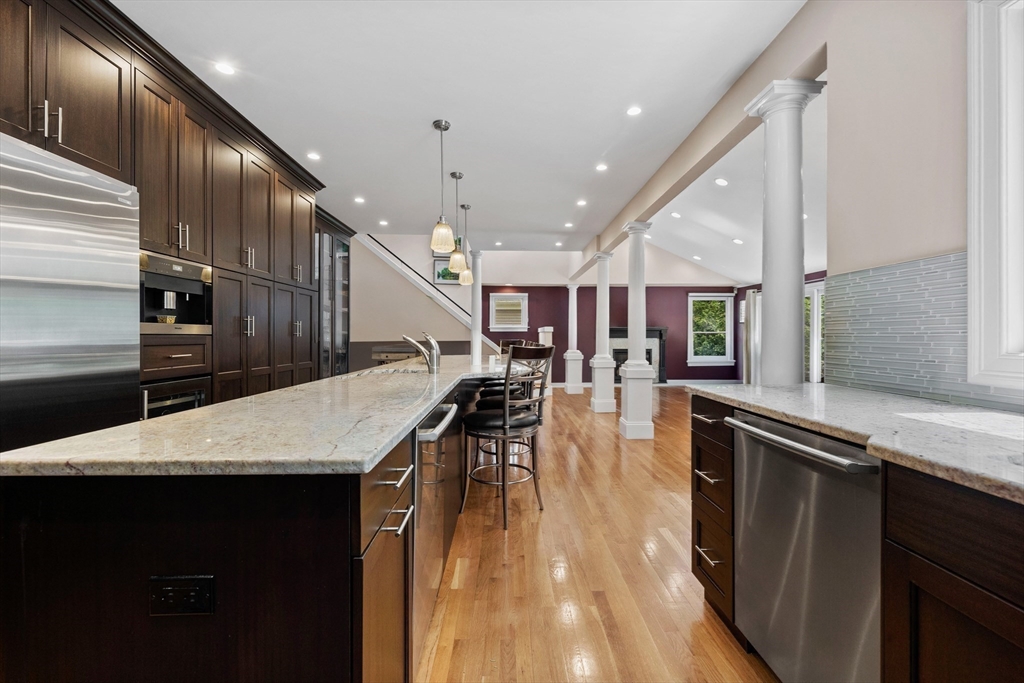 Located in a convenient commuter location and abutting West Newton's premier neighborhood, this home has been thoughtfully renovated throughout. The main level features a cook's dream kitchen! State of the art appliances include side by side full freezer/fridge, 6 burner/double oven range, 2 dishwashers, wine cooler + a Miele coffee station. So well planned, preparing food with family + friends is a delight! This space flows to the great room with its vaulted ceiling and fireplace creating seamless living + entertaining. Upstairs the primary bedroom features a spa bathroom w jacuzzi + a custom fitted walk-in closet. 2 more bedrooms + laundry complete this level. The flexible 3rd floor can be used as a bedroom suite, with its full bathroom and/or gym. The finished lower level adjusts to family needs endlessly. Newer systems. 2c garage. Large driveway for turn around--no need to back up onto the street. Minutes to Peirce School, West Newton Sq., Medical Center, Pike and Rail.