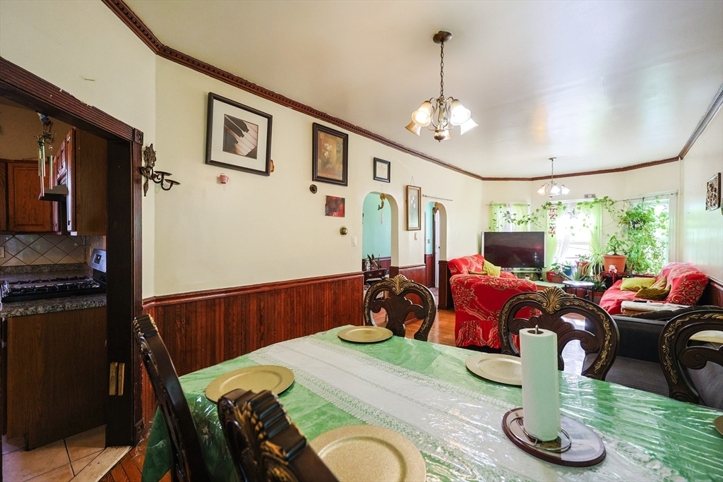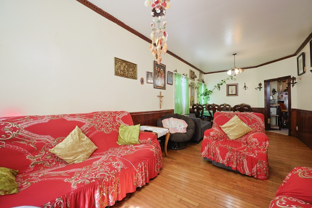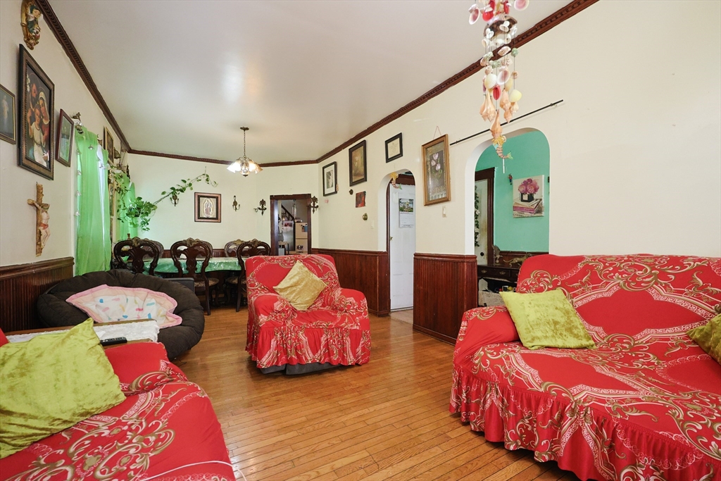 Come see this spacious home featuring 5 bedrooms 2 full bathrooms. It's charming details of an older home with several updates, hardwood flooring and generous ceiling heights. Enter the home from the open front porch that leads to the open-concept style living & dining room. Eat-in kitchen is well equipped with cabinet storage, a rear walk in pantry space. One bedroom on first level and one full bathroom. Upstairs you'll find 4 bedrooms and a second full bath. The fully unfinished basement lower level provides laundry & has expansion potential for more living space. Gas heat system. Situated on a desirable level lot, rear enclosed yard, driveway with up to 4 parking spots and unbeatable proximity to everything Chelsea has to offer... Restaurants, shops, and public transportation are all close by the house. Just minutes from downtown Boston,and Logan Airport. **OPEN HOUSES SAT Oct 25 & Sunday Oct 26 from 12pm to 2pm on both days...**