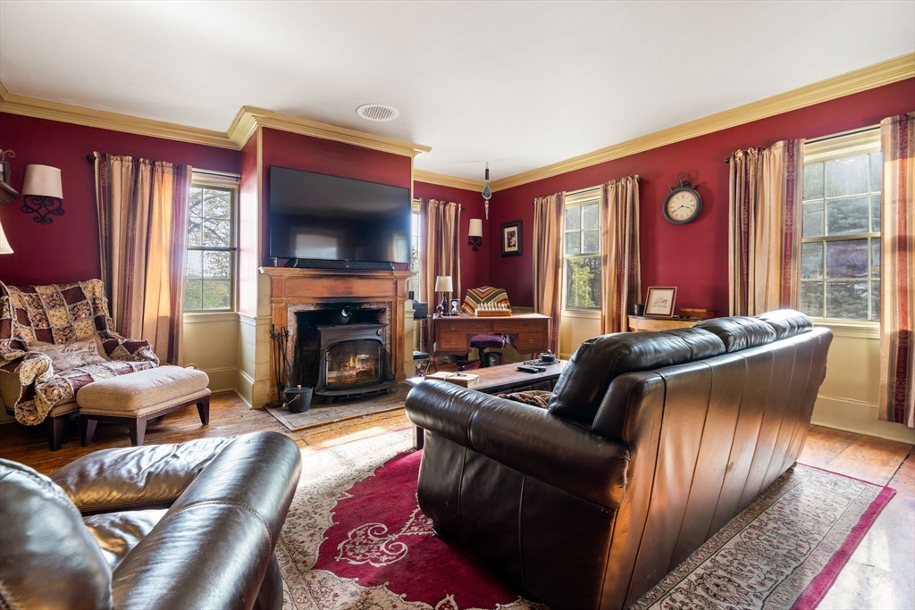Historic Charm Meets Lakes Region Living! Nestled in Gilmanton’s picturesque Historic District, this Federal-style home blends rich period character with modern updates—all just minutes from Lake Winnipesaukee, Concord, and Gunstock Mountain. Life here offers the perfect mix of convenience, recreation, and timeless New England beauty. Original details abound, from tall ceilings and crown moldings to six fireplaces, Indian shutters, wide pine floors, and the signature captain’s staircase. Updates include a new roof, water heater, and oil tank, plus trim ready for your finishing color. Outdoors, enjoy a gently sloping lawn leading to a peaceful brook, a gazebo with scenic views, a patio for entertaining, and a detached two-car carriage house. Positioned among other distinguished homes at Gilmanton Four Corners, this property is a rare opportunity for those who appreciate history and craftsmanship. Not eligible for FHA financing.