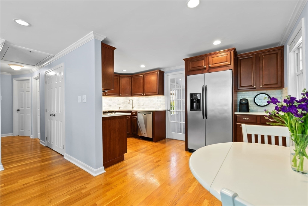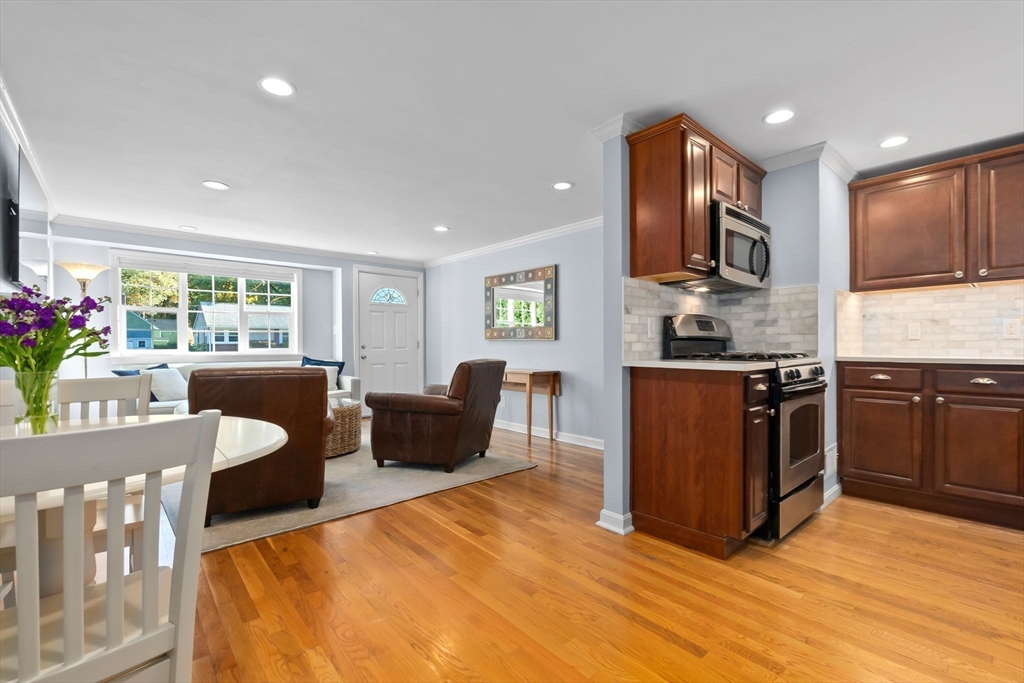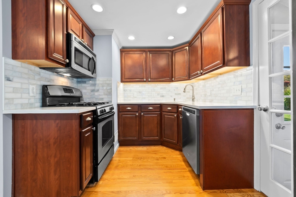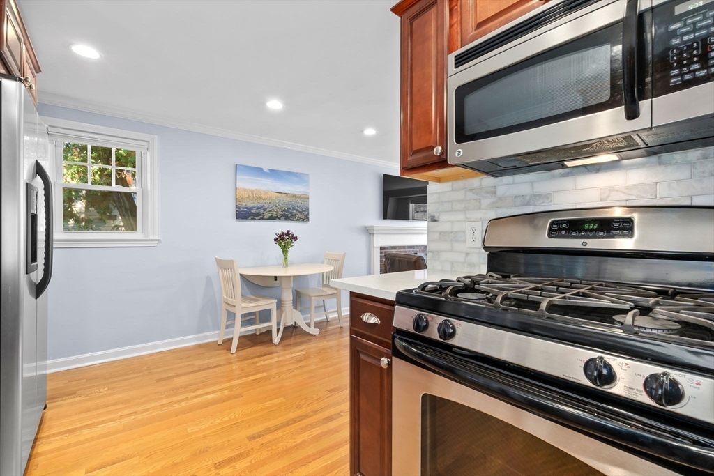 Immaculate Ranch in a desirable location in Danvers! Lovingly maintained, nothing to do but move in and enjoy the holidays! Hardwood floors throughout including the bedrooms, kitchen and bath. The living room offers a large front window allowing lots of natural light, wood burning fireplace, perfect for chilly nights ahead. Updated kitchen is well equipped with stone counters, stainless steel appliances and rear access to the basement and yard. Three bedrooms and a full bath. Pull down attic and shed for storage. Full unfinished basement with laundry set up. Oversize one car garage. Nice private fenced yard with patio. Central air and irrigation. Great neighborhood of similar homes. Enjoy all that Danvers has to offer with shopping, dining, walking trails and Endicott Park.