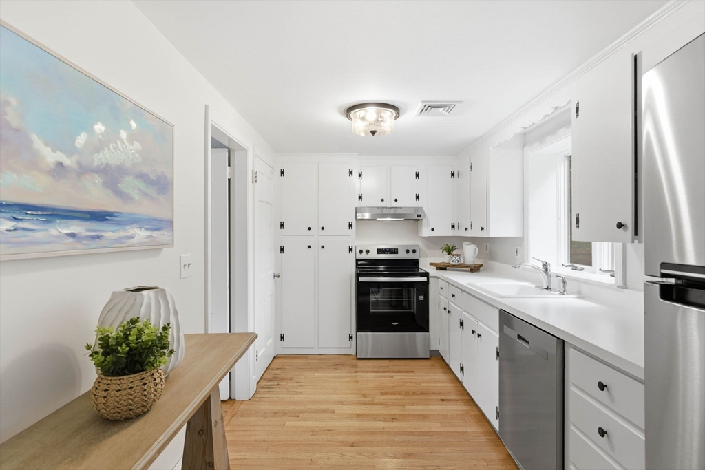 Location, Location! This Adorable 2-bedroom 1 bath ranch is centrally located in a popular neighborhood in the heart of Scituate and is in walking distance to the Lawson Common, tennis courts, town library and the new senior center. A wonderful right-sized starter home or perfect for those downsizing, this property offers the convenience of one floor living. The expansive 12,546 sq ft lot offers a wealth of possibility for increasing this home's living area. The sunny south facing rear deck overlooks beautiful plantings & is the perfect spot for relaxing with your morning coffee. New upgrades include 3-bedroom septic, kitchen appliances (electric range, dishwasher, refrigerator) and electric water heater. The large 2 car attached garage provides secure parking and additional storage space. Built in 1956 this home holds timeless appeal. Embrace its charm and the essence of Scituate living with all the wonderful area amenities.