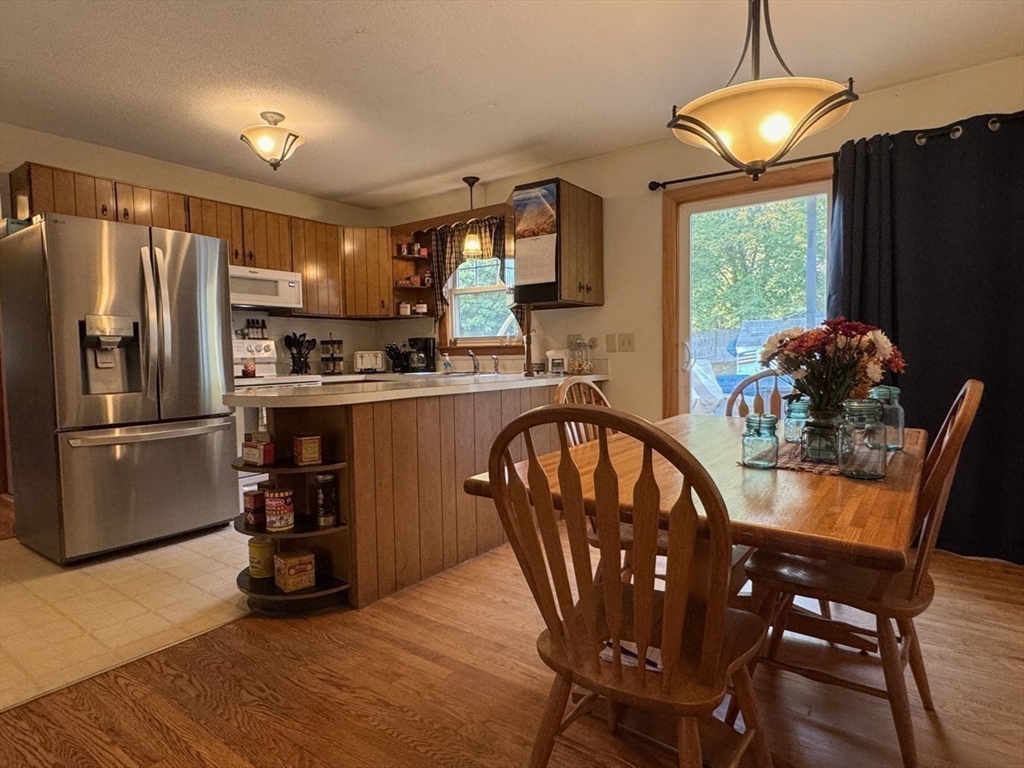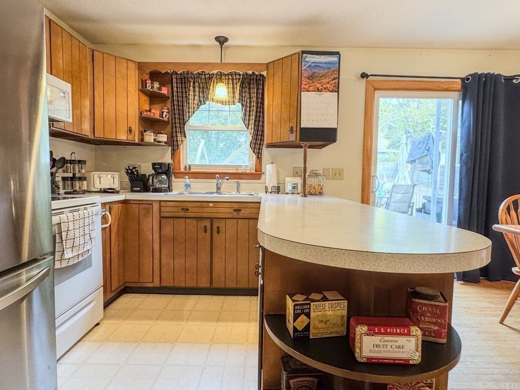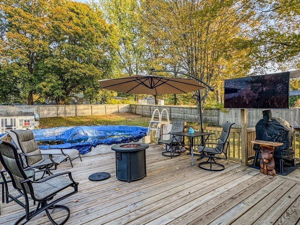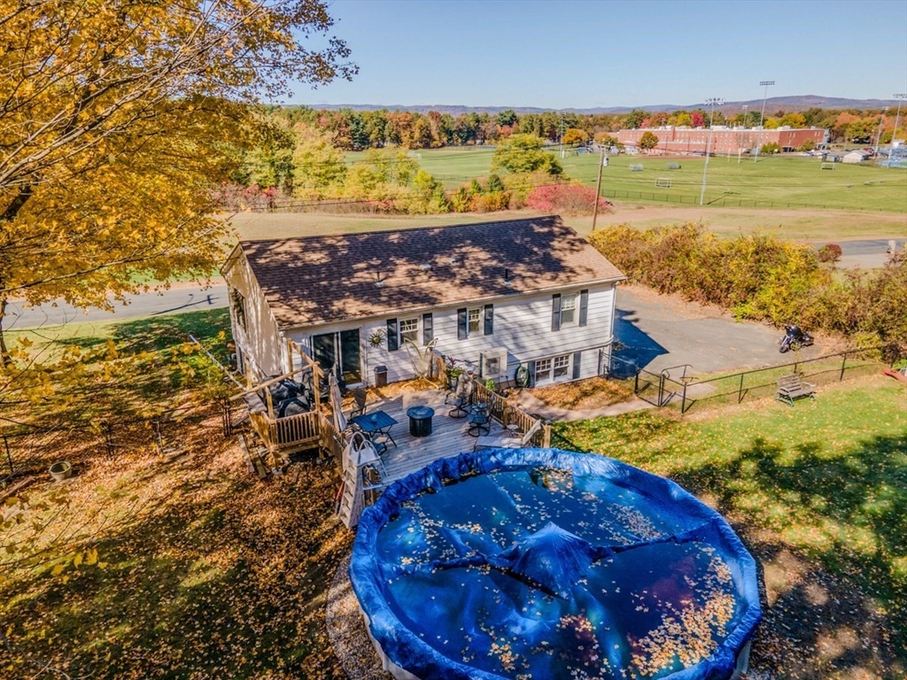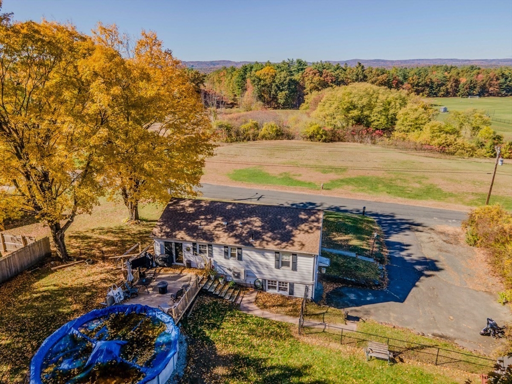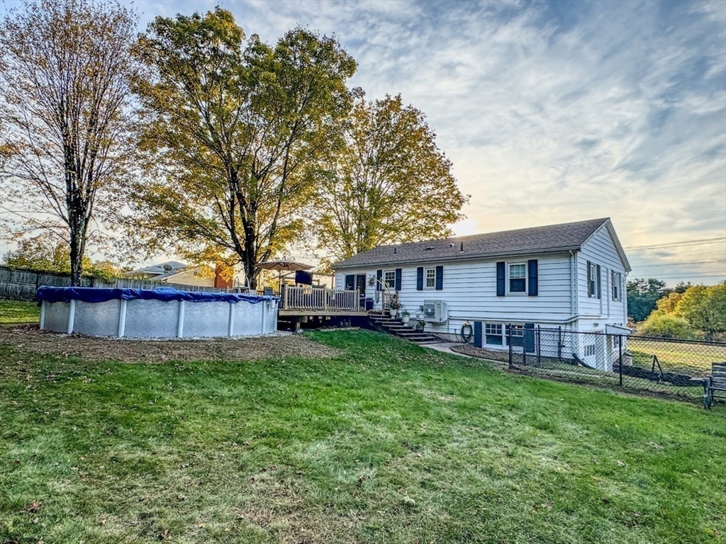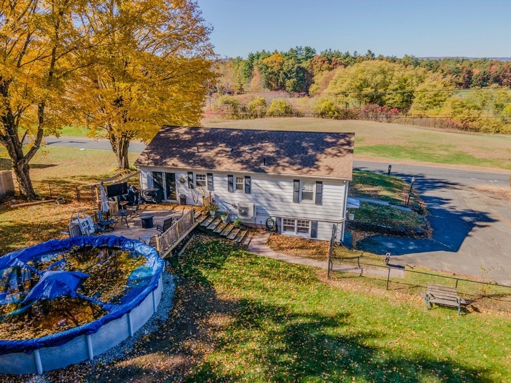 Enjoy beautiful sunsets from this attractive Split-level Ranch set on a half-acre of land in Montague, just around the corner from Turners Falls High School. This cozy and comfortable home includes a spacious living room that opens to the dining area and kitchen with a slider to the deck, two good size bedrooms with mini-slits and a bath, natural woodwork and hardwood floors on the upper level, and a bedroom, den/office or workout room, bath, laundry room/utility storage room, and the garage on the lower level. Outside, you can relax on the back deck overlooking a fenced yard with two sheds, a few great shade trees, and a pool that's covered and ready for you to enjoy next summer.