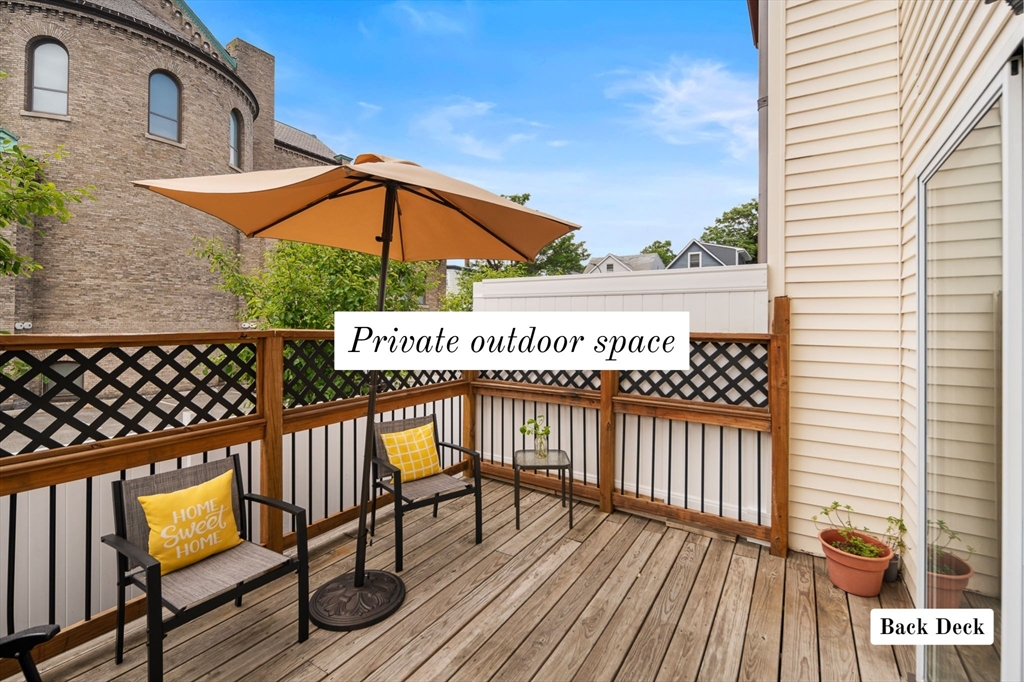Welcome to this bright and spacious 3-bedroom, 2.5-bath townhouse nestled in East Boston’s desirable Harborview neighborhood. Ideally located just minutes from the Blue Line, Logan Airport, Constitution Beach, parks, & local shops. This home offers the perfect single-family alternative w/ a deeded parking spot & a large back deck ideal for entertaining. The open-concept main level features seamless flow and abundant natural light, while the renovated lower level with a full bath provides flexible space for a gym, media room, or guest suite. Enjoy ample storage throughout, including a walk-up attic, and appreciate recent upgrades such as a new hot water heater (2024), AC condenser (2023), and updated appliances (full upgrade list available). The pet-friendly complex also offers a shared outdoor dining area, storage shed, and two shared visitor spots for convenience. Move-in ready and thoughtfully updated, this home combines comfort, location, & lifestyle - don't miss it!