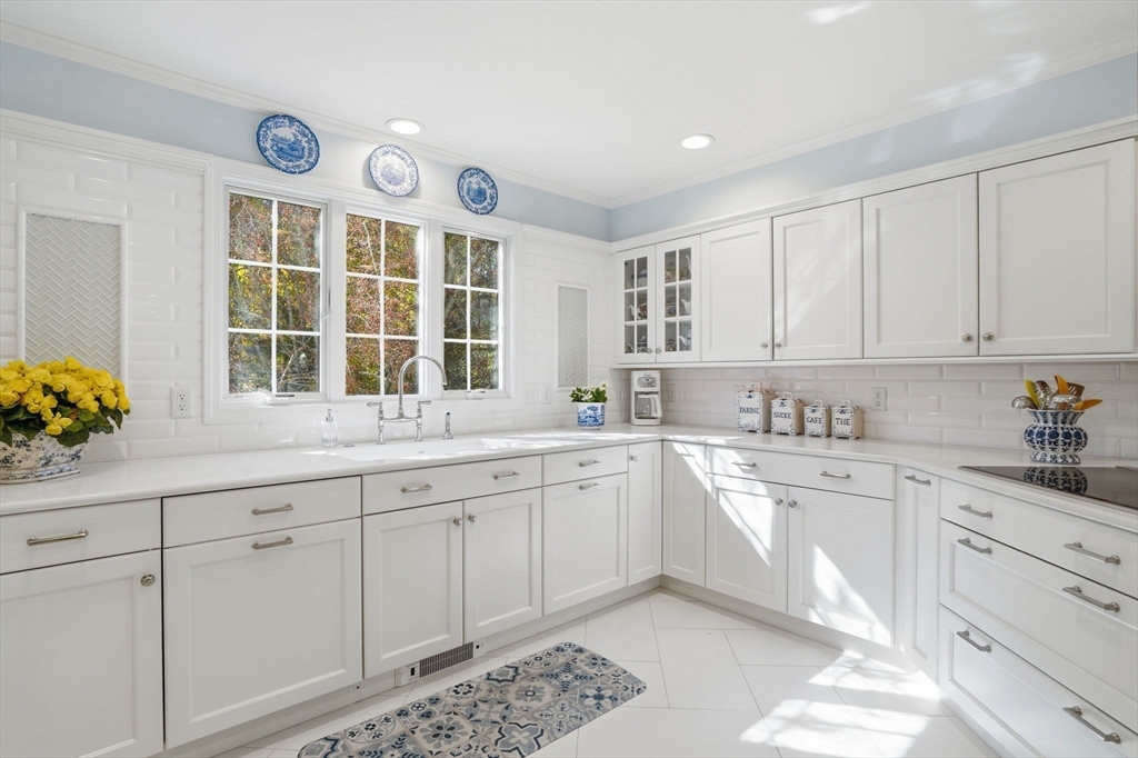 Home for the holidays! This updated colonial, a star in the neighborhood, has traditional lines but many surprises inside. Every space reflects care and quality, from the hardwood floors and abundant natural light to the seamless connection between indoor and outdoor living. The newly renovated kitchen with custom banquette opens to a spacious family and playroom area overlooking a wide private deck, landscaped yard, and beautiful saltwater pool — perfect for large gatherings. Upstairs, two immense primary suites provide flexibility, joined by two additional bedrooms and both front and back stairways. The walk-out lower level includes a gym, movie room, workshop, and excellent storage, supported by well-maintained systems including generator. A heated three-car garage with dual lifts, plumbing, and space for up to five vehicles offers an ideal setup for car enthusiasts or hobbyists. Putting green? Yes! Meticulous condition with a prime Norwell location, 26 miles south of Boston.