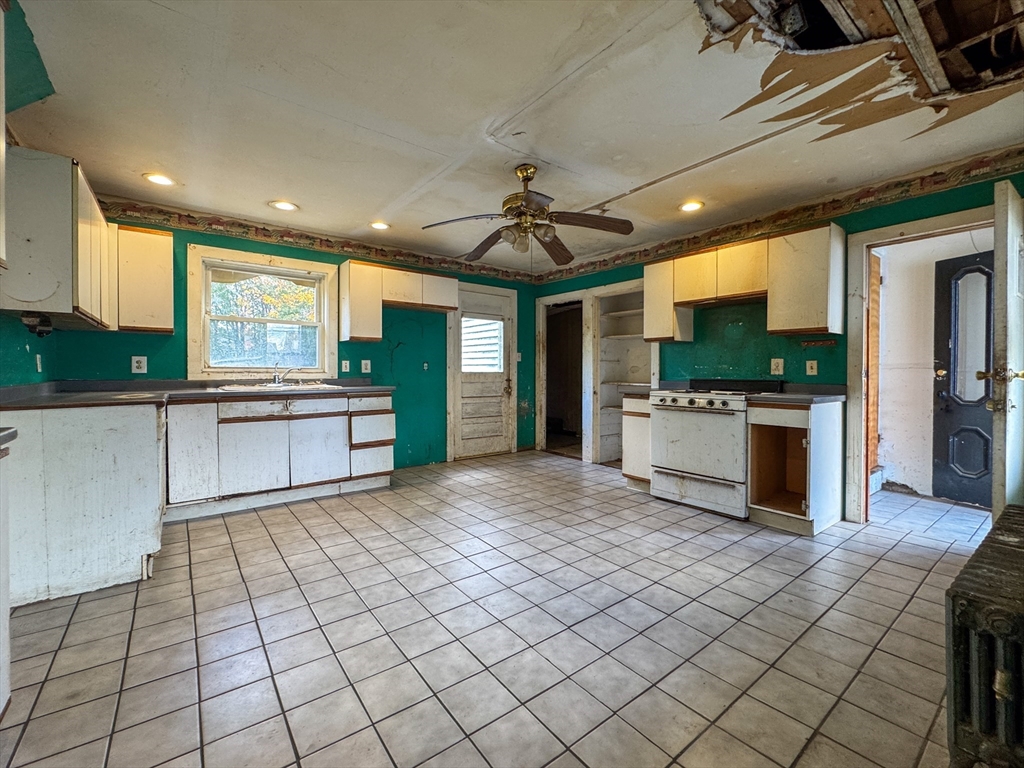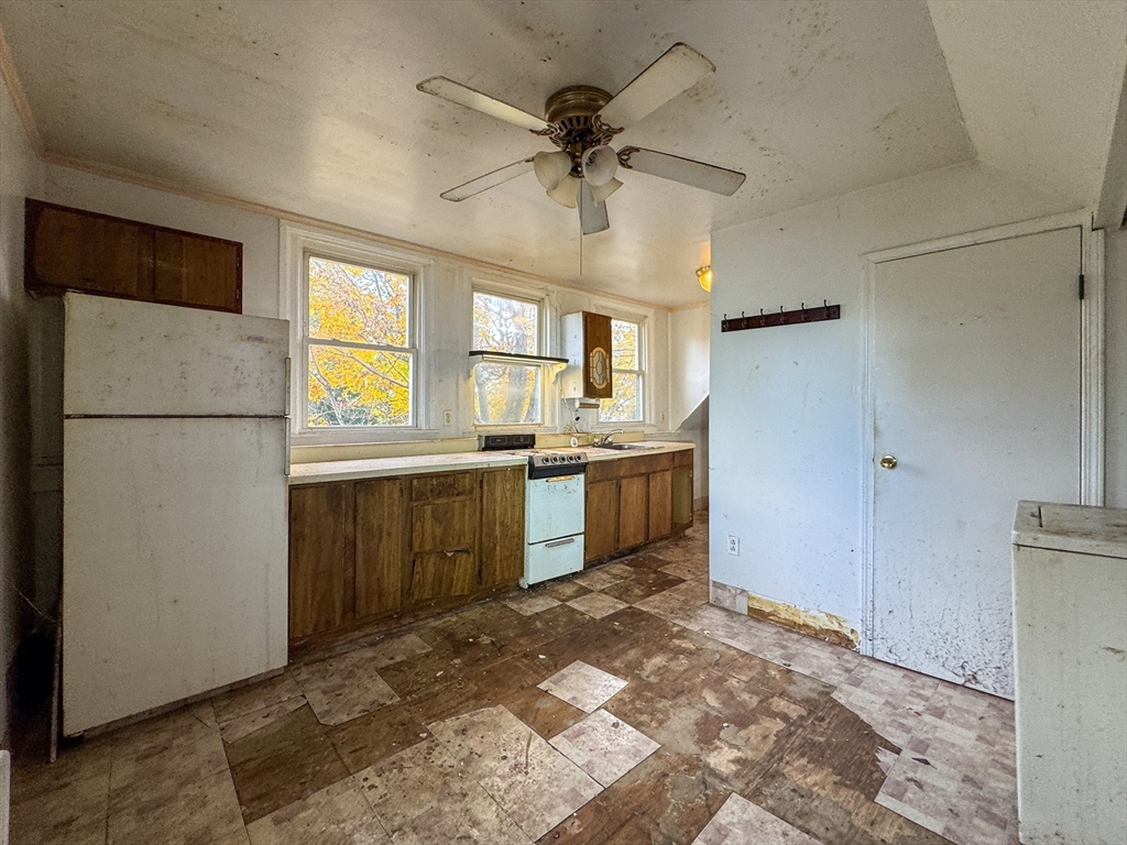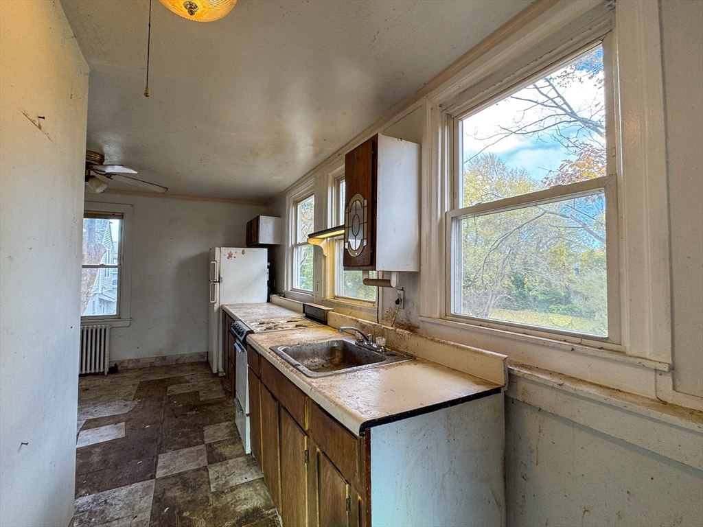 Currently a 3BR, 2BA home with a full in-law apartment on the 2nd floor. First floor offers an eat-in kitchen, full bath, formal living & dining rooms, 1 bedroom, and an office that could serve as a 2nd bedroom. Second floor features its own kitchen, bath, living room, and 2 bedrooms. Right-side entrance allows separation for a two-family layout; front entrance provides shared access. Vinyl siding and roof in fair condition. Interior needs work but well worth the investment — personalization's include kitchens, baths, flooring, paint, electrical, and plumbing. Neither seller or listing agent make any representations as to the accuracy of any information contained herein. Buyer/buyer agent must conduct their own due diligence,verification(s)and research and are relying solely on the results thereof. NO DISCLOSURES.