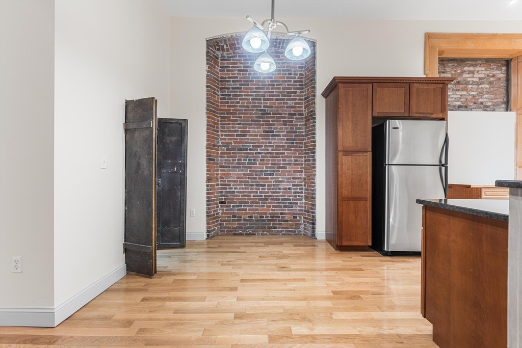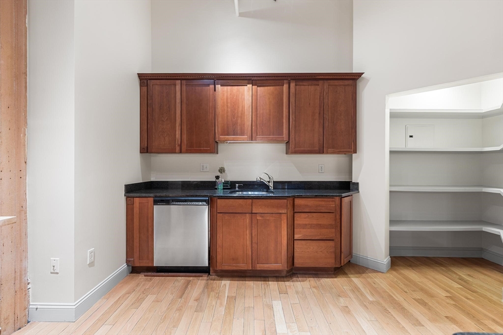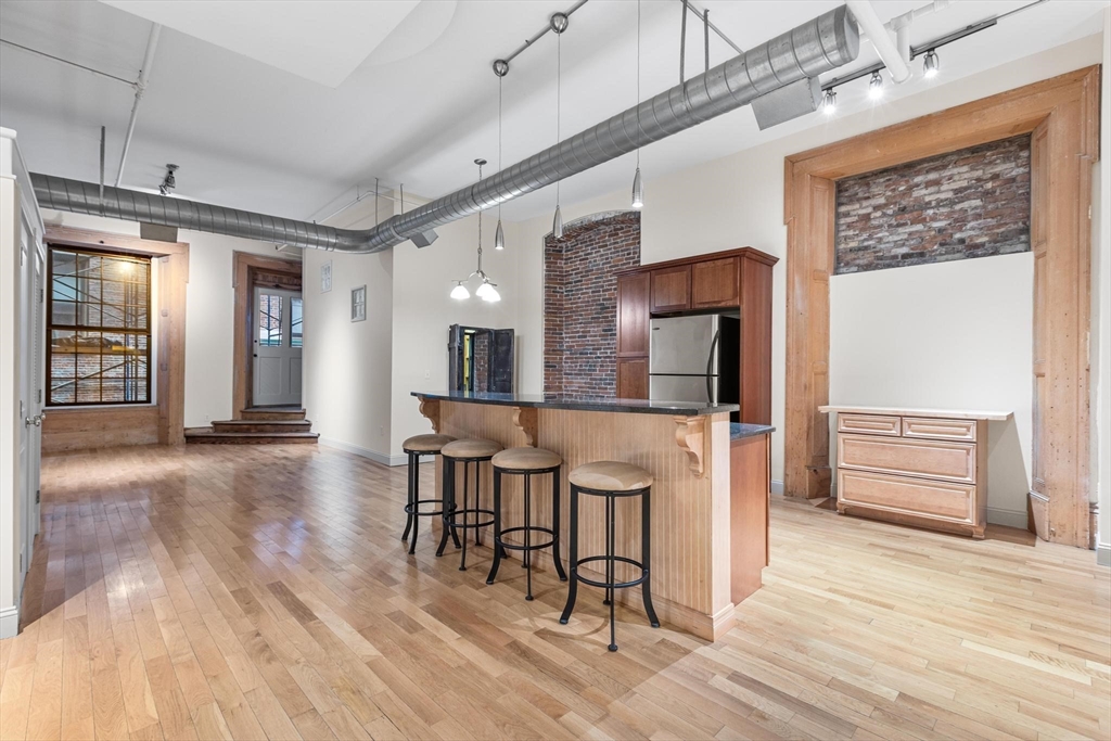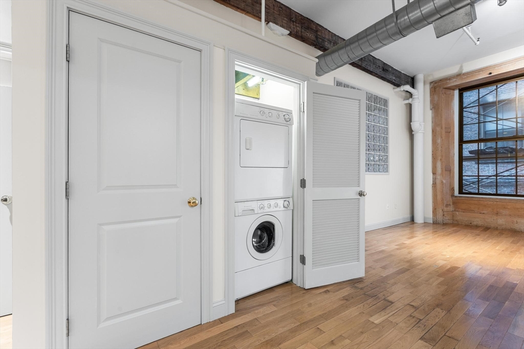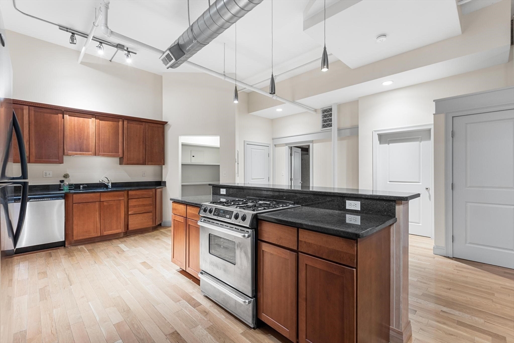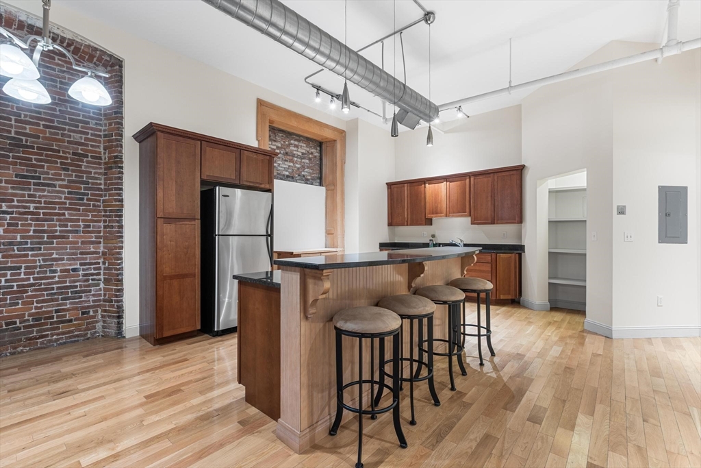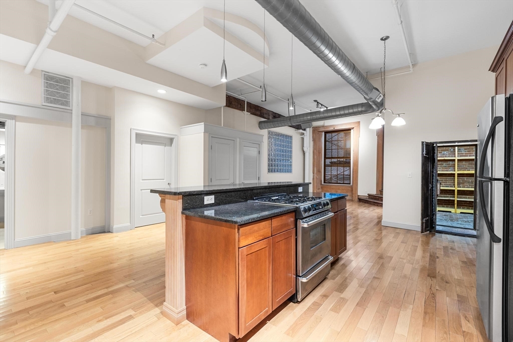 Urban loft living in the heart of Downtown Lowell! This stunning 1-bedroom deluxe loft features soaring ceilings, exposed brick, hardwood floors, and oversized windows that flood the space with natural light. The open-concept layout highlights a beautifully updated kitchen with granite countertops, stainless steel appliances, and ample pantry storage. Enjoy a spa-style bathroom with a jacuzzi tub and steam shower, plus in-unit laundry and basement storage. Secure elevator building just steps from UMass Lowell, Tsongas Arena, restaurants, shops, commuter rail, and Mill No. 5. Garage parking available nearby. Downtown living at its finest!