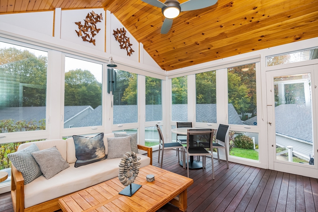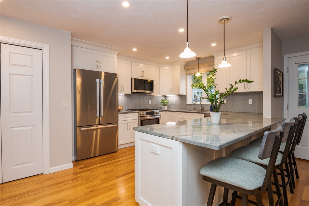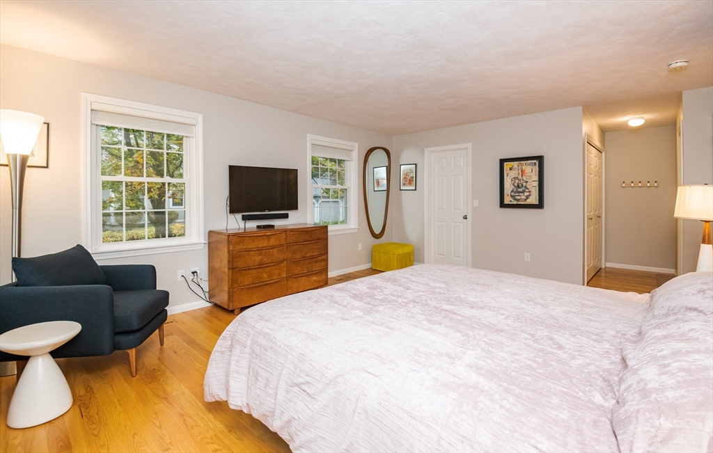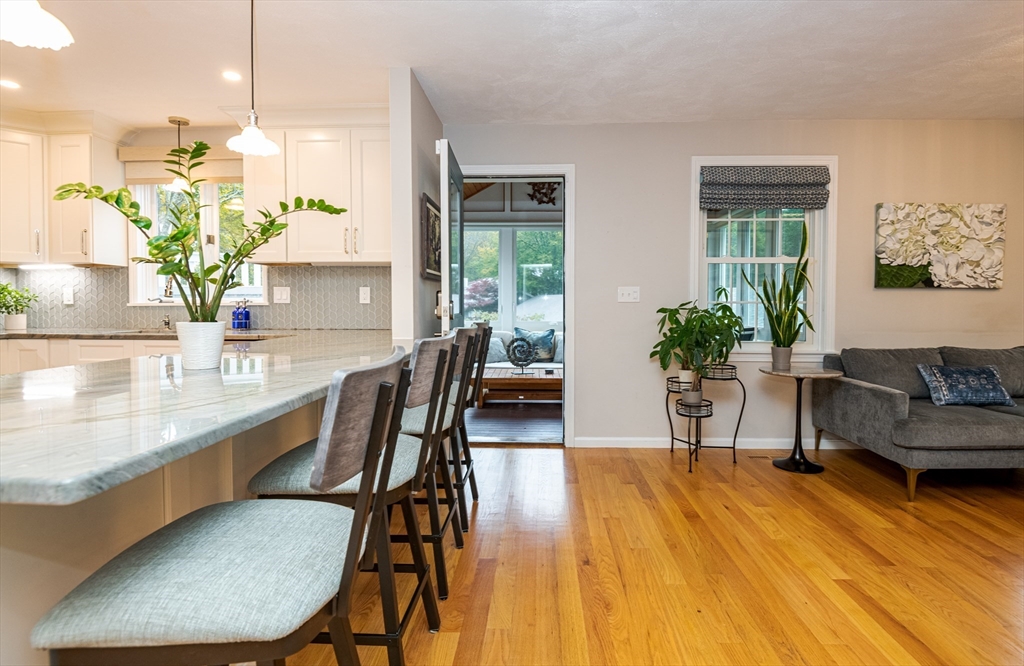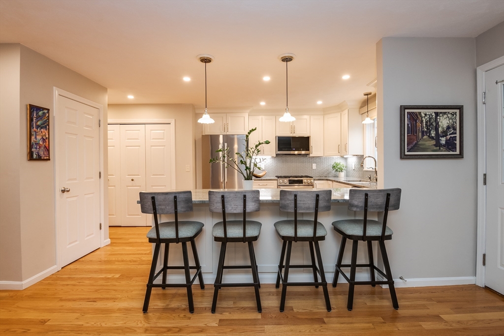 CONDO RESIDENCE, not a single family home. Rare offering, absolutely ZERO to update, MOVE-IN and ready to ENJOY! Peaceful Three Season SunRoom allows for a vacation sanctuary in the home. Bright and sunny home was completely renovated and re-imagined with classical and modern selections in the past few years. NEW in 2025: White Gas Kitchen equipped with Quartzite countertops, peninsula island seats 4 w/extra cabinet storage, pantry closet, custom pendant lighting, under cabinet lighting, Bosch and LG SS Appliances. Conveniently located on the Lexington line in Bedford. Expanded open concept main level includes a sought after and unusual 1st Floor Primary Suite that boasts of a walk-in closet with custom built-ins, an extra closet, and an en-suite remodeled full bathroom! NEW finished lower level for family room, recreation, and exercise areas.Lots of Storage!12miles from Boston, Minutes to highways (Rte 95/128 &Rte 3)&shopping!