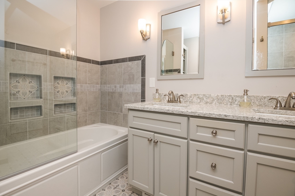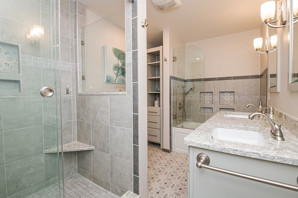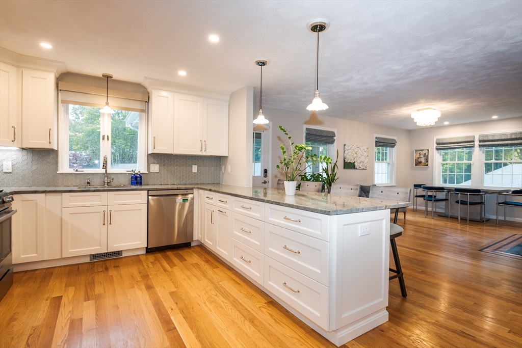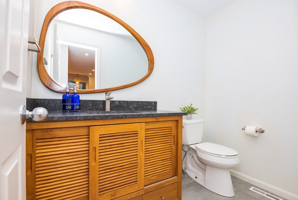 CONDO RESIDENCE, not a single family home. Rare offering, absolutely ZERO to update, MOVE-IN and ready to ENJOY! Peaceful Three Season SunRoom allows for a vacation sanctuary in the home. Bright and sunny home was completely renovated and re-imagined with classical and modern selections in the past few years. NEW in 2025: White Gas Kitchen equipped with Quartzite countertops, peninsula island seats 4 w/extra cabinet storage, pantry closet, custom pendant lighting, under cabinet lighting, Bosch and LG SS Appliances. Conveniently located on the Lexington line in Bedford. Expanded open concept main level includes a sought after and unusual 1st Floor Primary Suite that boasts of a walk-in closet with custom built-ins, an extra closet, and an en-suite remodeled full bathroom! NEW finished lower level for family room, recreation, and exercise areas.Lots of Storage!12miles from Boston, Minutes to highways (Rte 95/128 &Rte 3)&shopping!