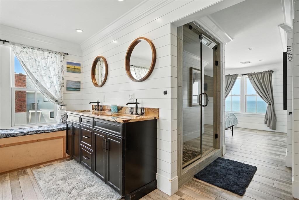 Thoroughly reimagined and fully remodeled, this oceanfront retreat combines culinary luxury with a coastal soul. Perfectly perched on the seawall, the open-concept design showcases breathtaking views from nearly every room. The chef’s kitchen opens through French doors to a massive ocean-side deck—ideal for morning espresso, evening waves, or celebrating Marshfield’s famous July 3rd fireworks with friends. The first-floor primary suite offers true comfort with laundry, walk-in closet, a steam shower, and soaking tub. Each bedroom features its own private bath, creating the perfect blend of style and privacy. With a rare oversized lot, ample parking, and proven rental income, this home is a standout along the South Shore coast. Own it, rent it—just don’t miss it.